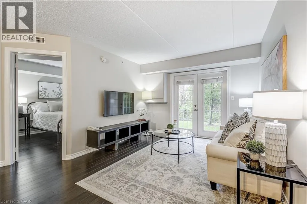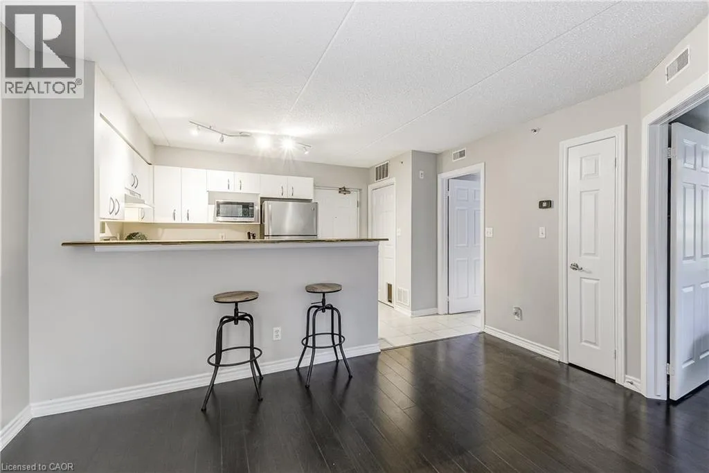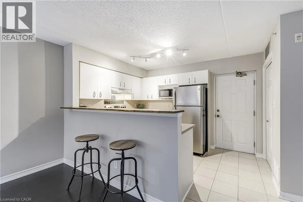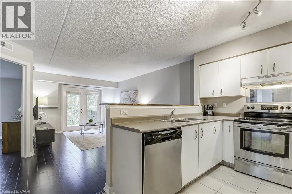 Appleby and Upper Middle Welcome to Orchard Uptown, where quiet living meets everyday convenience. This main-level 1-bedroom, 1-bathroom condo is tucked into a peaceful area of the complex, offering a level of privacy that's hard to find-especially with a patio that looks out over ravine and greenspace rather than parking or traffic. The private patio is a true extension of the living space and a rare feature for a condo. Being on the main level and backing directly onto greenspace means easy outdoor access without elevators, stairwells, or long common hallways-a practical advantage for everyday living and especially convenient for those with a dog who want quick, stress-free access outside. Inside, the layout is bright, functional, and easy to live in. The open living area offers flexibility for daily routines and entertaining, the kitchen offers ample storage and workspace, and the bedroom is generously sized and comfortable. In-suite laundry adds convenience, and the Kitec plumbing has been professionally removed, offering added peace of mind. The unit includes one underground parking space and a storage locker, and the building is well managed with low condo fees. Residents enjoy access to a fitness centre, sauna, and party room, along with ample visitor parking. Location is a major advantage. Shopping, coffee shops, restaurants, and everyday essentials are located directly across the street. Commuters will appreciate quick access to the QEW, 407, and Appleby GO Station, while nearby trails and Bronte Creek Provincial Park provide excellent options for outdoor walks and recreation. A well-maintained condo offering privacy, main-level convenience, and direct access to greenspace-this is comfortable, low-maintenance living in one of Burlington's most established condo communities. (id:27476)