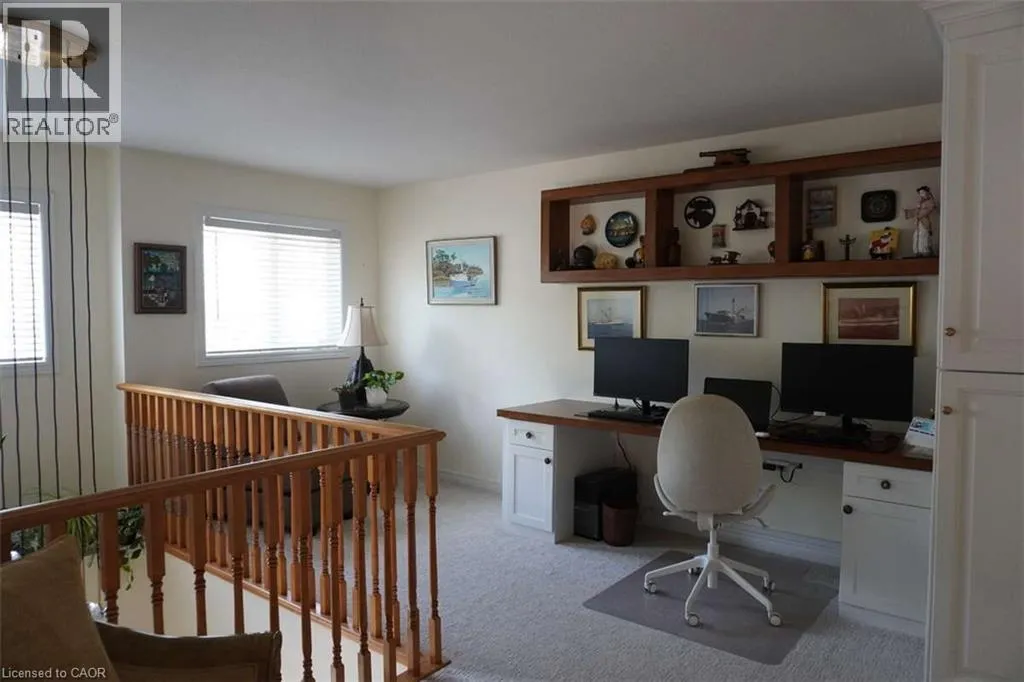 From Appleby Line, turn on Dryden Ave, turn right on Blue Spruce Ave, turn left ton Orchard Rd For more info on this property, please click the Brochure button. Located in the highly sought-after Orchard neighbourhood, welcome to Greystones. A great place for families, located near schools in a quiet, enclosed community. This spacious, semi-detached, 3+2 bedroom home has much to offer. Open-concept living, vaulted ceiling, hardwood floors, updated carpets, modern kitchen, finished basement with a spare bedroom or home office, gas fireplace, backyard patio, large laundry room with new appliances and mudroom with access to a two-car garage. This is a fully renovated (Jan 2024), move-in-ready home in one of Burlington's most desirable neighbourhoods! (id:27476)