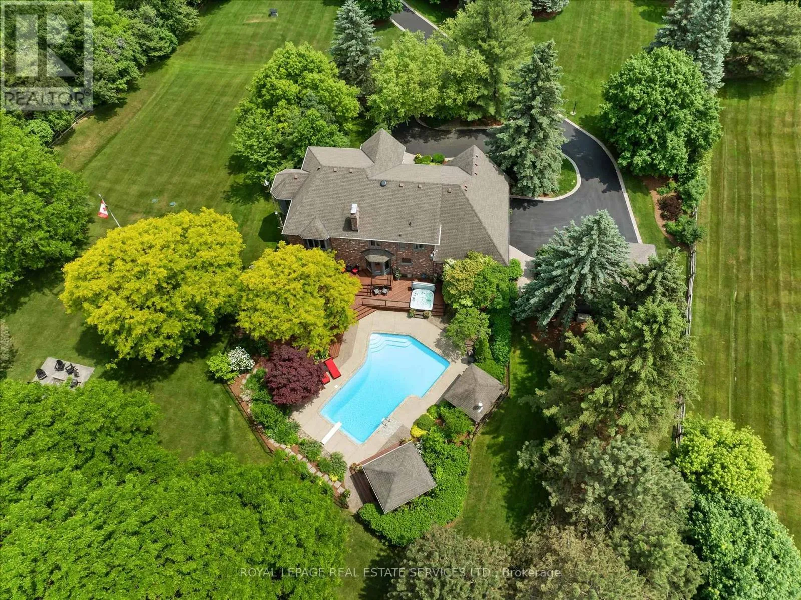 Cross Streets: 8 Sideroad and Twiss Road. ** Directions: Twiss Road / 8 Sideroad. WELCOME TO GREYSTONE! Set beyond a gated, winding drive on 3.5 private acres, Greystone is a timeless Branthaven built estate and one of Kilbride's most distinguished properties. Blending sophistication with luxury, this exceptional residence offers remarkable privacy, stately presence, and the elegance of a classic country manor - just minutes from city amenities. The grounds are truly outstanding, designed for relaxation and entertaining. Enjoy a saltwater Gunite pool, expansive multi-tiered decks, private putting green, and a horse paddock with training circle - creating an unparalleled outdoor lifestyle. From quiet mornings poolside to memorable summer gatherings, this estate delivers living on a grand scale. Inside, expansive principal rooms showcase warmth, quality, and thoughtful design. A double-sided wood burning fireplace connects the family room to the chef-inspired kitchen, complete with quartz countertops, Sub-Zero and KitchenAid appliances, and custom cabinetry. The formal dining room is ideal for elegant entertaining, featuring a bow window, wainscoting, and French doors. The sun-filled primary suite is a true retreat, offering a wood burning fireplace, private sitting room, and a spa-inspired six-piece ensuite with double vanities, freestanding soaker tub, curbless shower, and heated floor. Additional bedrooms provide flexibility, including one currently styled as a luxurious dressing room that can easily be converted back. The finished lower level expands the living space with a wet bar, recreation room, gym, guest bedroom, full bathroom, and a temperature-controlled wine cellar. Modern systems and updates include municipal gas, drilled well, septic system, updated windows and roof, fencing, heated garage, invisible fence, backup generator, and a 10-zone irrigation system. Greystone is more than a residence - it is a private estate where luxury, lifestyle, and nature come together in perfect harmony. (id:27476)