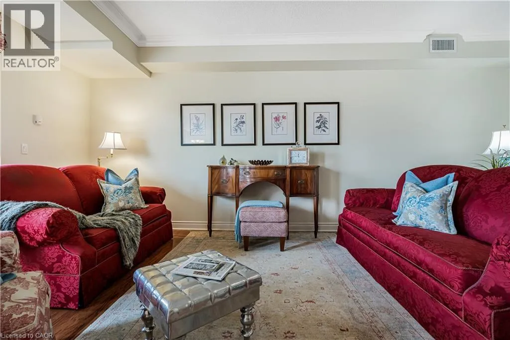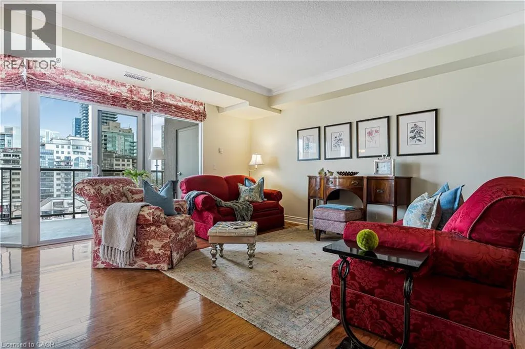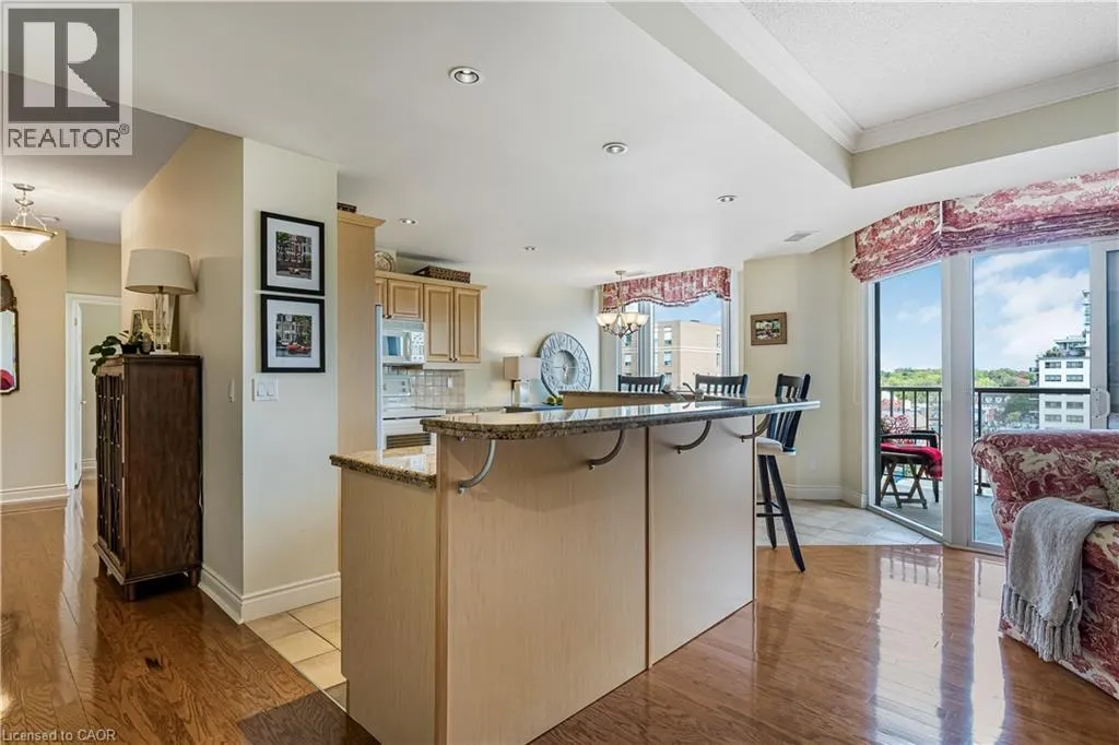 North-west corner of Brant St & Lakeshore Rd. Entrance is off Brant Street. Downtown energy. Lakeside calm. Burlington at its finest. Welcome to Buntonâs Wharf, where refined design and effortless living come together in this bright and beautifully proportioned 2-bedroom, 2-bath residence. Thoughtfully designed to balance light, luxury, and location, this open-concept condo offers a seamless blend of comfort and sophistication. A welcoming foyer leads into a sun-filled living space featuring floor-to-ceiling windows, 9-foot ceilings, and hardwood floors throughout. The kitchen is both stylish and functional, with granite countertops, ample cabinetry, a generous breakfast bar, and a cozy breakfast nook with partial water viewsâan ideal spot to start the day. The combined living and dining area extends to a private balcony, offering sweeping lake and city viewsâperfect for relaxing or entertaining. The primary suite is a tranquil retreat with floor-to-ceiling windows, a walk-in closet, and a 4-piece ensuite. A bright and versatile second bedroom easily serves as a guest room, home office, or creative studio. A second full bath, dedicated laundry room, and excellent storage complete the layout. Two underground parking spaces and a locker conveniently located across the hall are included. Residents enjoy exceptional amenities, including a rooftop heated pool with panoramic lake views, rooftop patio, party room, two fitness centres (one featuring a golf simulator), steam room, and concierge service. Ideally located just steps from Spencer Smith Park, the waterfront trail, fine dining, boutique shopping, and the Performing Arts Centre, with quick access to the QEW, 407, and GO Transit. Luxury. Light. Location. Experience downtown Burlington living at its best. (id:27476)