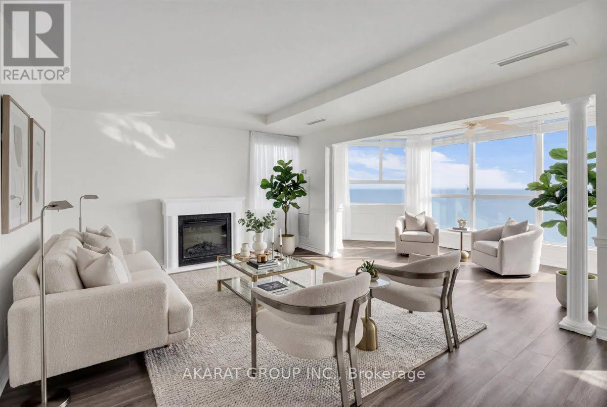 Cross Streets: Lakeshore Rd & Kenwood Ave. ** Directions: Lakeshore Rd between Burloak Dr and Appleby Line; West of Burloak Dr. Building on the south side of Lakeshore Rd, directly on the lake. Welcome to this bright, south-facing waterfront condo with direct views of Lake Ontario. This well-laid-out 2-bedroom, 2-bathroom suite offers approximately 1,277 sq ft of living space with laminate flooring throughout and large windows that fill the unit with natural light.The living area comes with an electric fireplace and flows into a spacious sunroom overlooking the lake, ideal for everyday living or entertaining. The kitchen features ample cabinetry, stone countertops, stainless steel appliances, and a breakfast area by the bay window. The primary bedroom includes a 3-piece ensuite and closet. The second bedroom is well sized and located near the main 3-piece bathroom. A separate laundry room provides in-suite convenience.Property comes with one underground parking space (exclusive use). Maintenance fees include heat, hydro, water, parking, common elements, and building insurance.Well-managed waterfront building with amenities including outdoor pool, tennis court, exercise room, party/meeting room, sauna, community BBQ, elevator, and beautifully maintained lakefront grounds with a seawall. Direct lake access and south shoreline exposure.Convenient location close to parks, trails, public transit, and amenities, with easy access to Appleby GO and major highways. (id:27476)