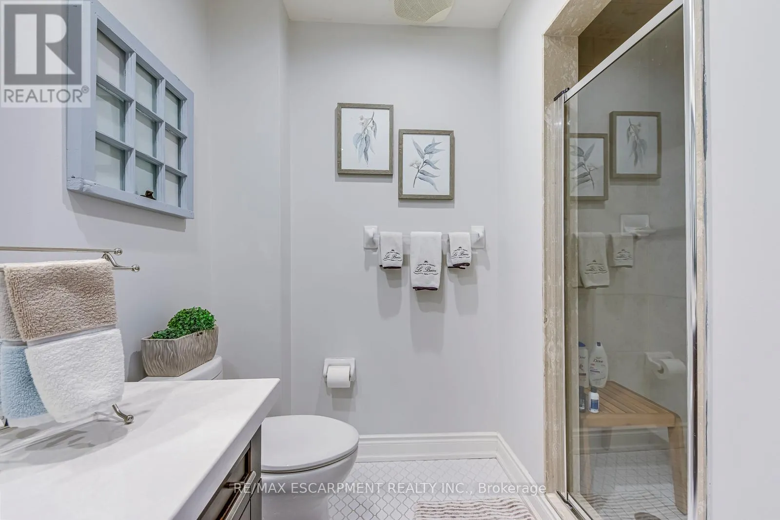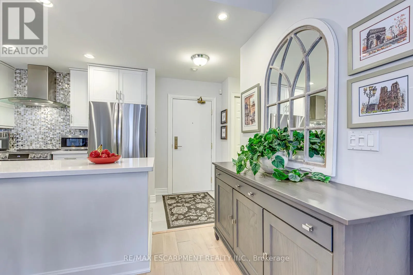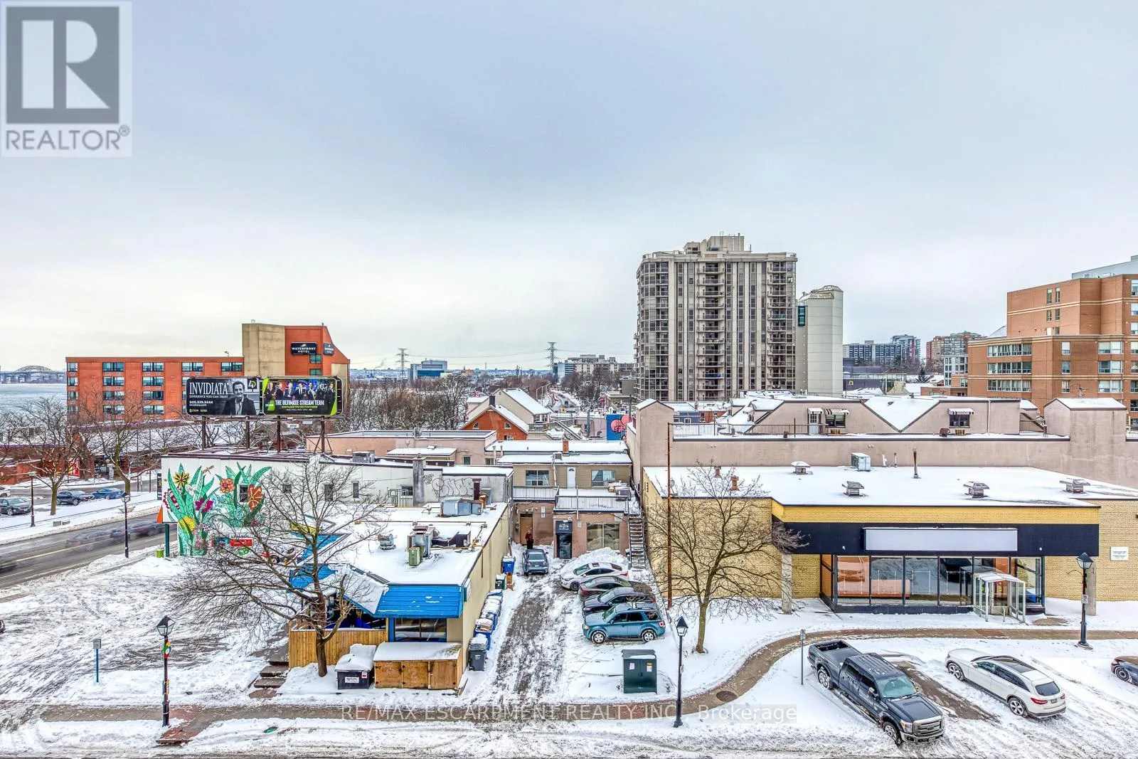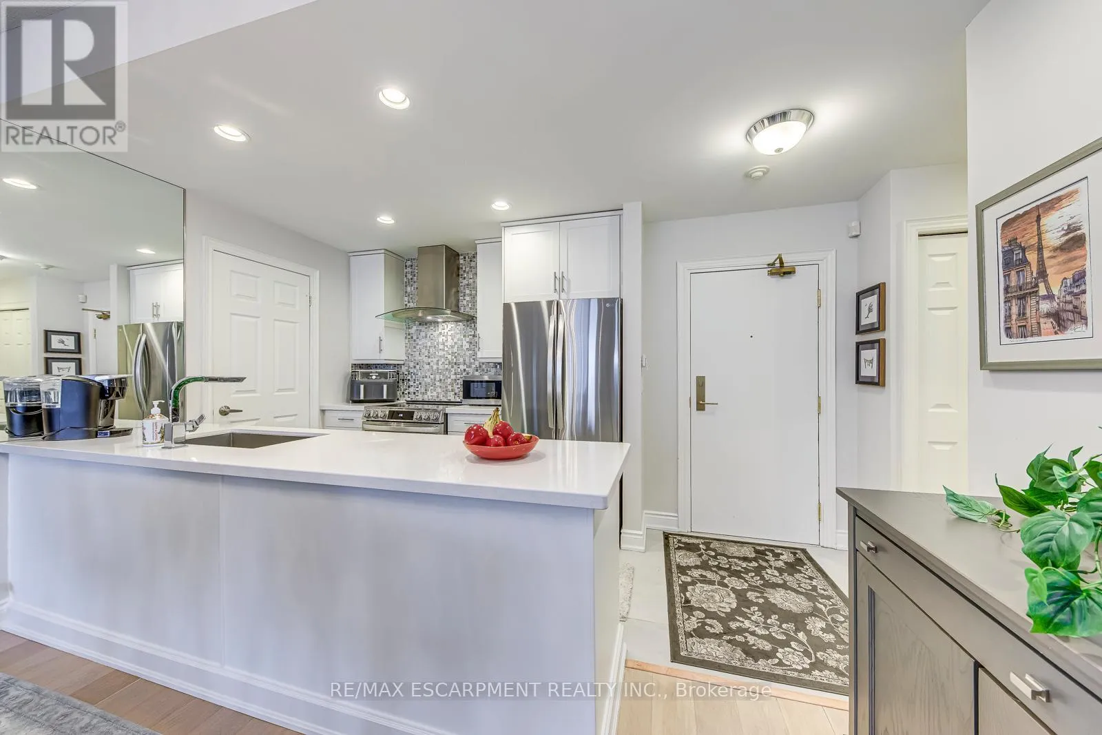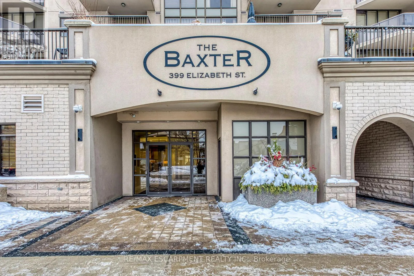 Brant St To Lakeshore Welcome to Baxter Residences in the heart of downtown Burlington, where luxury living meets unbeatable lifestyle convenience, just steps to the waterfront, Spencer Smith Park, the Performing Arts Centre, Art Gallery, vibrant restaurants, cafés, transit and the GO Station. This impeccably maintained, sun-filled 2-bedroom, 2-bathroom suite offers approximately 1,075 sq. ft. of open-concept living with a beautifully renovated kitchen featuring granite counters, stainless steel appliances and ample cabinetry, flowing into a spacious living and dining area with hardwood floors and walk-out to a large private balcony showcasing sweeping, unobstructed views of Lake Ontario, the pier and escarpment. Generously sized bedrooms include a primary with ensuite, complemented by updated bathrooms, in-suite laundry and an oversized same-level locker. Residents enjoy premium building amenities including 24-hour concierge, fitness centre with sauna, party/games room and rooftop BBQ terrace, all in one of Burlington's most walkable and sought-after waterfront communities. (id:27476)