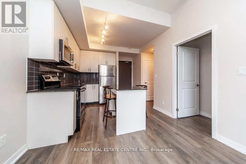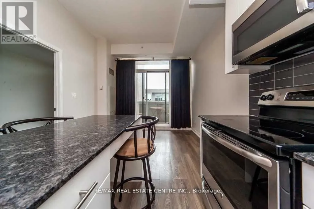 Cross Streets: Guelph / Mainway. ** Directions: North. Bright & Cozy 1 Bedroom Suite + 1 Full Washroom, High Ceilings, Laminate, Open-Concept Kitchen & Living Area. Eat-In Kitchen W/Stainless Steel Appliances Custom Cabinetry, Granite Counter-Top, & Soft Close Drawers. Bedroom W/Large Window, Spacious Closet. One Underground Parking, Amenities Including Rooftop Terrace & Lounge Area &A Party/Meeting Rm, Close To Parks, Hwy Access, Transit & School (id:27476)