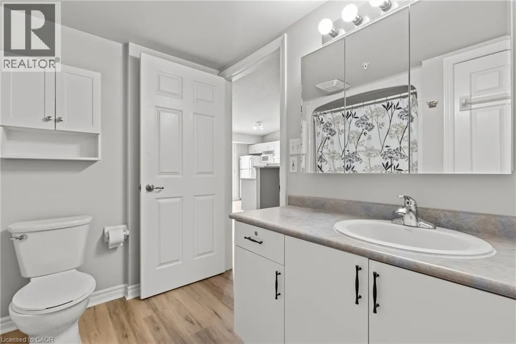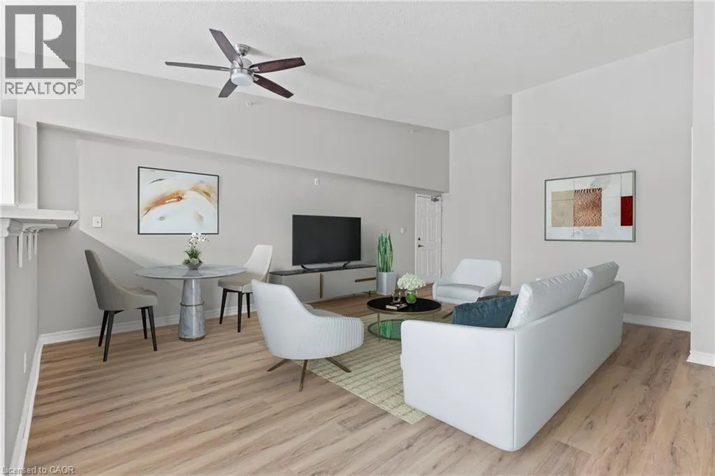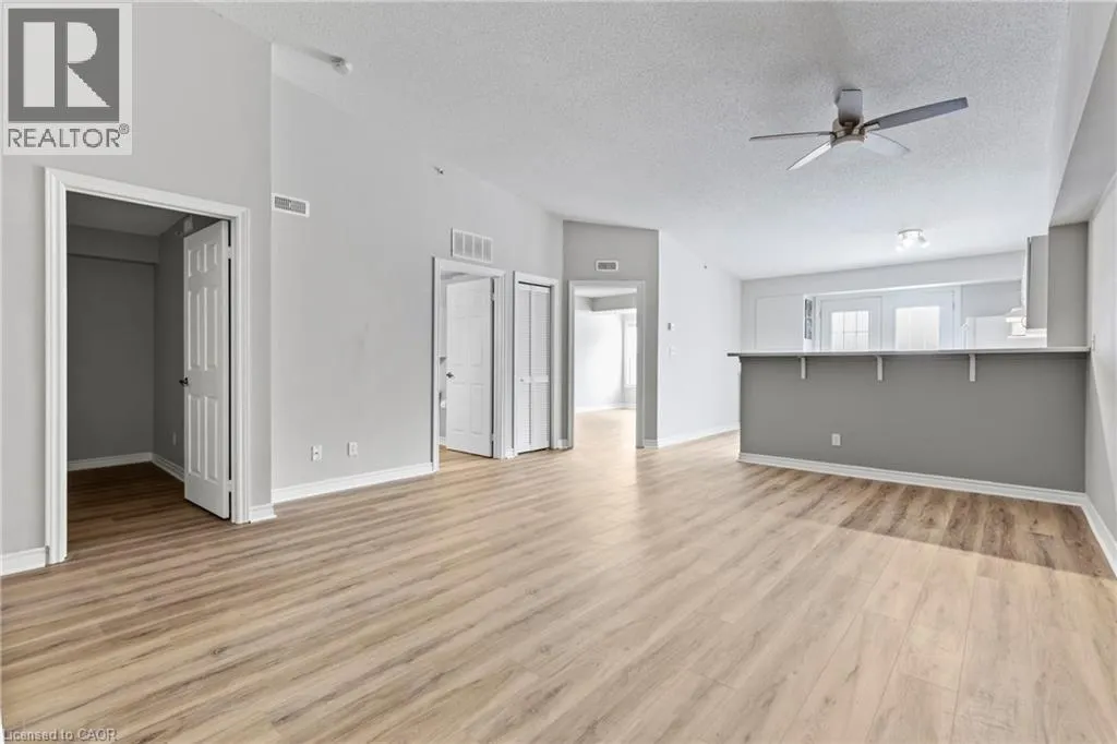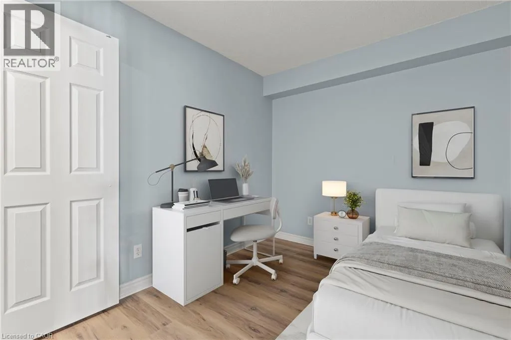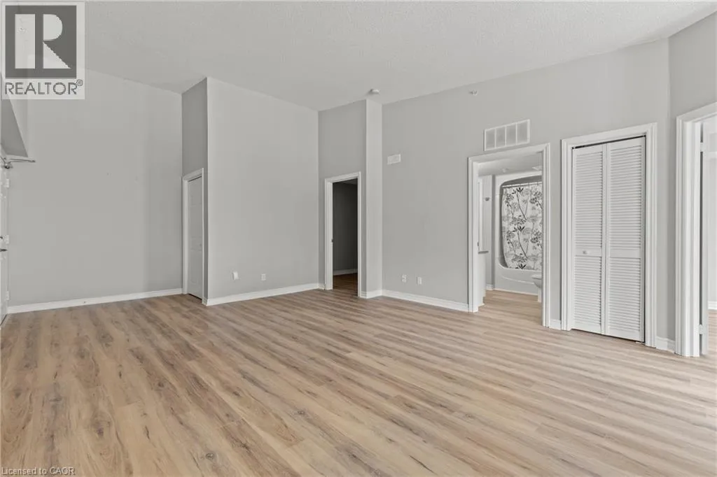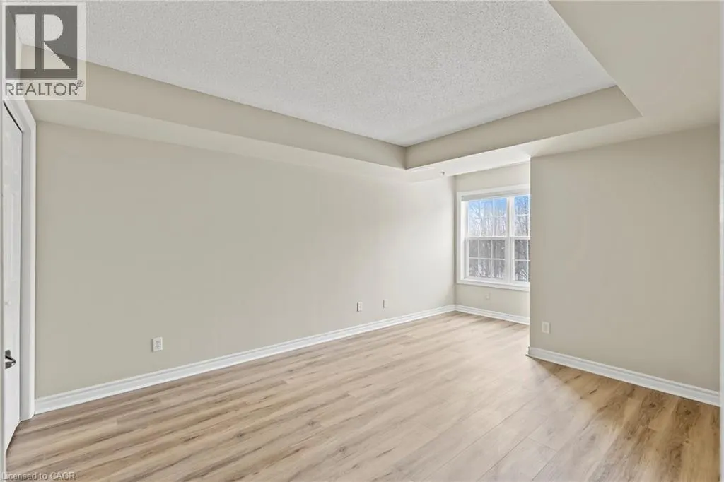 East on Appleby Line, just North of Upper Middle; entrance on RHS. Building is at the back on LHS. Welcome home to this top floor, beautifully updated, 1 + 1 bedroom open- concept luxury condo. The Hampton is a large, coveted floorplan in the Orchard Uptown Building. This 4th floor unit has soaring vaulted ceilings, and no upper neighbours! Offering ultimate privacy, backing on to protected woodlands, perfect for birdwatching from your large, private balcony. Conveniently located across from the Millcroft Shopping Centre and with public transit available, everything you need is a few steps away. This condo has been tastefully updated in January 2025 with luxurious vinyl-plank flooring throughout, new kitchen counters, and is painted in a neutral hue. Orchard Uptown Complex has an auxiliary building which houses a fully equipped gym, sauna, and party room. Included with this unit is a storage locker, 1 underground parking spot (climatized garage), which even has a car washing station! There is ample visitor parking on the surface above, and this building has an elevator. This location cannot be beat, and this condo is move-in ready! Quick access to highways and GO train. (id:27476)