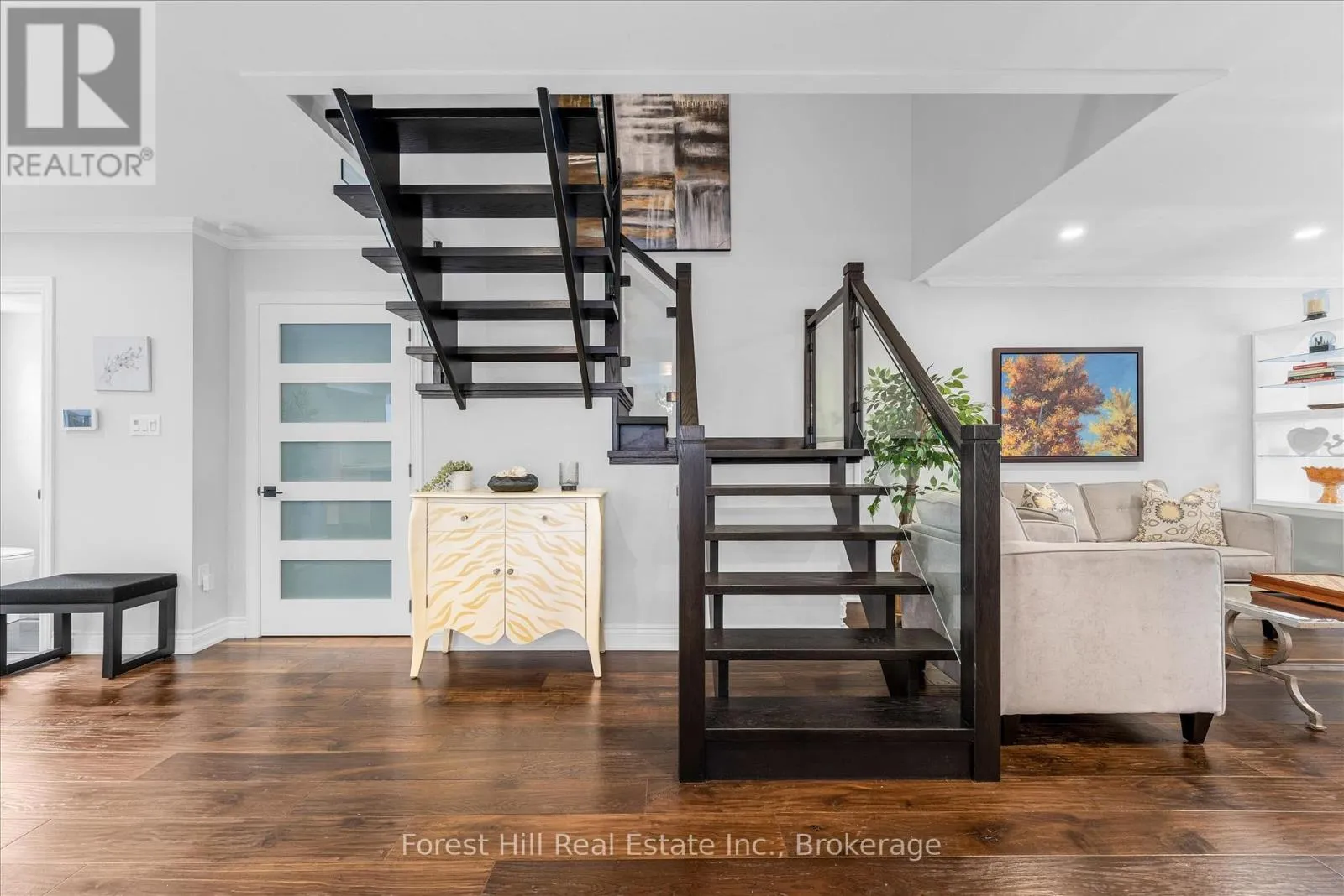 Cross Streets: Brant Street And Upper Middle. ** Directions: On Brant St. South of Upper Middle. Welcome to this exceptional end-unit townhome, backing directly onto Tyandaga Golf Course with no rear neighbours and peaceful west-facing views. This 3 bed, 3 bath home offers a rare combination of privacy, nature, and convenience. Featuring over $175,000 in recent upgrades, this property is completely move-in ready. The open-concept main level is designed for entertaining and everyday living, highlighted by a contemporary white kitchen with commercial-grade stainless steel appliances, wine fridge, coffee/tea bar and ample cabinetry. Rich finishes include large-plank hand-scraped flooring, crown moulding, pot lighting, and an oversized barn door that adds both character and function. Both the living and family rooms overlook a private, landscaped backyard with a new exposed aggregate patio (2022), outdoor fireplace, and a gas BBQ connection, creating an ideal setting for relaxing evenings and hosting guests. Notable upgrades include updated powder room and two upstairs bathrooms (2022), new front and patio sliding doors (2023), main floor powder room window (2023), gas fireplace (2025) with custom mantel and venetian plaster finish, and a striking glass staircase (2025). The upper level offers three spacious bedrooms a 4 piece bathroom, including a serene primary retreat with an upgraded ensuite. A rare opportunity to own home that delivers luxury, privacy, and an exceptional lifestyle. (id:27476)