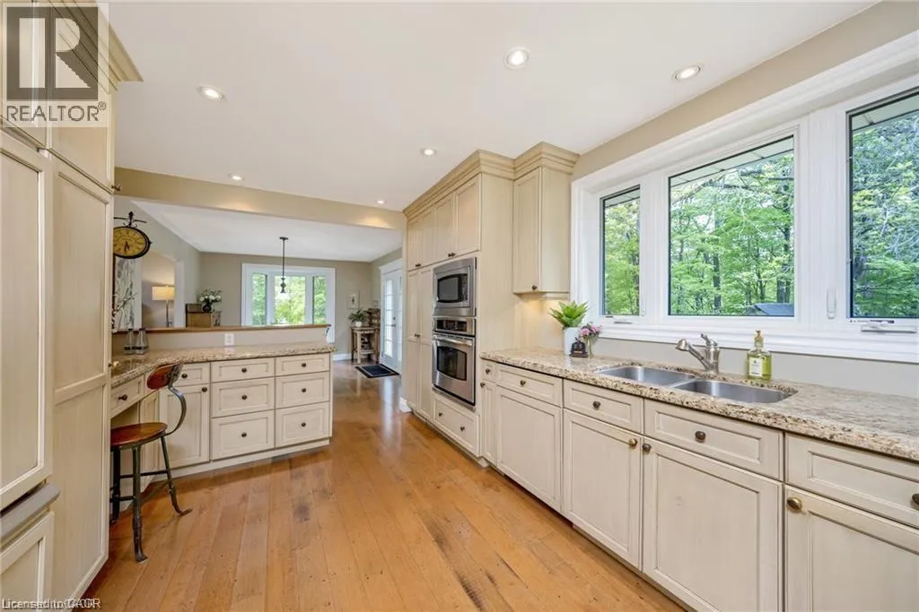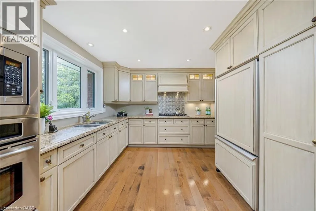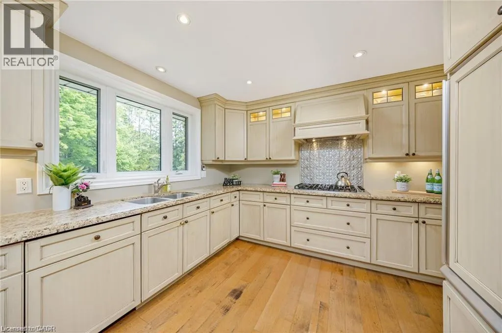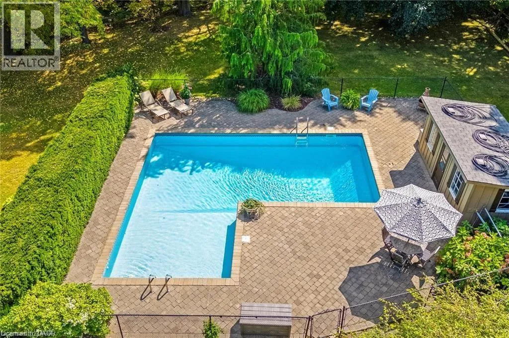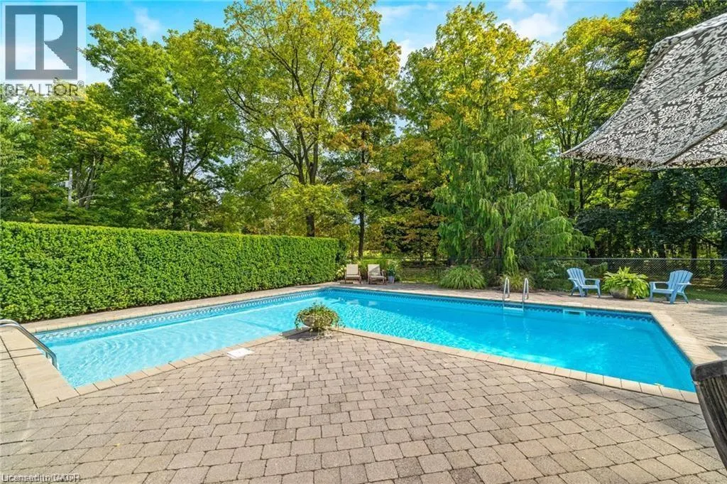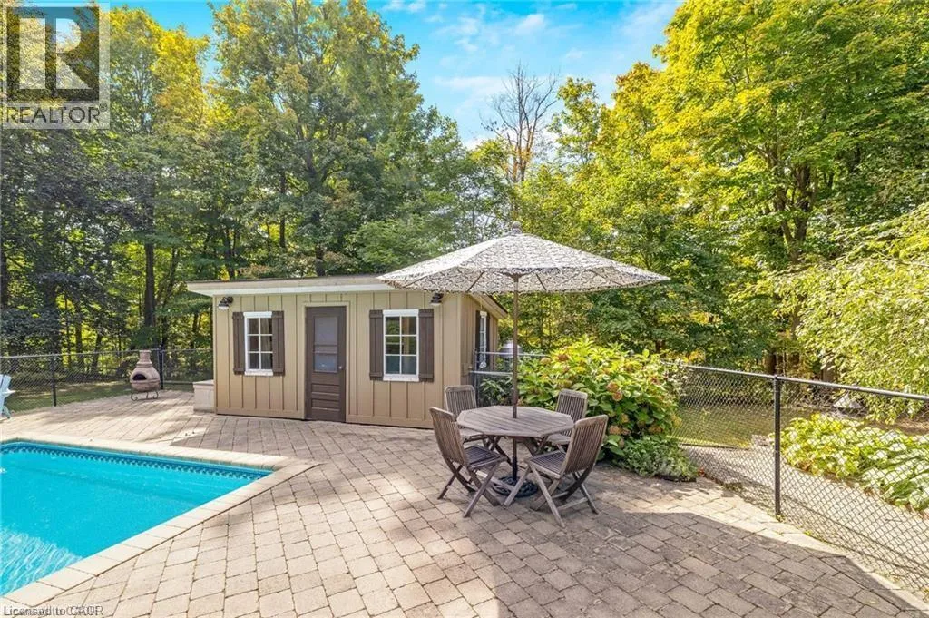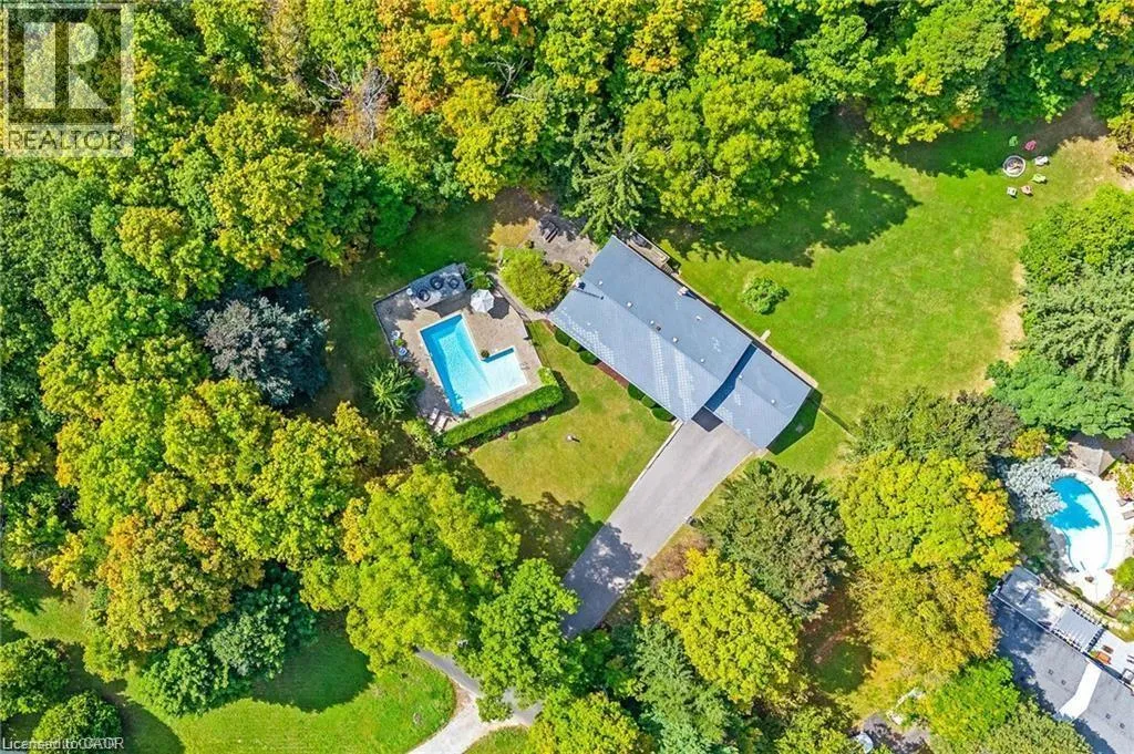 Cedar Springs Road to No. 8 side Road Enjoy the sounds of BRONTE CREEK and birds chirping as you BBQ in your wonderful new back yard! This 3+2 bedroom raised ranch bungalow w/ WALKOUT sits on a STUNNING 1.07 acre lot with a RAVINE along the full length of the property, NO NEIGHBOURS on THREE SIDES and is surrounded by trees for ULTRA-PRIVACY. Located in the highly sought-after village of Kilbride, this home is being offered for sale for the first time by the family of the ORIGINAL OWNERS. The home has lovely curb appeal, sitting back from the street, and features an over-sized living room and dining room w/ newer bay window and French doors to the beautiful yard. The renovated Barzotti kitchen features an abundance of cabinetry, quartz counters, pot lights, SS appliances including a 6-burner Viking gas cooktop and convenient desk area. There are 3 bedrooms on the main level and a 4-pc bathroom. The lower level WALKOUT features two additional bedrooms w/ large above-grade windows, one with a clubhouse cubby, 3-pc bath, large laundry w/ additional storage/workshop space, cold cellar, massive family room w/ fireplace, and den w/ walkout to yard and European roll-down shutters. Enjoy the large HEATED SALTWATER POOL with pool house and two changerooms tucked away for privacy. There is also a fun camo clubhouse with walkway and slide, shed for additional storage, firepit and massive back yard for the kids to run and play! Additional features include: steel roof, engineered hardwood on main level, NATURAL GAS HEATING, newer front door, new driveway (2020), new septic pump (2020), 2-car garage with loads of storage and SEPARATE ENTRANCE to BASEMENT from garage. Located close to all amenities, conservation areas, North Burlington Tennis Club, library, numerous golf courses, convenient corner variety store and easy access to major highways. Excellent school district in the desirable Kilbride Public School catchment. Do not miss out on this wonderful FOREVER HOME ... this is the one you have been waiting for! (id:27476)