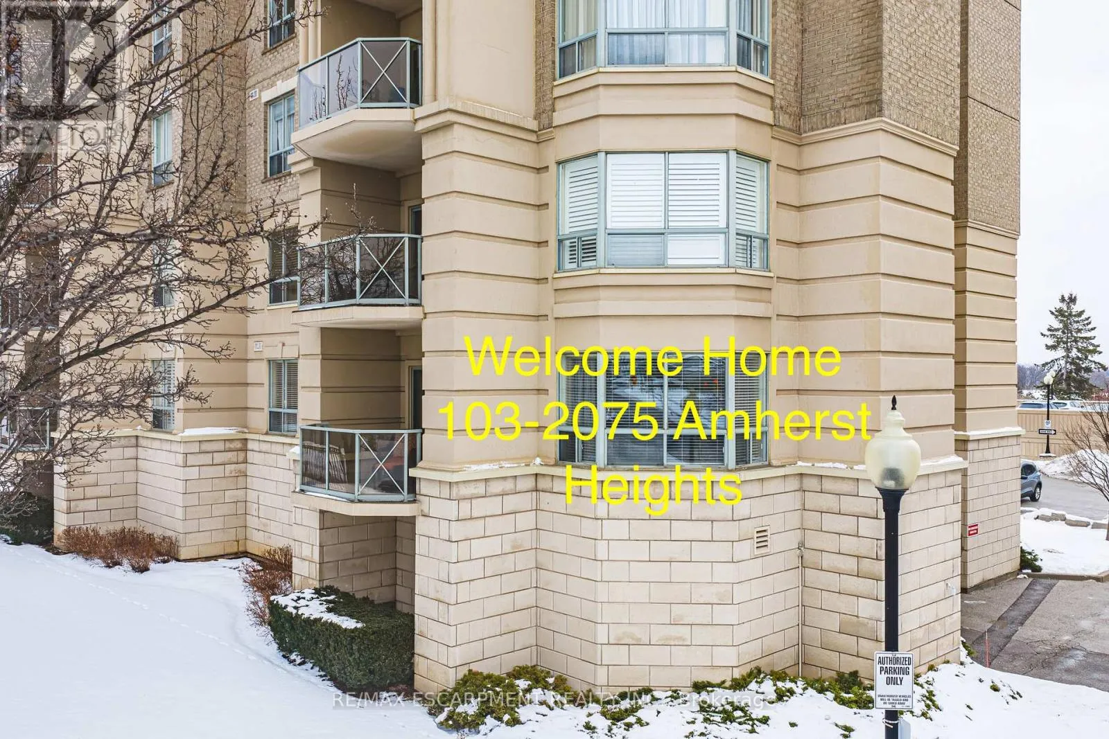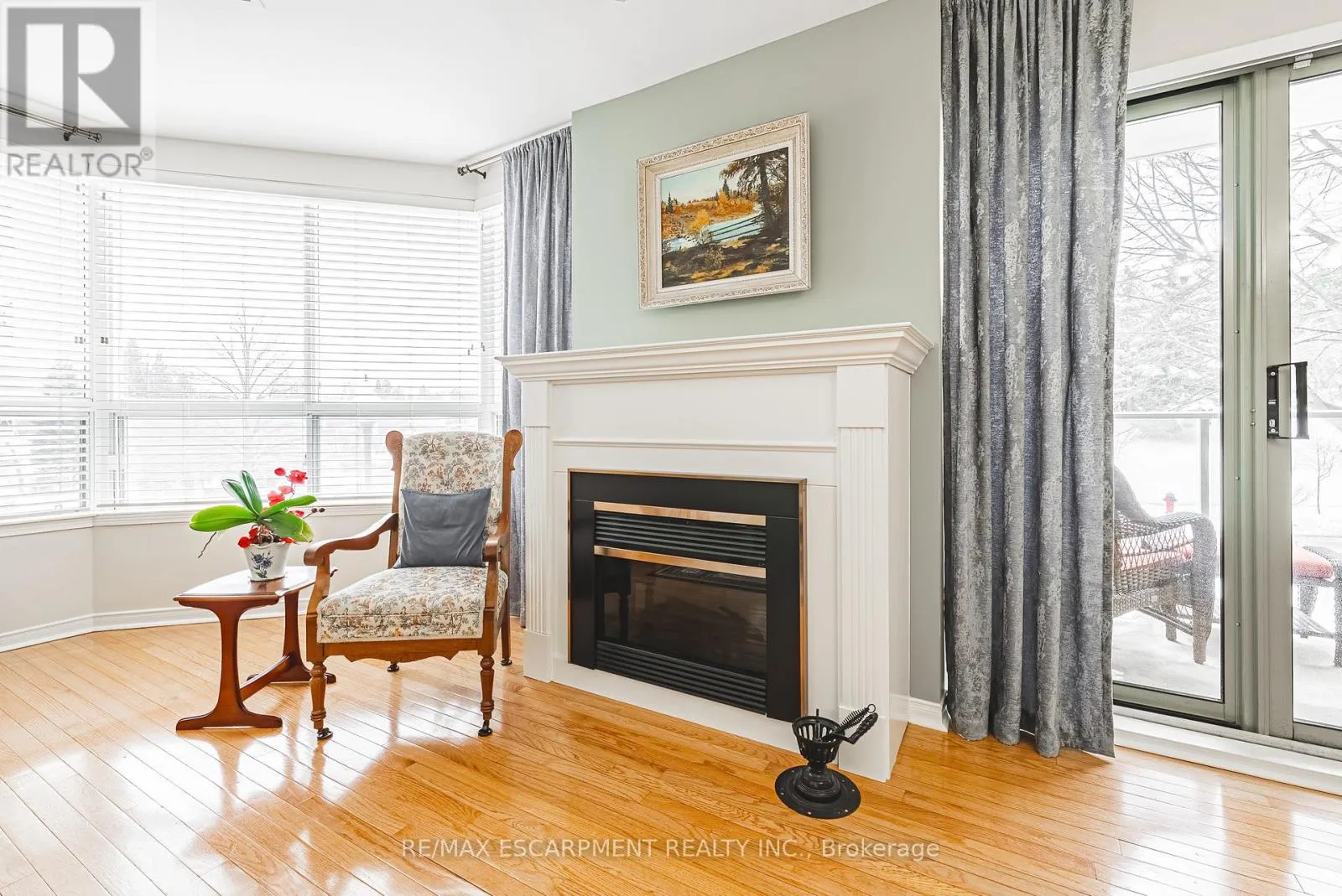 Cross Streets: BRANT AND AMHERST HEIGHTS. ** Directions: BRANT TO AMHERST HEIGHTS EAST ON. What a wonderful place to call home. This bright corner two bedroom, two bathroom condo features exceptional features and outstanding value. One of the highlights is the two parking spaces: the first is an underground spot (#117) with your locker (#7) conveniently located directly in front, just steps from the elevator and recycling area. The second is an ideally located outdoor parking space, along with ample guest parking (see photos). If you only need one space, the second parking spot can be rented out for added income. The eat-in kitchen boasts stainless steel appliances, including a refrigerator, stove, and dishwasher. This spacious kitchen features ample counter space, a double sink, and a window that fills the space with natural light, making meal preparation a true pleasure. Perfect for entertaining or relaxing after a long day, the open living area provides plenty of room to host guests or unwind. Enjoy your favourite meal, then step out onto the balcony to watch the sunset, or relax indoors by the warmth of the fireplace while taking in the view from the bay window in your elegant living room. The second bedroom is generously sized and versatile, making it ideal as a guest room, home office, or den. The second bathroom features a walk-in shower, perfect for busy mornings when you need to get out the door with ease. The voluminous primary bedroom features a peaceful retreat, where you can enjoy watching the sunrise or unwind at the end of the day with a relaxing bubble bath in the large soaking tub. (id:27476)