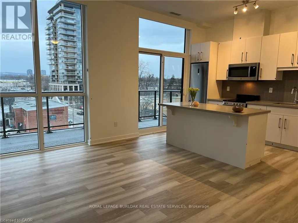 Cross Streets: Brant/James. ** Directions: Brant St to James St. Stunning rental opportunity in the Gallery Condominium. This 1+ Den, 1.5 bath suite with Northern exposure offers an incredible layout. The kitchen boasts beautiful cabinetry, quartz countertops and well-appointed kitchen island with breakfast bar. Modern hard surface flooring throughout. Generous sized bedroom with floor to ceiling window, a sizeable walk-in closet and ensuite bath with modern wet room which includes a walk-in shower and separate tub. The den is a great size and is conveniently located off the living area. Enjoy the privacy of the large balcony accessible off the living room and kitchen. Building amenities include Indoor lap pool, yoga and wellness studio, rooftop lounge & BBQ area, party room, games room, state of the art fitness centre, guest suite, pet wash station & 24 hr security. Close proximity to the waterfront, parks, banks, grocery stores, downtown shops, restaurants, Mapleview Mall and easy access to all major highways & transit. (id:27476)