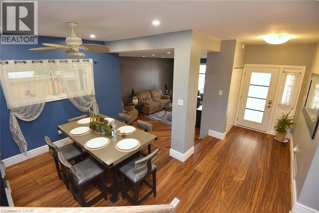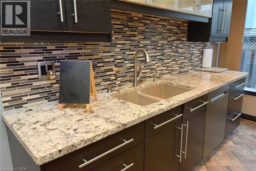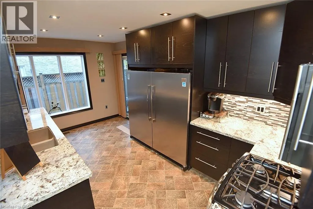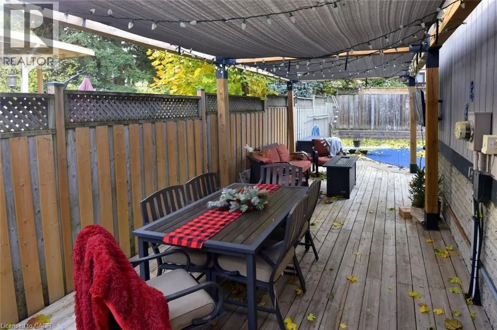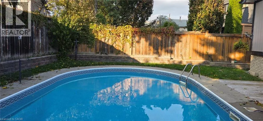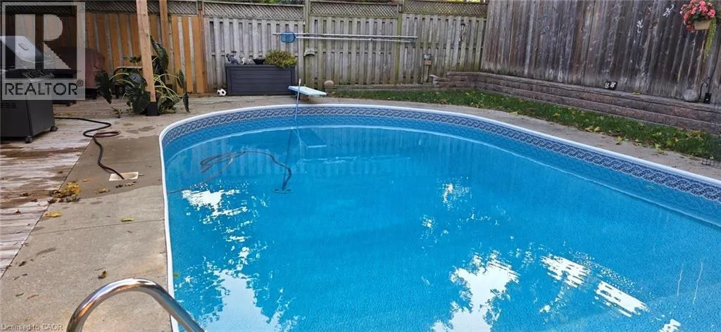 Located between Brant St and Guelph Line, just off Upper Middle. Turn north onto Cavendish. Perfect for everyday living and outdoor enjoyment, this updated 3-level backsplit offers comfortable family spaces inside and out. The fully fenced backyard features a saltwater inground pool, two gazebos, a mounted outdoor TV, and gas hookups for a BBQ and fire tableâideal for entertaining or relaxing at home. Sliding doors off the kitchen provide easy indoorâoutdoor access. A concrete front walkway and patio add curb appeal. Inside, Zebrawood hardwood flooring flows through the open-concept living and dining area. The kitchen includes a full-size fridge and stand-up freezer, with direct access from the double garage for convenient grocery unloading. The home offers 3+1 bedrooms, 2 full baths including a primary ensuite, plus 1 half bath. All upper bedrooms feature IKEA closet systems, along with a IKEA linen closet in the hallway. The lower-level family room includes a built-in TV cabinet, electric fireplace, and flexible space for a play area or home office. The garage is equipped with built-in cabinets, counter space, and automatic doors. Conveniently located close to shopping, schools, recreation centres, the lake, and major highways. Updates include: electrical panel (2004); windows (2006â2008); IKEA kitchen (2010); pool pump (2015); Zebrawood flooring (2017); owned hot water tank (2020); pool filter (2021); salt system (2022); front door, insulated garage doors, kitchen window, microwave & dishwasher (2023); furnace (2024). (id:27476)