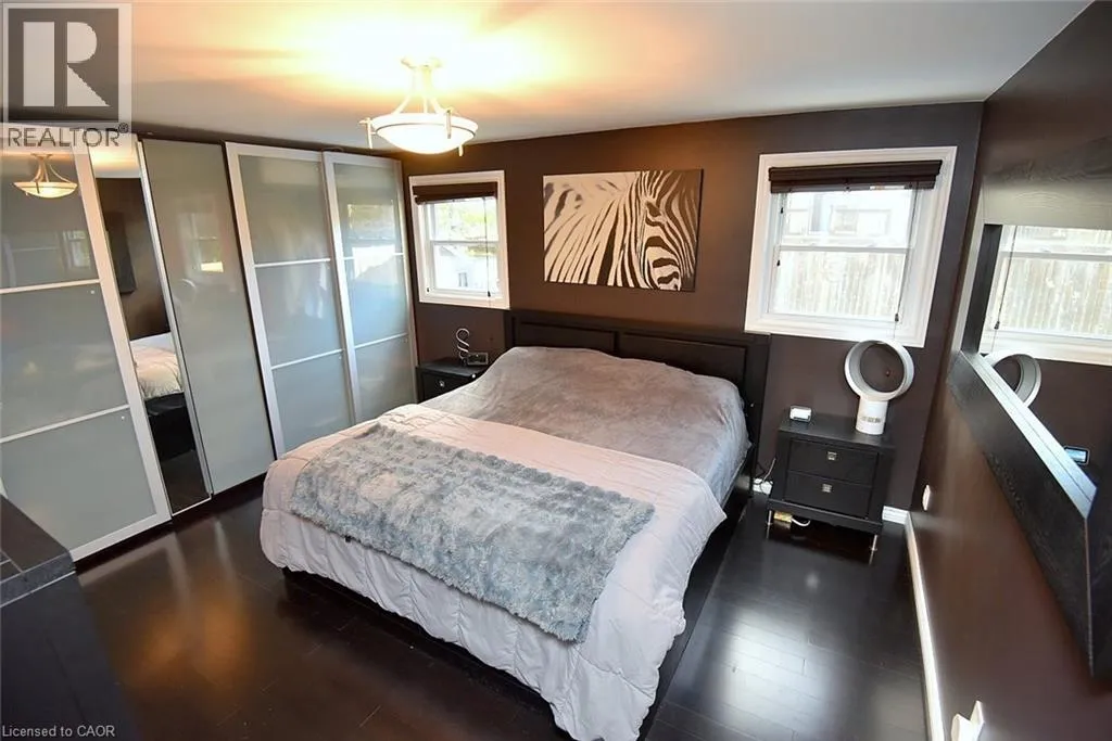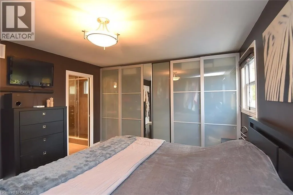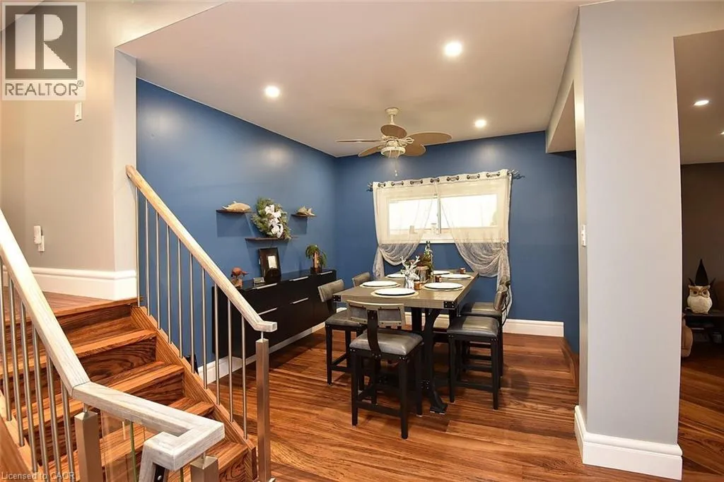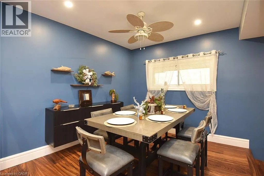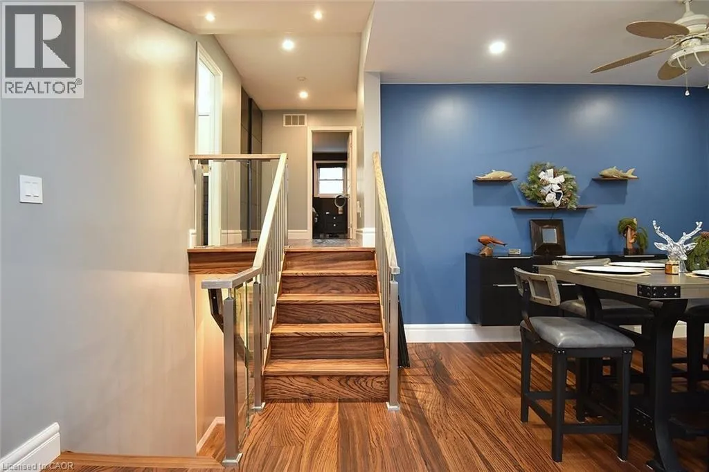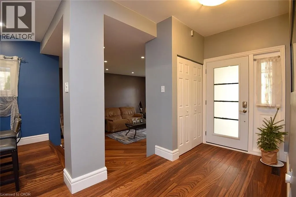 Located between Brant St and Guelph Line, just off Upper Middle. Turn north onto Cavendish. Perfect for everyday living and outdoor enjoyment, this updated 3-level backsplit offers comfortable family spaces inside and out. The fully fenced backyard features a saltwater inground pool, two gazebos, a mounted outdoor TV, and gas hookups for a BBQ and fire tableâideal for entertaining or relaxing at home. Sliding doors off the kitchen provide easy indoorâoutdoor access. A concrete front walkway and patio add curb appeal. Inside, Zebrawood hardwood flooring flows through the open-concept living and dining area. The kitchen includes a full-size fridge and stand-up freezer, with direct access from the double garage for convenient grocery unloading. The home offers 3+1 bedrooms, 2 full baths including a primary ensuite, plus 1 half bath. All upper bedrooms feature IKEA closet systems, along with a IKEA linen closet in the hallway. The lower-level family room includes a built-in TV cabinet, electric fireplace, and flexible space for a play area or home office. The garage is equipped with built-in cabinets, counter space, and automatic doors. Conveniently located close to shopping, schools, recreation centres, the lake, and major highways. Updates include: electrical panel (2004); windows (2006â2008); IKEA kitchen (2010); pool pump (2015); Zebrawood flooring (2017); owned hot water tank (2020); pool filter (2021); salt system (2022); front door, insulated garage doors, kitchen window, microwave & dishwasher (2023); furnace (2024). (id:27476)