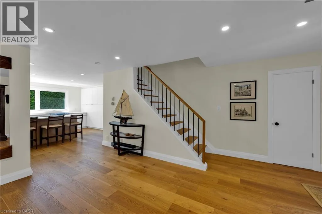 Plains Rd W, south on Boothman, or North Shore Blvd, north on Boothman Enjoy Paradise at home w/family & friends in this entertainerâs backyard featuring a gorgeous heated saltwater inground pool. This beautiful 5 bedrm (2 on main flr), 3 full bathrm home w/finished basement on an 80ft wide lot, has 3500sqft of exceptional finished living space & has been renovated top to bottom in â23. The main level includes a lrg kitchen w/endless cupboard space, 10ft island w/breakfast bar, quartz CTs, SS appl., & lrg picture window overlooking the yard & pool, spacious living rm w/bay window & gas FP, dining area w/sliding doors to the covered deck w/frameless glass railing leading to the private & beautiful yard w/ a heated 14x26ft inground saltwater pool built in â21, lots of decking & seating space, mature trees, & gas bbq hookup. The main floor is completed w/2 bedrms (can also be a primary bedrm, office or den if prefer), & a 4pce bathrm w/glass panel shower. Tthe upper level includes a very lrg primary bedrm w/dble closets & private 420sqft rooftop sundeck, 2 other spacious bedrms, laundry, & a 4pce bathrm w/tub & shower. The lower level includes a lrg rec rm, spacious media rm/library, 3pce bath w/glass enclosed shower, 2nd laundry rm, workshop, storage rm, & a separate entrance. This home also has qlty wideplank hardwood floors on all 3 levels, qlty light fixtures, tonnes of pot lights, CVAC, fresh paint T/O in â24, interlocking stone dble driveway w/parking for 6, plus a dble garage, lrg front porch & sitting area, & low maintenance gardens. Located in prestigious South Aldershot on a quiet, tree-lined street, this family-friendly neighbourhood is beautiful, & close to amazing amenities including the lake, LaSalle Park & Marina, other parks, qlty schools, highways, the GO, RBG, golf, rec centre, hospital, shops, dining, & more. The basement also has potential for rental income or an inlaw suite w/the separate entrance, separate laundry, full bathrm, & lots of living space. Donât hesitate & miss out! Welcome Home! (id:27476)
