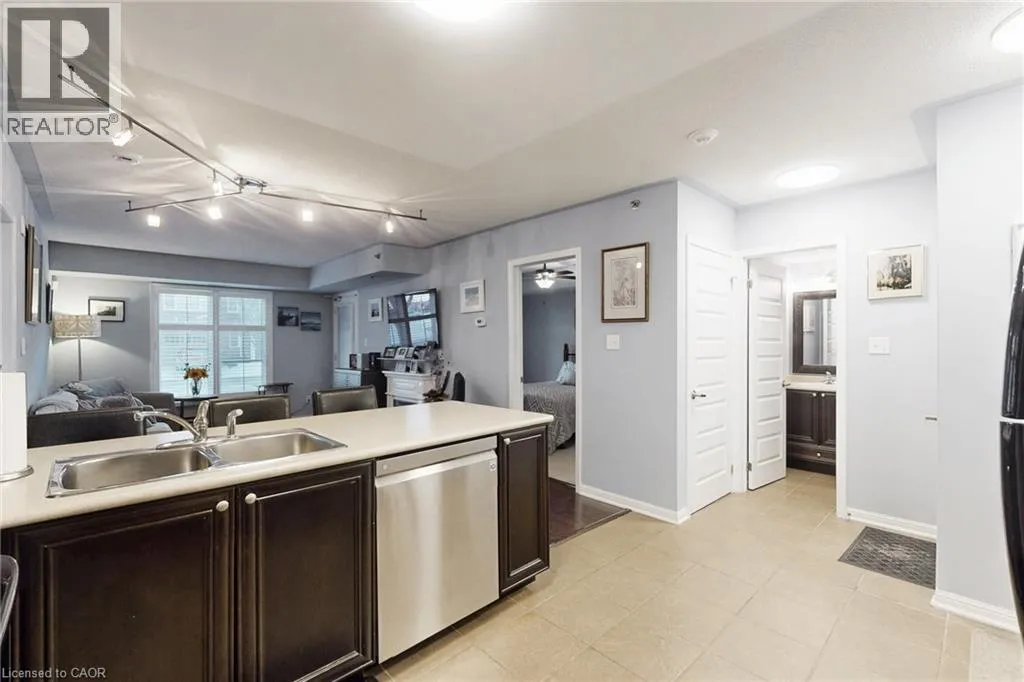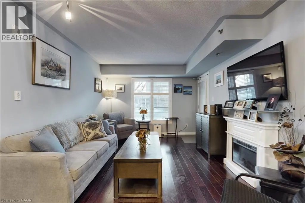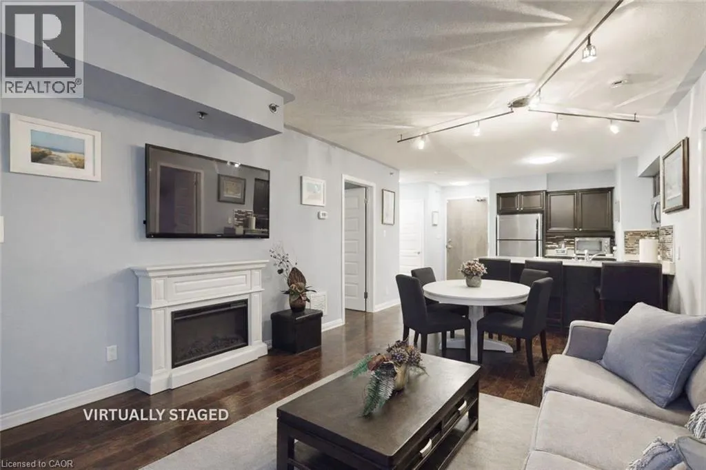 DUNDAS STREET AND WALKERS LINE Welcome to Unit 103 at The Cornerstone Condos in Alton Village! A rare ground-level 2-bedroom, 2-bathroom suite offering the convenience and comfort of townhome-style living. With 881 SF, this is one of the larger units in the building, featuring a bright, airy, and functional open-concept layout that blends urban convenience with natural charm. Perfect for first-time buyers, downsizers, or rightsizers this is low-maintenance living at its best. Enjoy easy access to the outdoors through your private patio, perfect for morning coffee, entertaining, or letting pets safely enjoy fresh air, a standout feature that sets this unit apart from traditional condo living. Plenty of windows fill the space with natural light, creating a warm, welcoming atmosphere. The unit showcases hardwood flooring throughout the main living areas, a modern kitchen with nice dark cabinetry, glass backsplash, SS appliances, and a breakfast bar. The primary bedroom includes a large walk-in closet and private ensuite, while the second bedroom is equally spacious, ideal for guests, a home office, or a growing family. An additional full bathroom and the convenience of in-suite laundry add to the homeâs functionality. Additional features include 2 parking spaces (one underground, one surface) and 1 private storage locker. The well-maintained Cornerstone community offers excellent amenities such as a party room, outdoor playground, and ample visitor parking. Conveniently located minutes to Hwy 407 and within walking distance to shops, a medical clinic, and the Haber Community Centre, this home combines location, lifestyle, and functionality in one exceptional package. (id:27476)