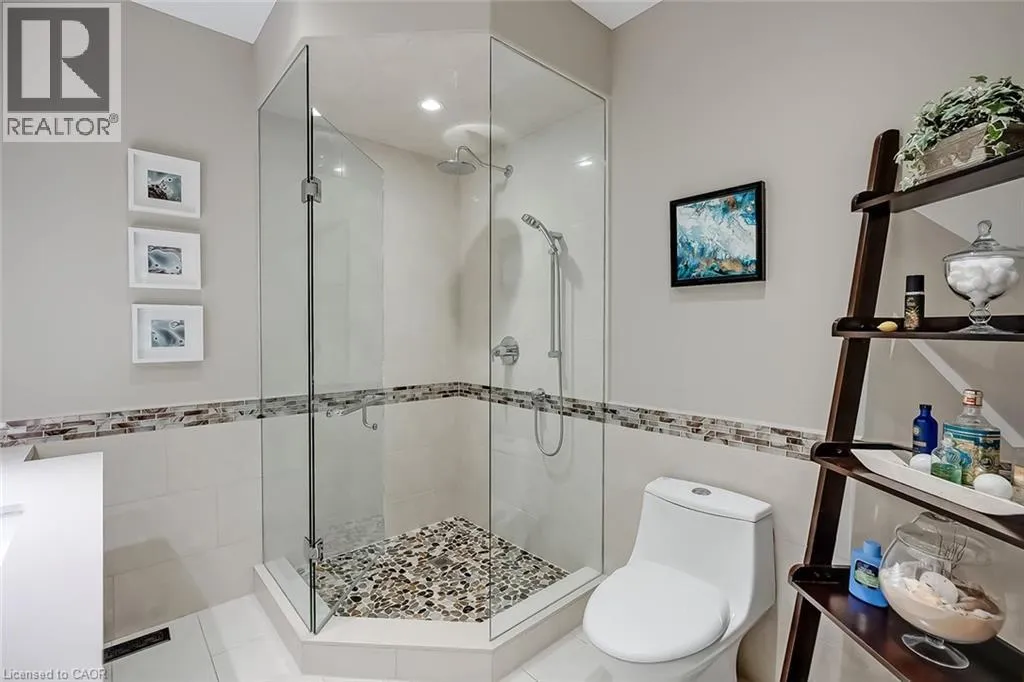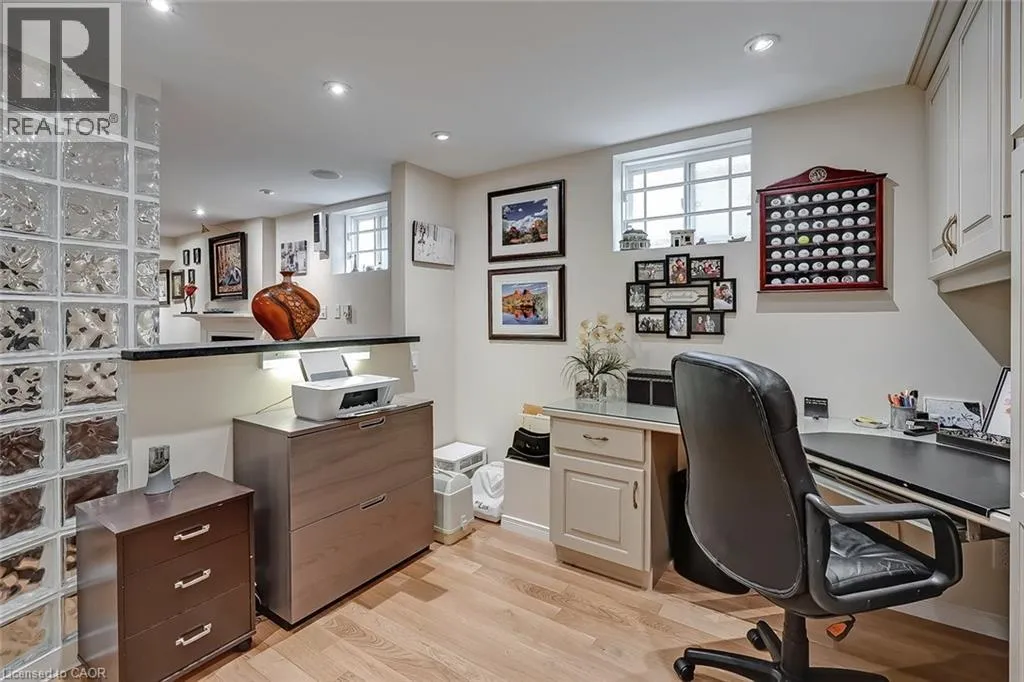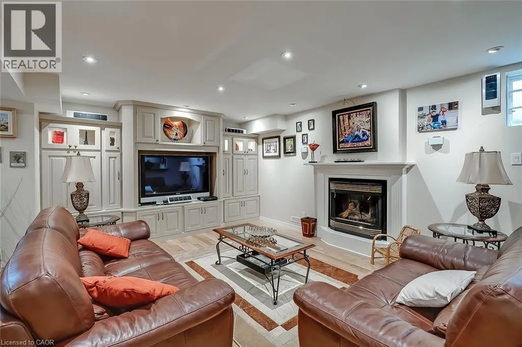 Appleby Line & Taywood Dr This COMPLETELY renovated / redesigned semi-detached BUNGALOFT backs onto the Millcroft Golf Course and has a DOUBLE car garage! Sitting in a quiet, boutique enclave, this home features 2 bedrooms, 3.5 bathrooms and quality designer finishes and fixtures throughout. This unit is approximately 1800 square feet PLUS a fully finished lower level. The open concept floorplan boasts 9-foot ceilings, hardwood flooring and plenty of natural light. The dramatic two-storey entry leads to an oversized dining room. The kitchen features custom white cabinetry, a large peninsula, quartz counters and stainless-steel appliances. The kitchen flows directly to the large family room- which includes vaulted ceilings, a gas fireplace and double doors leading to the low maintenance backyard overlooking the golf course. The large primary bedroom has a stunning 3-piece ensuite and a large walk-in closet. The main level also includes a separate powder room, laundry room and garage access! The 2nd level includes a large bedroom, den / loft and a 4-piece bathroom! The finished lower level features hardwood flooring, a large rec room with a gas fireplace, custom built-ins, wet bar, office, den, 3-piece bathroom and a cedar closet! The exterior of the home has been extensively landscaped and features a 2-tier composite deck, motorized awning and large stone patio. There is a PRIVATE double car driveway with parking for 4 vehicles plus a double car garage. (id:27476)