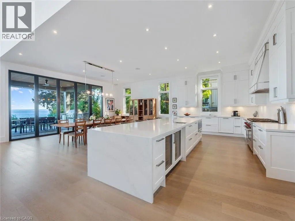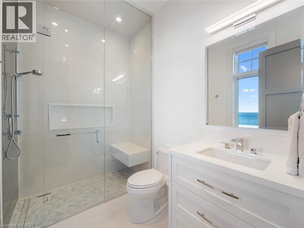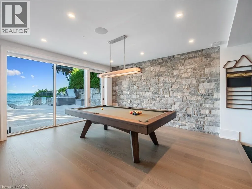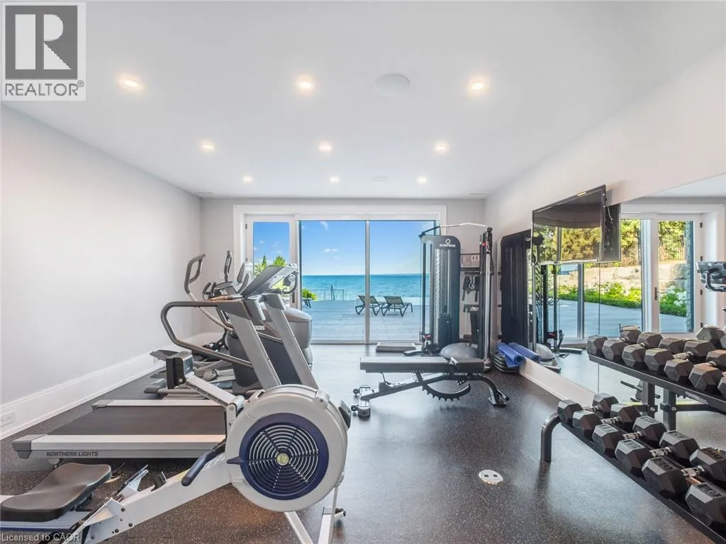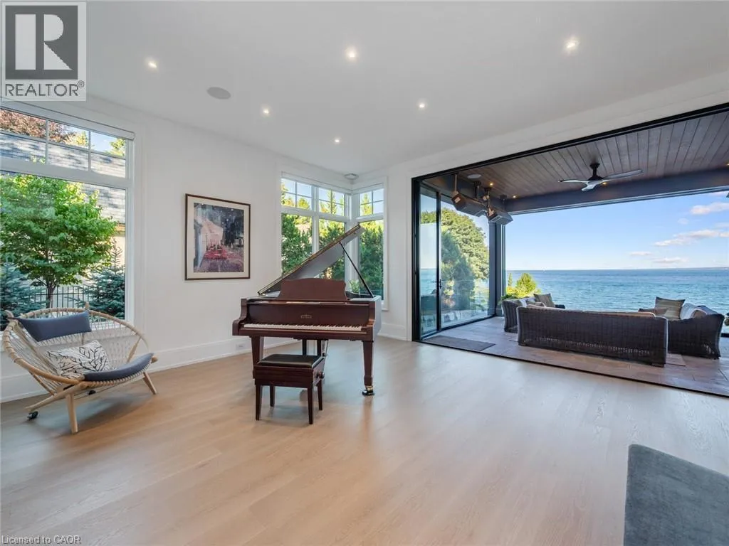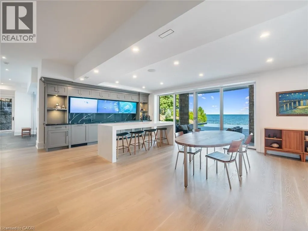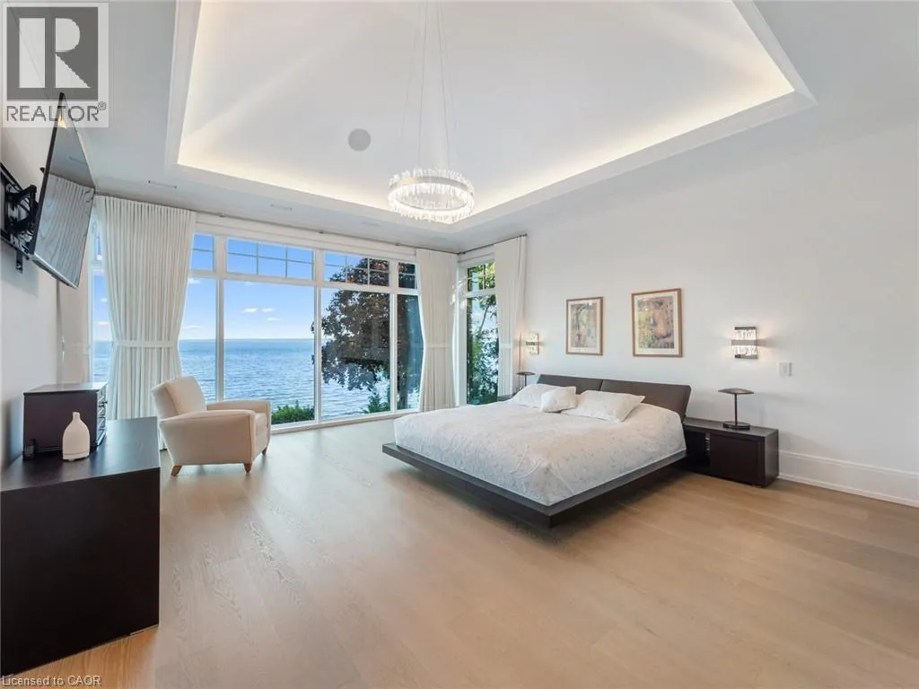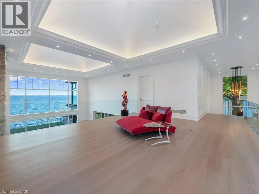 Lakeshore Road to Secord Lane The Haven. A rare waterfront estate on a private laneway in South Burlington. Set on nearly ¾ of an acre with 103 ft of shoreline and full riparian rights, this property offers privacy, direct lake access, 11,417 Sqft of living space and a lifestyle that feels like a luxury resort without leaving home. Inside, the lake takes centre stage. Floor to ceiling windows in the great room frame the view, anchored by 22 ft ceilings, a dramatic full-height stone fireplace, and a skylight that floods the space with light. A second living room provides another place to unwind, while a private office with 18 ft beamed ceilings and a stone feature wall inspires focus. Designed by architect David Small and built by Rock Cliff Custom Homes, this home is a masterclass in craftsmanship and elegance. Details like radiant heated floors throughout and heated driveway ensure year-round comfort. Three outdoor terraces extend the living space. One includes a full outdoor kitchen with built-in BBQ, fridge, and bar sink; another is heated and screened for cooler nights. An additional custom stone patio sits at the waterâs edge. The backyard is a showstopper. An infinity edge pool appears to spill into the lake, while a private tennis court adds to the resort feel. Inside the kitchen features a large quartz island, Sub- Zero, Miele, and Wolf appliances, and custom cabinetry. A generous mudroom and main-floor laundry offer everyday function. Upstairs are four bedrooms, each with an ensuite. The primary suite enjoys panoramic lake views, a spa-like ensuite, and a custom dressing room with center island. A second laundry room is also on this level. The w/o lower level includes a lounge and bar, wine cellar, golf simulator, gym with lake views, sauna, tiered theatre, guest suite, and 3 additional bathrooms. An oversized 4-car tandem garage completes the home. Just minutes to downtown Burlington and a short drive to Toronto and Niagara, this is lakeside living without compromise. Luxury Certified. (id:27476)