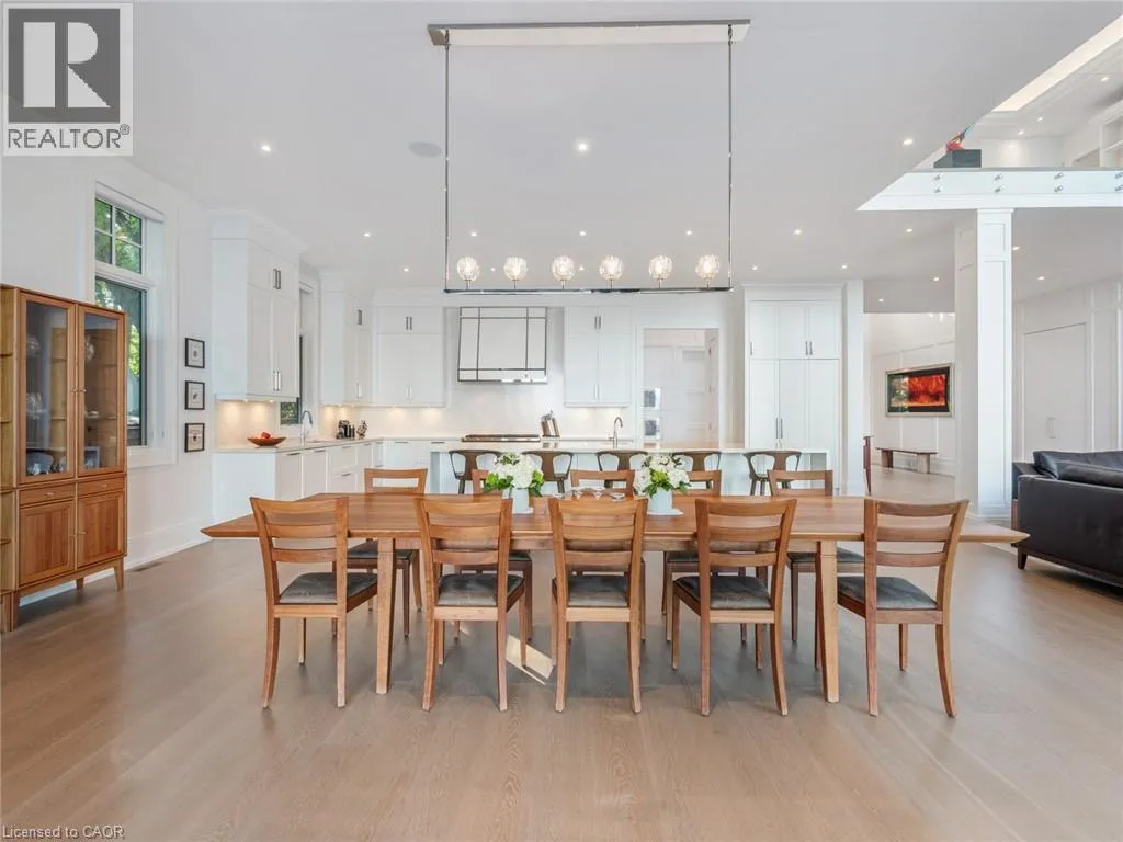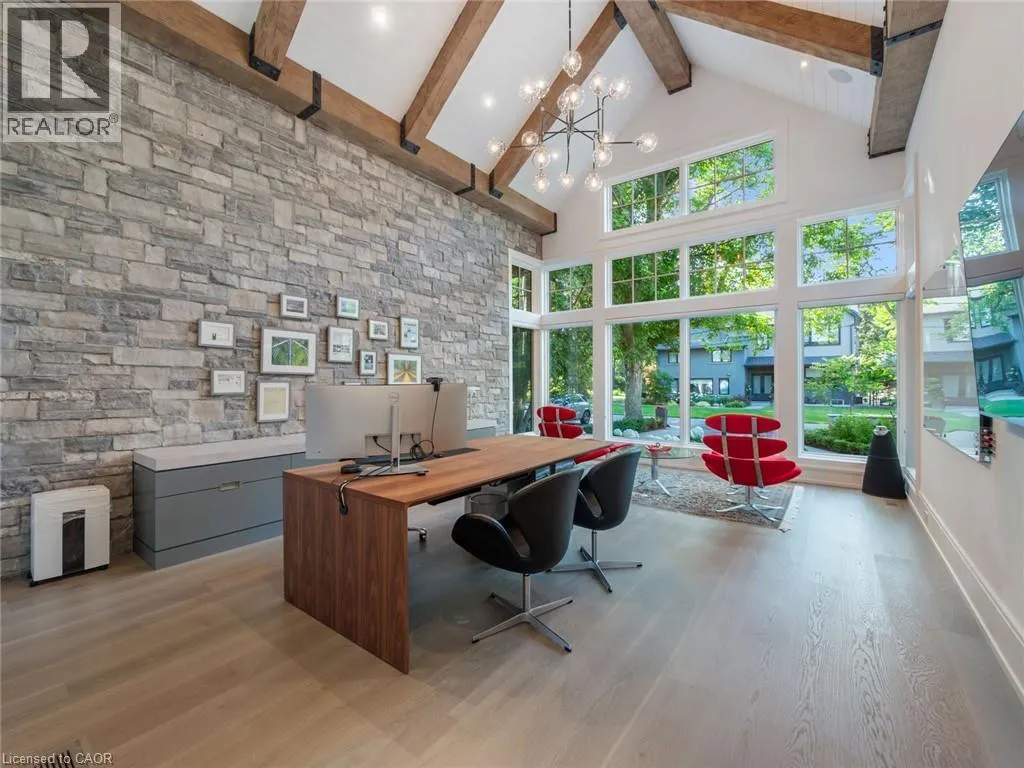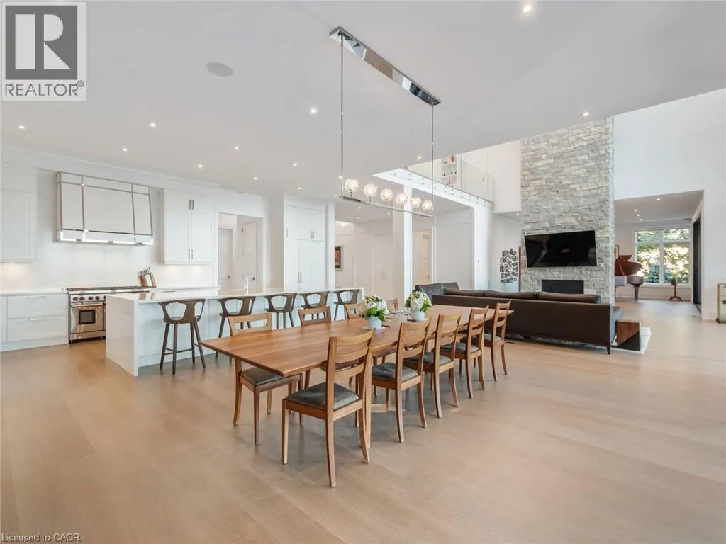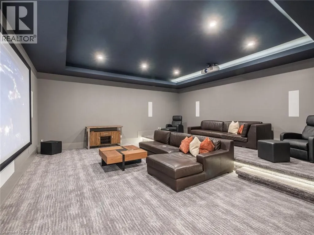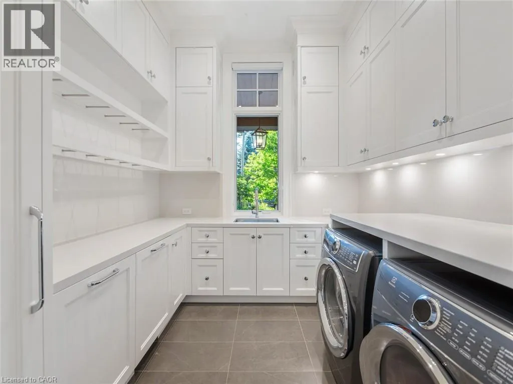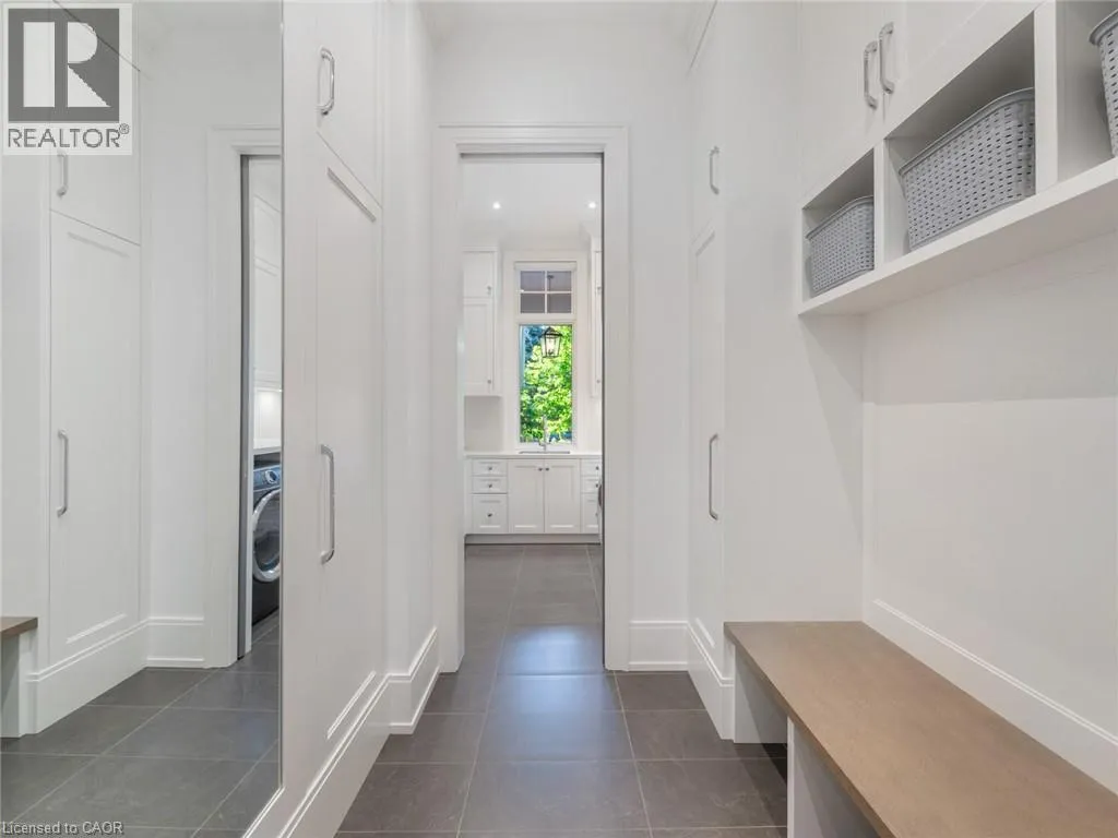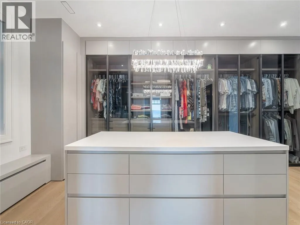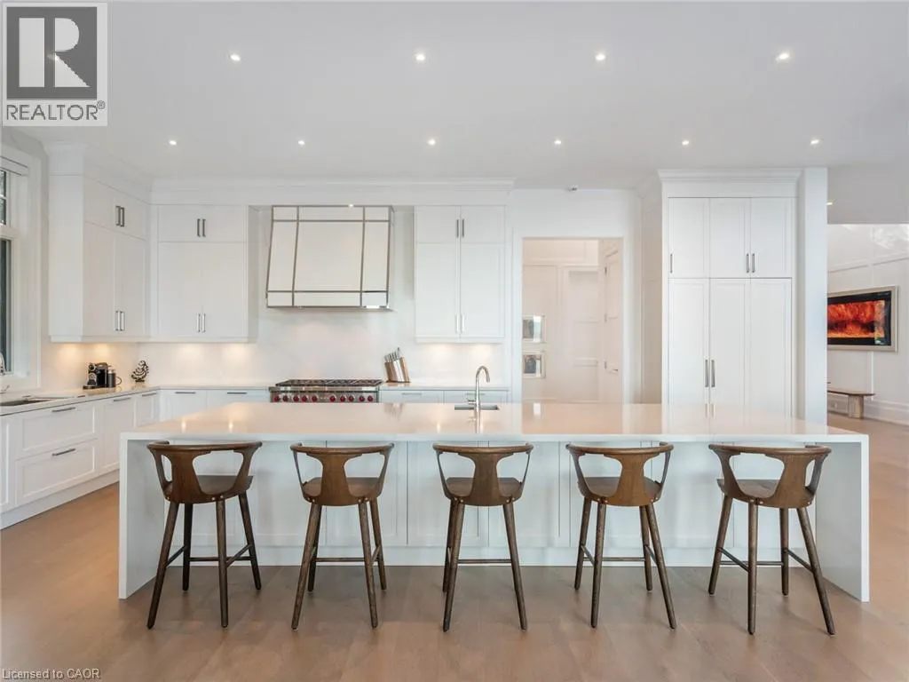 Lakeshore Road to Secord Lane The Haven. A rare waterfront estate on a private laneway in South Burlington. Set on nearly ¾ of an acre with 103 ft of shoreline and full riparian rights, this property offers privacy, direct lake access, 11,417 Sqft of living space and a lifestyle that feels like a luxury resort without leaving home. Inside, the lake takes centre stage. Floor to ceiling windows in the great room frame the view, anchored by 22 ft ceilings, a dramatic full-height stone fireplace, and a skylight that floods the space with light. A second living room provides another place to unwind, while a private office with 18 ft beamed ceilings and a stone feature wall inspires focus. Designed by architect David Small and built by Rock Cliff Custom Homes, this home is a masterclass in craftsmanship and elegance. Details like radiant heated floors throughout and heated driveway ensure year-round comfort. Three outdoor terraces extend the living space. One includes a full outdoor kitchen with built-in BBQ, fridge, and bar sink; another is heated and screened for cooler nights. An additional custom stone patio sits at the waterâs edge. The backyard is a showstopper. An infinity edge pool appears to spill into the lake, while a private tennis court adds to the resort feel. Inside the kitchen features a large quartz island, Sub- Zero, Miele, and Wolf appliances, and custom cabinetry. A generous mudroom and main-floor laundry offer everyday function. Upstairs are four bedrooms, each with an ensuite. The primary suite enjoys panoramic lake views, a spa-like ensuite, and a custom dressing room with center island. A second laundry room is also on this level. The w/o lower level includes a lounge and bar, wine cellar, golf simulator, gym with lake views, sauna, tiered theatre, guest suite, and 3 additional bathrooms. An oversized 4-car tandem garage completes the home. Just minutes to downtown Burlington and a short drive to Toronto and Niagara, this is lakeside living without compromise. Luxury Certified. (id:27476)