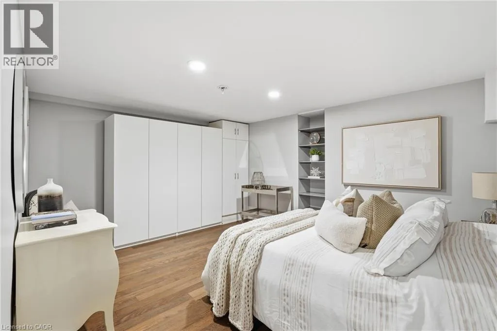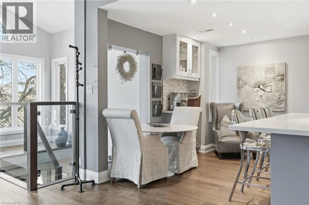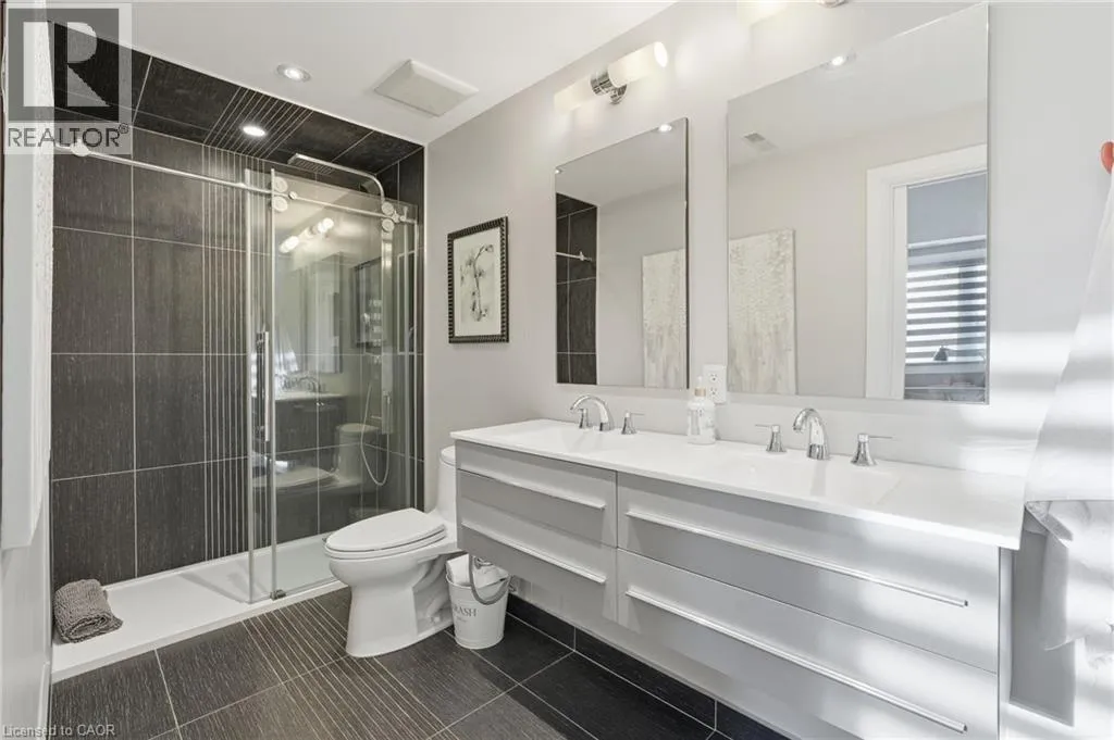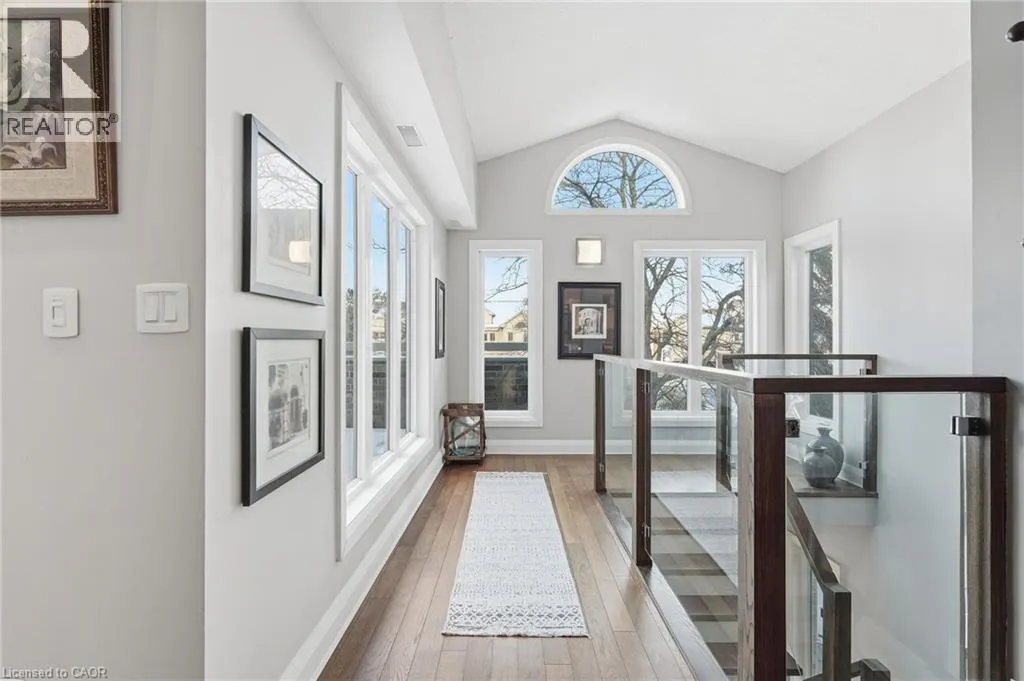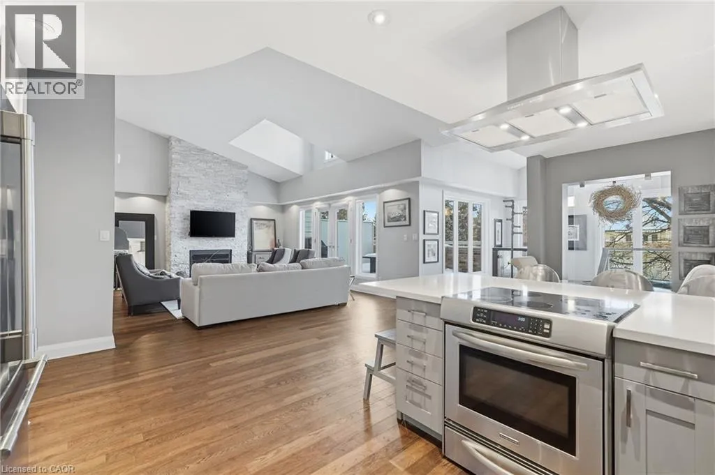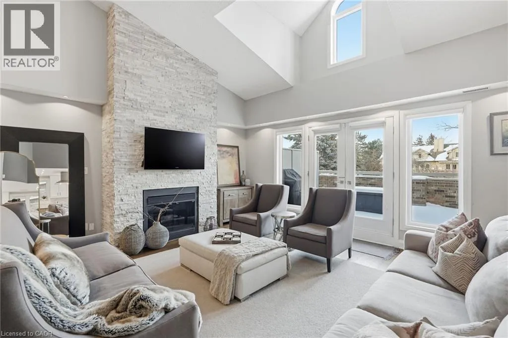 On the south side of New Street between Guelph Line and Walkers Line Step inside this exceptional executive townhome at The Terraces on New Street, where refined living meets everyday convenience in the heart of Burlington. A dramatic sun-filled great room with soaring 15.5-foot cathedral ceilings and a gas fireplace creates an impressive yet welcoming space to relax or entertain. Rich hardwood flooring flows throughout the entire home, adding warmth and elegance to every room.The open-concept layout leads into a chef-inspired kitchen with expansive quartz countertops and a generous peninsulaâperfect for gathering, prepping, and hosting. From here, step out to your private east-facing terrace, ideal for morning coffee or alfresco evenings with friends.The main level offers two spacious bedrooms, each with its own full bathroom. The primary retreat features a walk-through closet, along with a spa-like five-piece ensuite complete with double sinks, a soaker tub, and a glass shower. The second bedroom enjoys ensuite privilege to a 4 pc bathroom. A main-floor laundry area adds everyday convenience. Downstairs, the fully finished lower level offers incredible flexibilityâperfect for a home office, gym, guest suite, or media room. Youâll also find a 3-pc bathroom, an additional walk-in closet with built-ins, and multiple storage closets, providing exceptional storage throughout the home. All new windows were replaced in 2024, offering added comfort, energy efficiency, and peace of mind. Inside garage entry and ample storage add practicality to luxury living. Enjoy maintenance-free living just steps to downtown Burlington, the lake, top-rated schools, parks, and shopping. This is a rare opportunity for turnkey elegance in a truly unbeatable location. (id:27476)