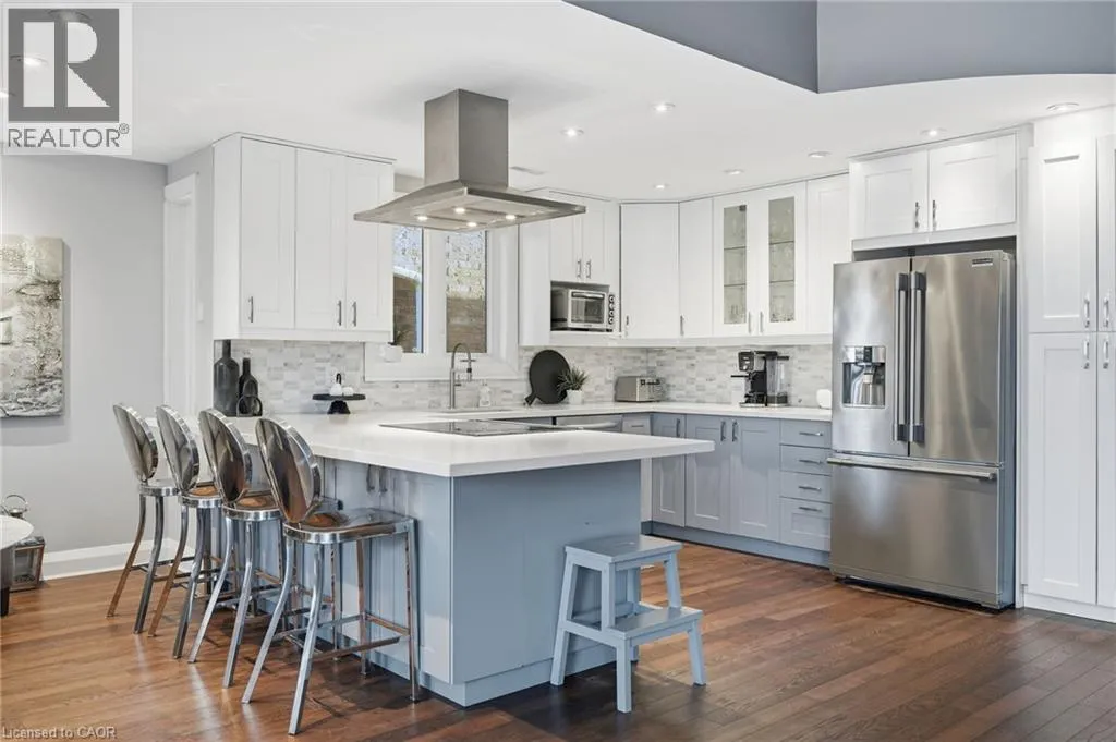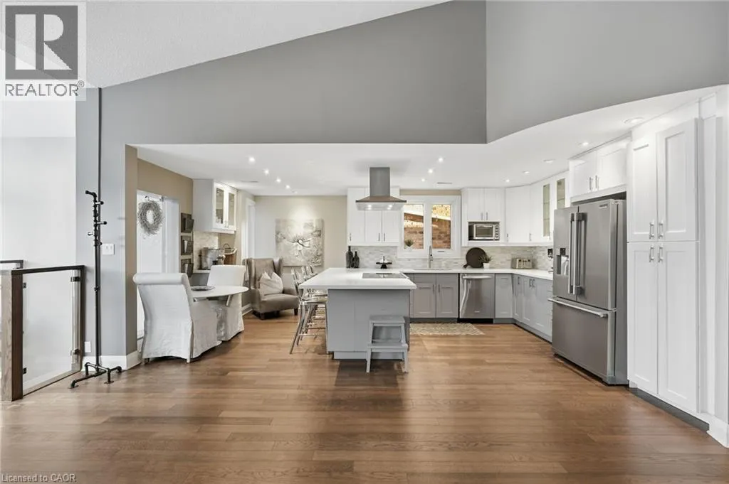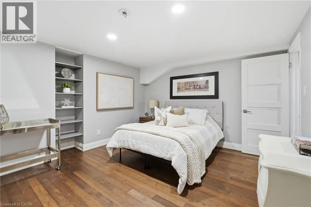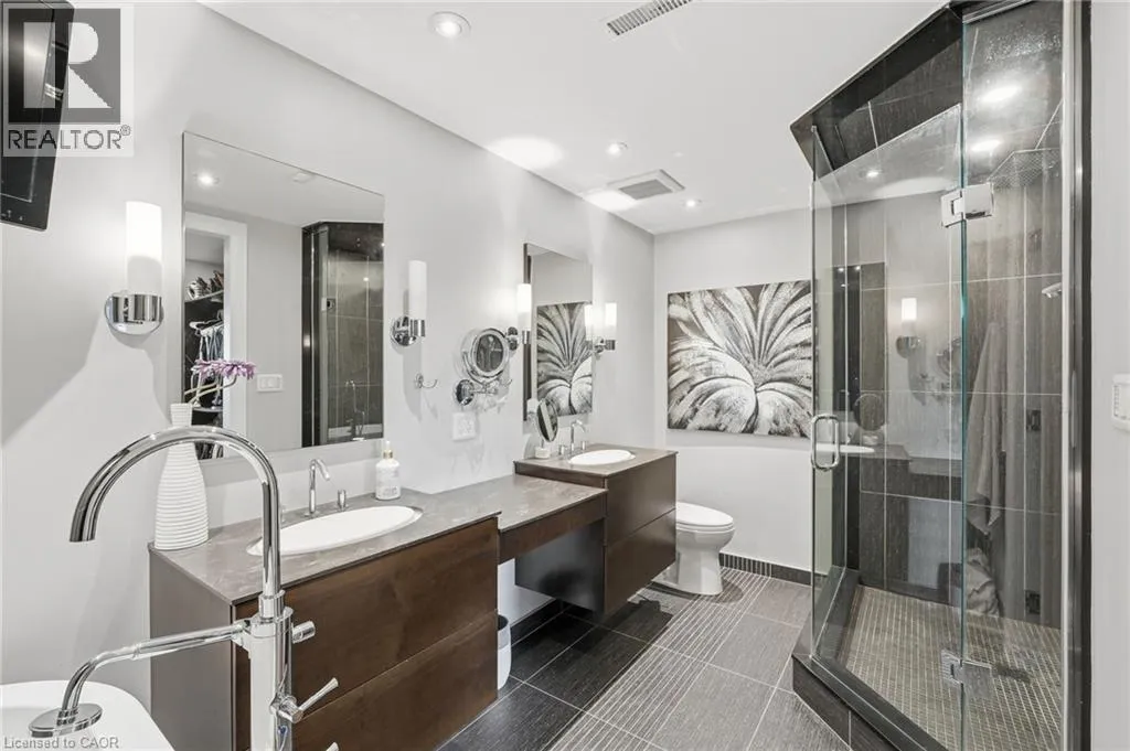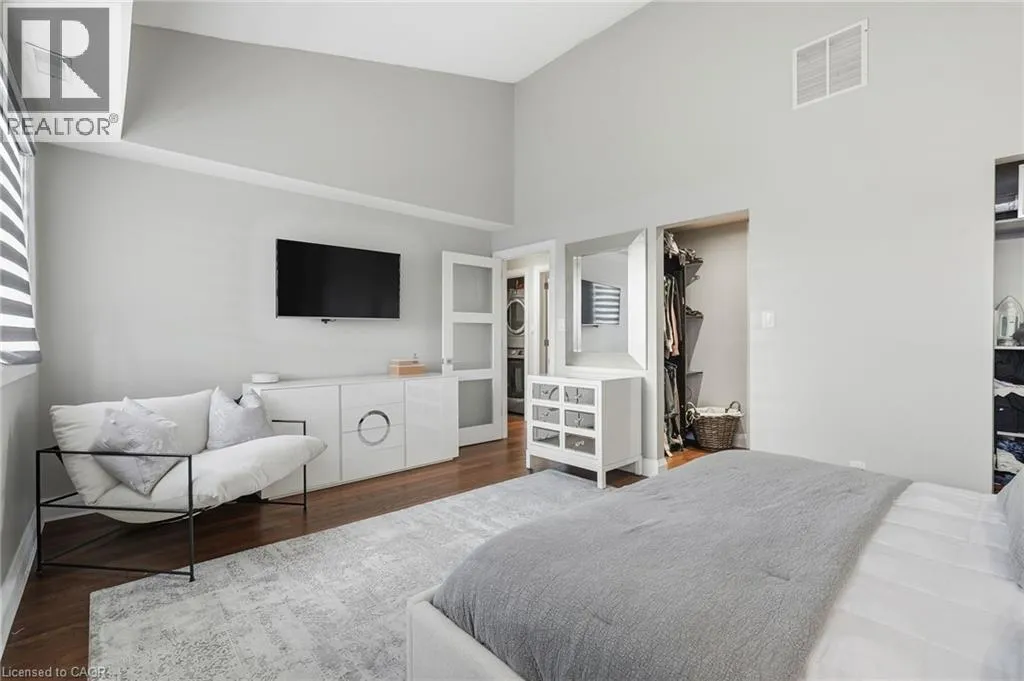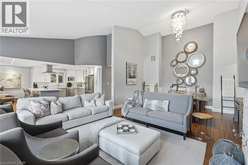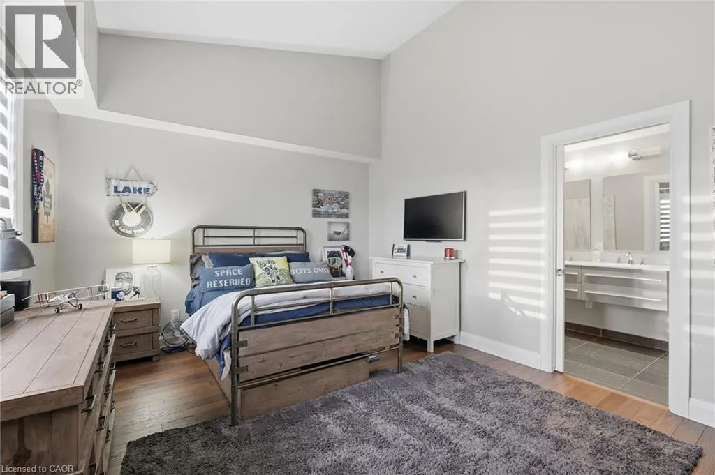 On the south side of New Street between Guelph Line and Walkers Line Step inside this exceptional executive townhome at The Terraces on New Street, where refined living meets everyday convenience in the heart of Burlington. A dramatic sun-filled great room with soaring 15.5-foot cathedral ceilings and a gas fireplace creates an impressive yet welcoming space to relax or entertain. Rich hardwood flooring flows throughout the entire home, adding warmth and elegance to every room.The open-concept layout leads into a chef-inspired kitchen with expansive quartz countertops and a generous peninsulaâperfect for gathering, prepping, and hosting. From here, step out to your private east-facing terrace, ideal for morning coffee or alfresco evenings with friends.The main level offers two spacious bedrooms, each with its own full bathroom. The primary retreat features a walk-through closet, along with a spa-like five-piece ensuite complete with double sinks, a soaker tub, and a glass shower. The second bedroom enjoys ensuite privilege to a 4 pc bathroom. A main-floor laundry area adds everyday convenience. Downstairs, the fully finished lower level offers incredible flexibilityâperfect for a home office, gym, guest suite, or media room. Youâll also find a 3-pc bathroom, an additional walk-in closet with built-ins, and multiple storage closets, providing exceptional storage throughout the home. All new windows were replaced in 2024, offering added comfort, energy efficiency, and peace of mind. Inside garage entry and ample storage add practicality to luxury living. Enjoy maintenance-free living just steps to downtown Burlington, the lake, top-rated schools, parks, and shopping. This is a rare opportunity for turnkey elegance in a truly unbeatable location. (id:27476)