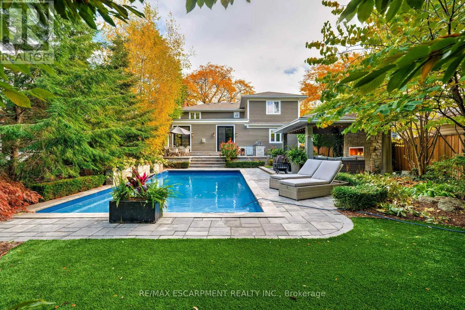 Cross Streets: COURTLAND DR. ** Directions: NEW ST , DURY LANE TO COURTLAND DR. Curb appeal that captivates, & a backyard sanctuary you'll never want to leave! Welcome to one of Burlington's most sought-after neighborhoods, where this stunning 4+1 bedroom, 3.5 bathroom residence offers exceptional living space & an extraordinary outdoor retreat. Step inside to discover hand-scraped hardwood floors flowing through light-filled rooms, beginning w/ an elegant formal dining room ideal for memorable gatherings. The beautifully appointed kitchen showcases premium cabinetry, granite countertops, & an oversized island that serves as the heart of the home. It seamlessly connects to an expansive great room adorned w/ a coffered ceiling & striking stone fireplace, w/ dual W/O to your private oasis beyond. The thoughtfully designed main level includes a versatile bedroom/office, a convenient mudroom w/ laundry & garage access, & a sophisticated powder room. Ascend to the second floor where the luxurious primary suite awaits, complete w/ a generous W/I closet & spa-inspired ensuite featuring a soaking tub w/ garden views & frameless glass shower. Two additional well-proportioned bedrooms & a full bathroom complete the upper level. The professionally finished lower level expands your living options w/ a spacious recreation room, cozy sitting area, fifth bedroom, & full bathroom, perfect for guests or multi-generational living.The backyard is where this home truly shines.Step into your own private paradise: a meticulously landscaped haven featuring mature specimen trees, vibrant perennial gardens, & dozens of flourishing hydrangeas. Elegant stonework winds through the space, while low-maintenance premium turf ensures year-round beauty. Entertain in style on the oversized porch w/ built-in BBQ station, take a dip in the sparkling in-ground pool (featuring newer liner, pump, & cartridge filter), relax by the soothing waterfall feature, or gather around the gas fireplace in the covered outdoor lounge. This is more than a home, it's a lifestyle. Luxury Certified. (id:27476)
