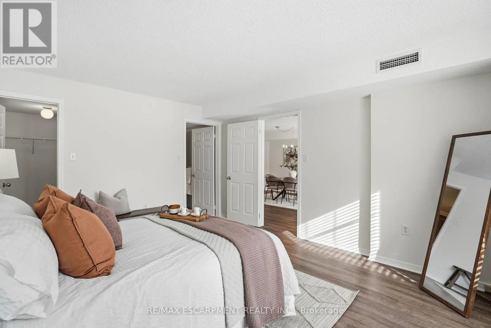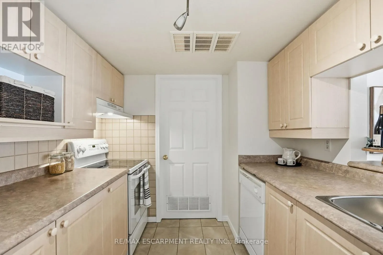 Cross Streets: Plains Rd W + Darryl Dr. ** Directions: Plains Rd W to Darryl Dr. Welcome home to this beautifully maintained, spacious suite at Oaklands Green - ideal for first-time buyers or those looking to downsize without compromise. Offering over 1,000 sqft of comfortable living space, the roomy floor plan easily accommodates full-sized furniture, allowing for a seamless transition to condo living. This lovely unit features a generous primary suite complete with a walk-in closet and ensuite access to the oversized bathroom with double sinks, a soaker tub, and a separate walk-in shower. Freshly painted and carpet-free, the home showcases a warm, neutral colour palette that feels both inviting and timeless. Enjoy the convenience of in-suite laundry and an easy ground-level location that's uniquely positioned with no direct neighbours on either side. One storage locker is included, as well as one large premium parking space right next to the elevator. Set in a quiet Aldershot neighbourhood, you're just minutes from schools, everyday amenities, and quick access to the 403 - everything you need, right where you want to be. (id:27476)