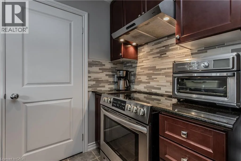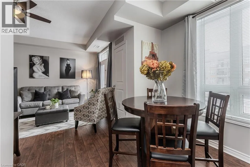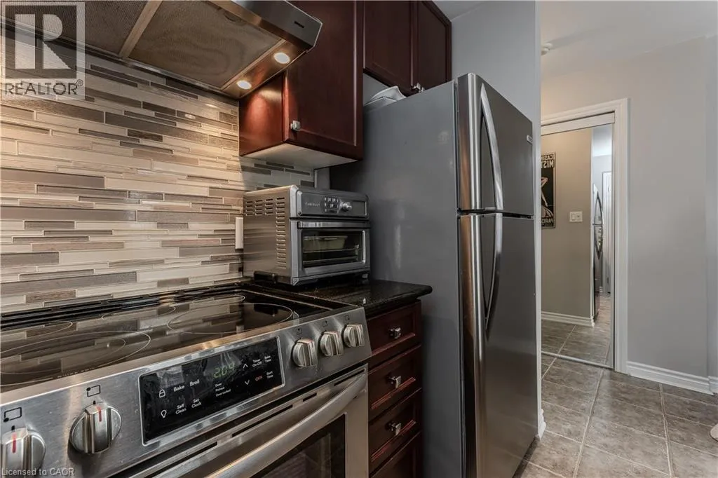 Appleby to Upper Middle Welcome to effortless condo living in a highly desirable community that perfectly blends modern comfort with an unbeatable lifestyle location. Ideal for nature lovers, professionals, and commuters alike, this beautifully maintained condo is set just minutes from Bronte Creek Provincial Park, where scenic trails and green space invite you to unwind year-round. Everyday conveniences are close at hand with nearby schools, shopping, and dining, while easy highway access makes commuting simple and efficient. Step inside to a bright, open-concept interior designed for both style and function. Hardwood flooring flows throughout the unit, complemented by high ceilings that create an airy, welcoming atmosphere. The upgraded kitchen is a standout, featuring sleek granite countertops, a contemporary tile backsplash, stainless steel appliances, and a spacious island with breakfast bar seatingâperfect for casual dining, entertaining guests, or morning coffee. The living room is filled with natural light and opens to a private west-facing balcony, offering a peaceful outdoor retreat and the perfect spot to enjoy sunset views. A dedicated dining area adds flexibility for hosting friends or enjoying relaxed meals at home. The spacious bedroom serves as a comfortable retreat, complete with a tray ceiling and a large window that allows natural light to pour in. A well-appointed 4-piece bathroom offers clean, modern finishes, while the convenience of in-unit laundry enhances everyday living. One parking space is included, with the opportunity to rent additional parking if needed. Residents also enjoy access to excellent building amenities, including a party room with kitchenetteâideal for celebrations and gatheringsâand a generous rooftop terrace with BBQs, perfect for summer entertaining or relaxing outdoors. Offering low-maintenance living in a prime location surrounded by nature and urban conveniences, this condo delivers comfort, lifestyle, and value in one exceptional package. (id:27476)