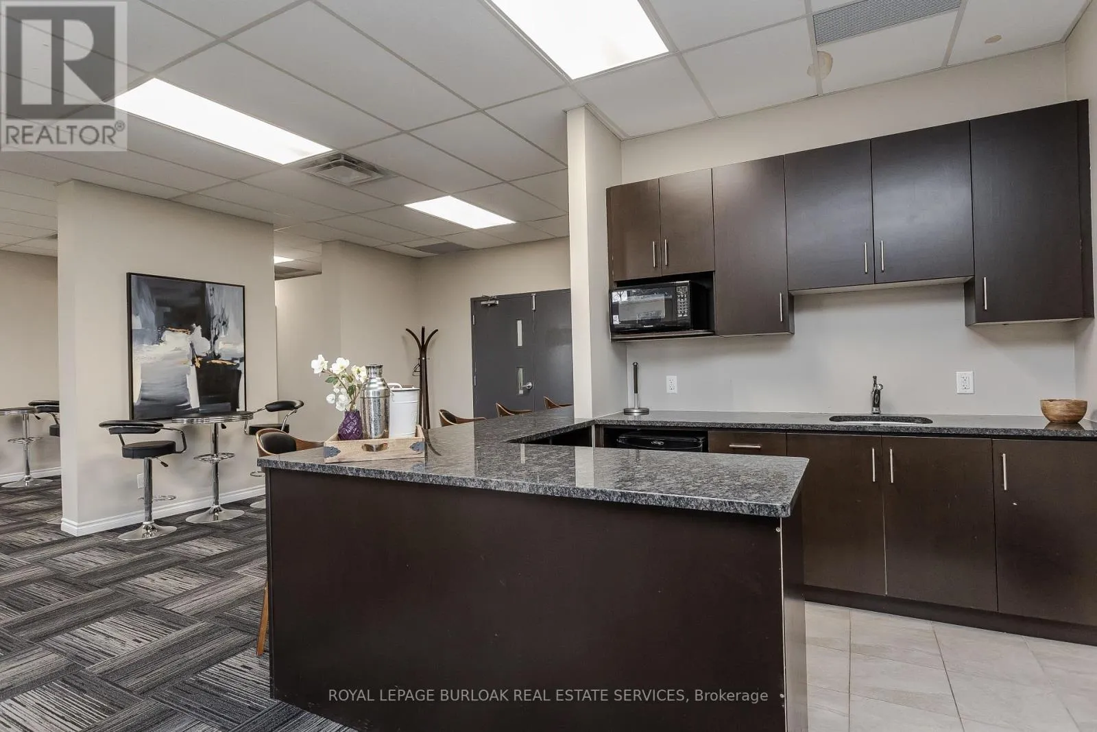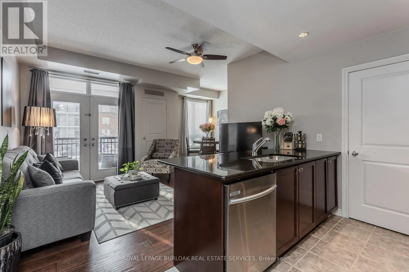 Appleby and Upper Middle Welcome to effortless condo living in a highly desirable community that perfectly blends modern comfort with an unbeatable lifestyle location. Ideal for nature lovers, professionals, and commuters alike, this beautifully maintained condo is set just minutes from Bronte Creek Provincial Park, where scenic trails and green space invite you to unwind year-round. Everyday conveniences are close at hand with nearby schools, shopping, and dining, while easy highway access makes commuting simple and efficient. Step inside to a bright, open-concept interior designed for both style and function. Hardwood flooring flows throughout the unit, complemented by high ceilings that create an airy, welcoming atmosphere. The upgraded kitchen is a standout, featuring sleek granite countertops, a contemporary tile backsplash, stainless steel appliances, and a spacious island with breakfast bar seating-perfect for casual dining, entertaining guests, or morning coffee. The living room is filled with natural light and opens to a private west-facing balcony, offering a peaceful outdoor retreat and the perfect spot to enjoy sunset views. A dedicated dining area adds flexibility for hosting friends or enjoying relaxed meals at home. The spacious bedroom serves as a comfortable retreat, complete with a tray ceiling and a large window that allows natural light to pour in. A well-appointed 4-piece bathroom offers clean, modern finishes, while the convenience of in-unit laundry enhances everyday living. One parking space is included, with the opportunity to rent additional parking if needed. Residents also enjoy access to excellent building amenities, including a party room with kitchenette-ideal for celebrations and gatherings-and a generous rooftop terrace with BBQs, perfect for summer entertaining or relaxing outdoors. Offering low-maintenance living in a prime location surrounded by nature and urban conveniences, this condo delivers comfort, lifestyle, and value in one exceptional package. (id:27476)