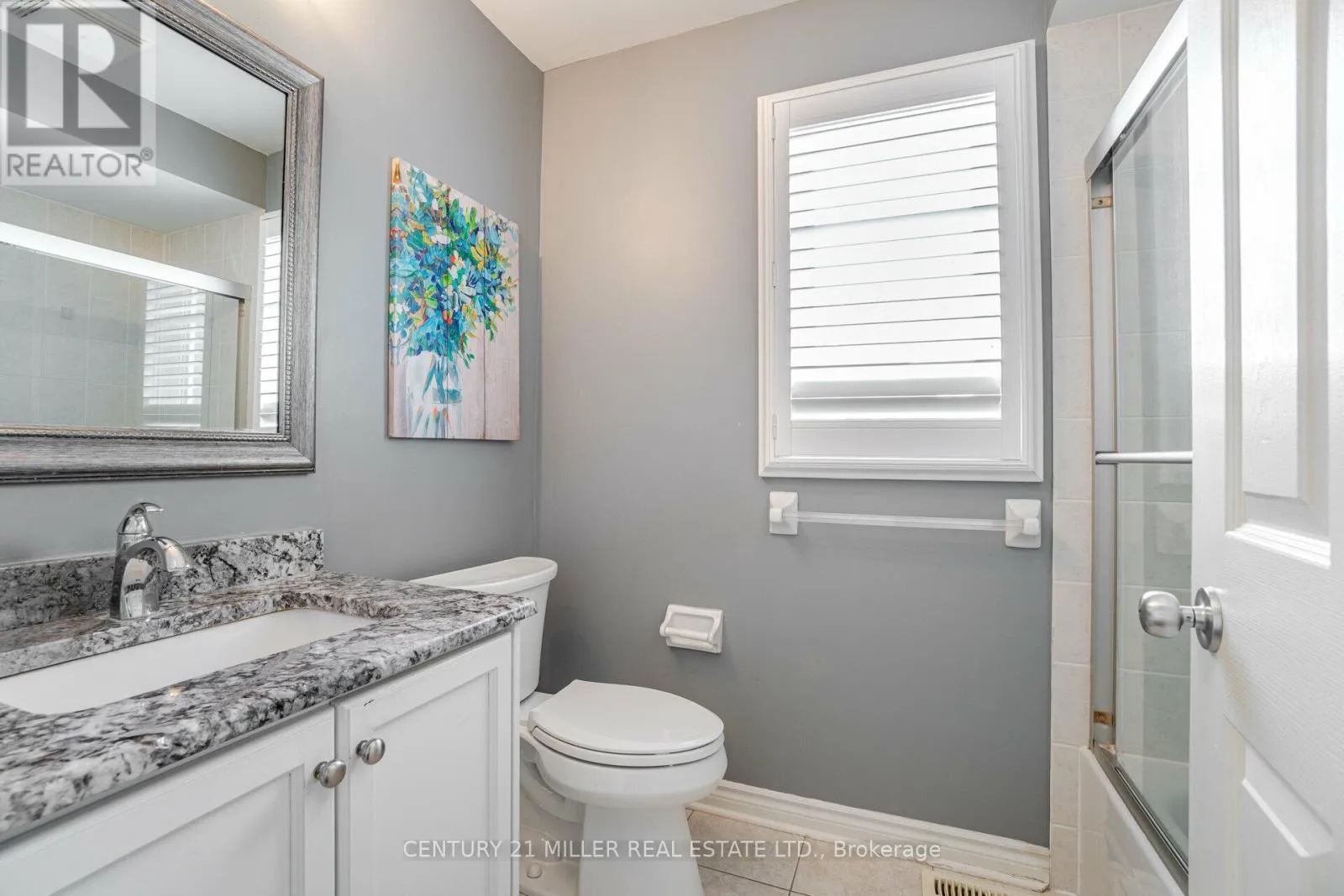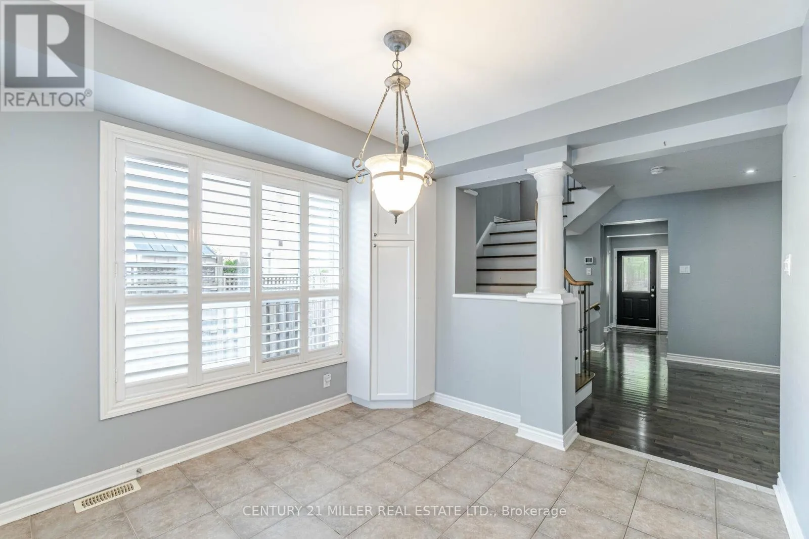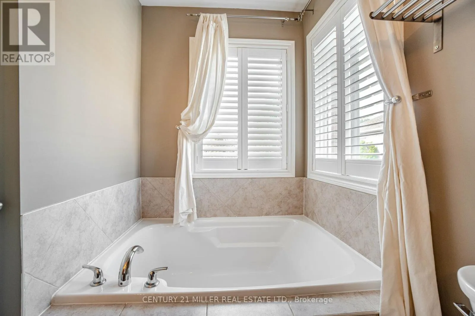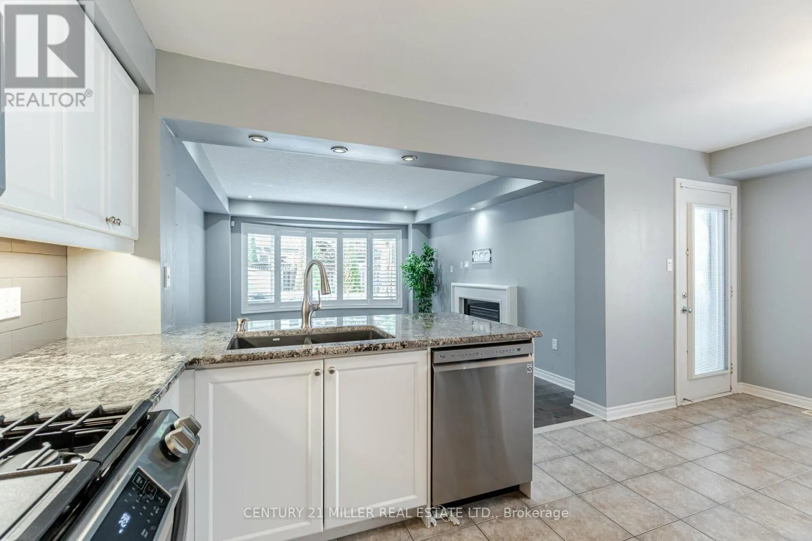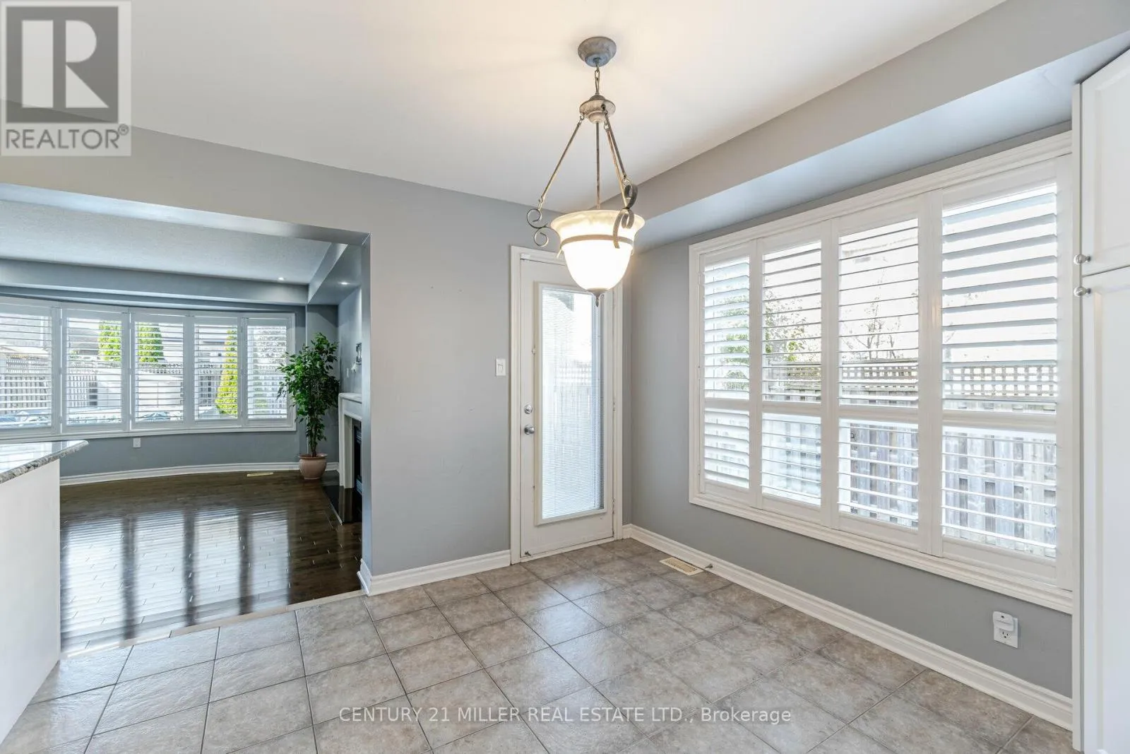 Boros Rd./Taywood Dr. Beautiful End Unit 3 Bed, 4 Bath Freehold Townhome in Prestigious Millcroft. Hardwood flooring and California shutters throughout. Separate dining room. Spacious eat-in kitchen features granite countertops, ample cabinetry, pot lights, under-mount lighting, ceramic tile flooring, and garden door walk-out to backyard. Bright open-concept living area with maple hardwood floors, gas fireplace, and bow window overlooking the backyard. Upper level offers hardwood flooring and iron picket staircase. Large primary bedroom with walk-in closet, second closet, and 4-pc ensuite with granite counter, separate shower, and soaker tub. Generous second and third bedrooms with neutral carpet and double closets. Second 4-pc bath with granite counter and tub/shower combo. Open loft/office space with skylight. Finished lower-level media room with neutral ceramic tile flooring.Close To Shopping, Parks, Highways And Fantastic Schools (id:27476)