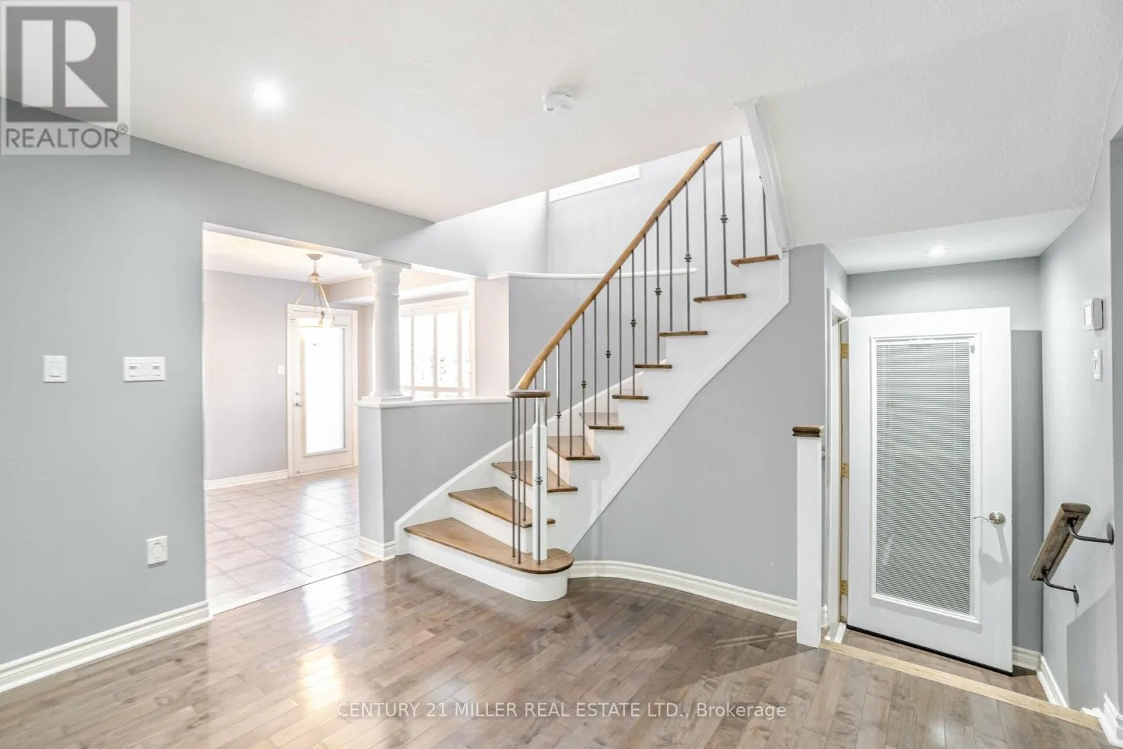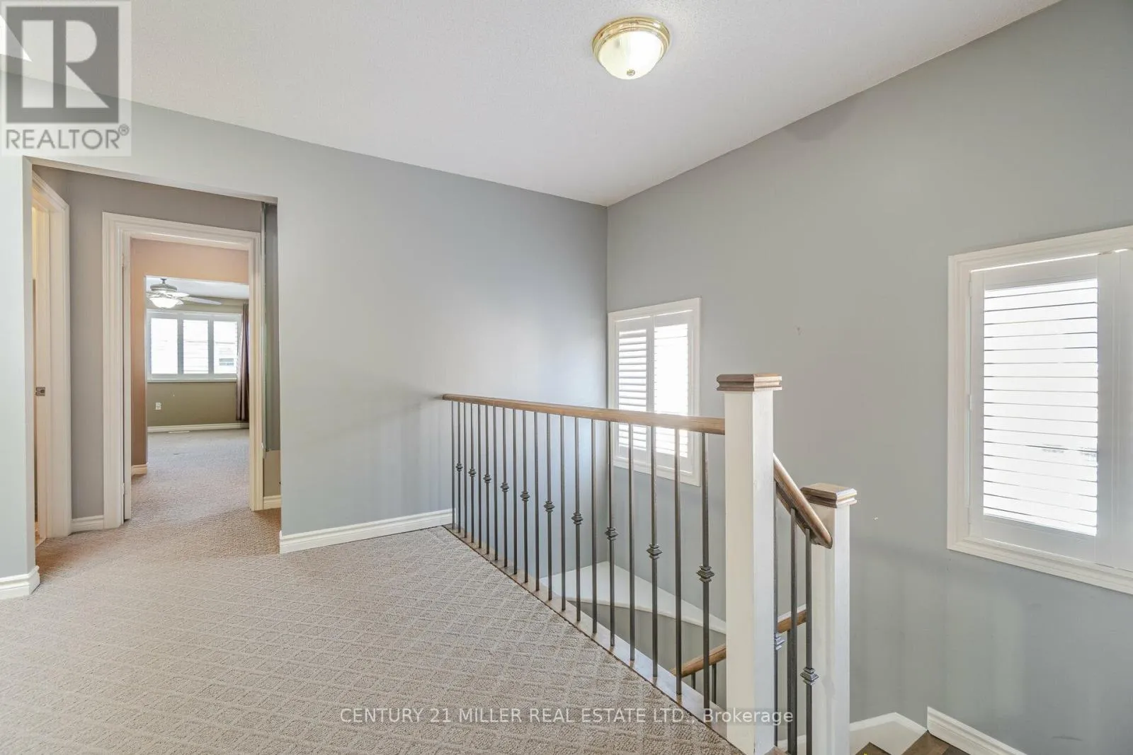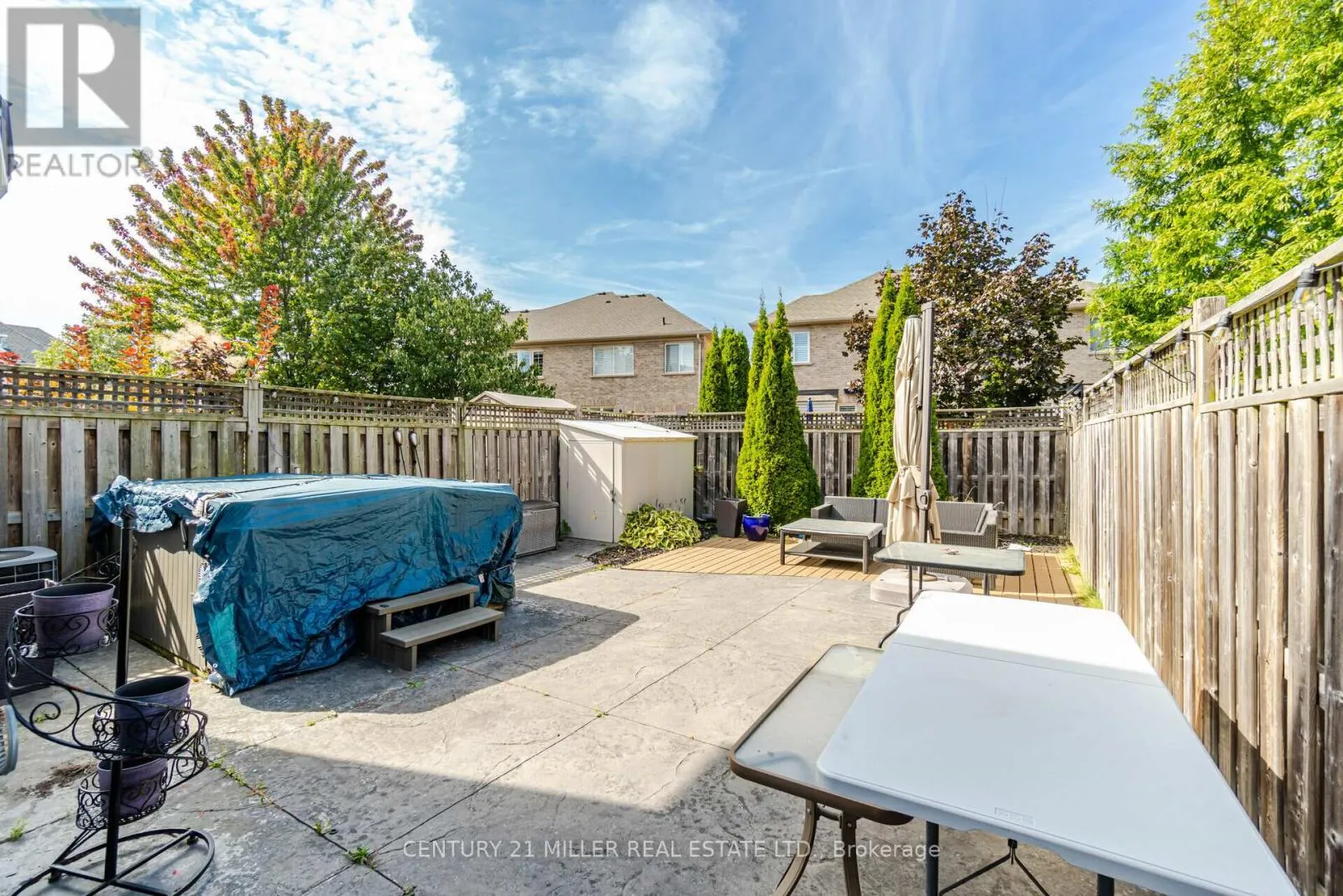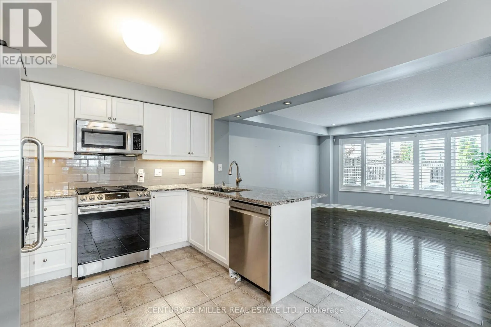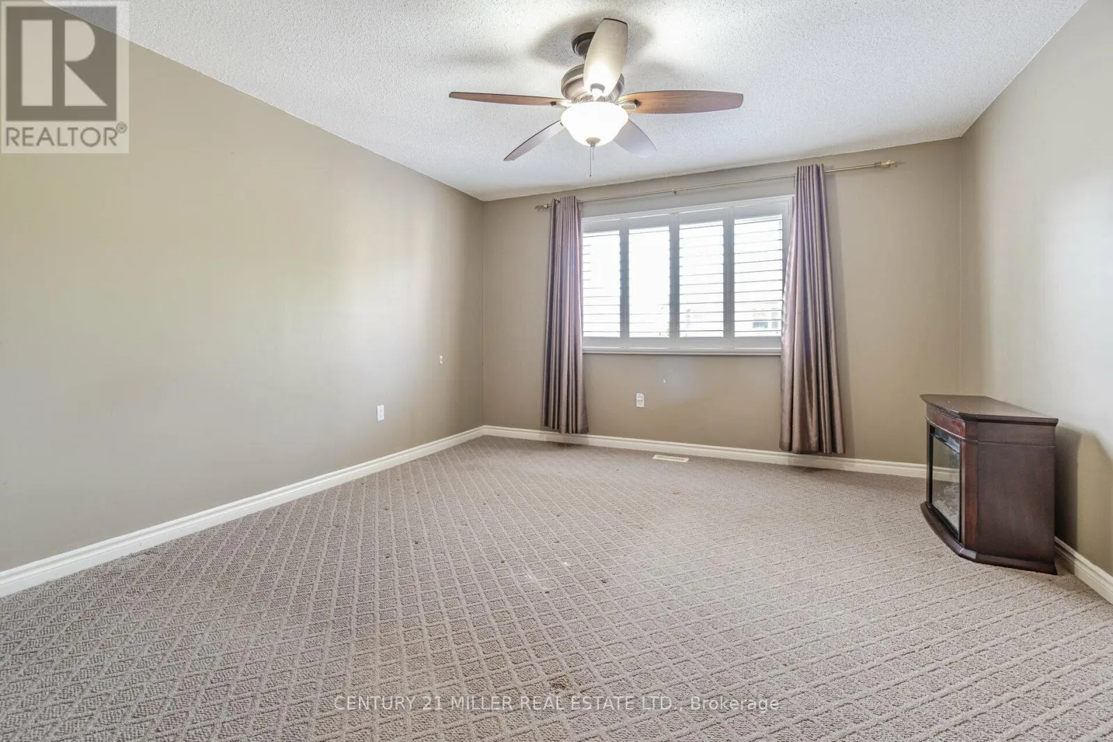 Boros Rd./Taywood Dr. Beautiful End Unit 3 Bed, 4 Bath Freehold Townhome in Prestigious Millcroft. Hardwood flooring and California shutters throughout. Separate dining room. Spacious eat-in kitchen features granite countertops, ample cabinetry, pot lights, under-mount lighting, ceramic tile flooring, and garden door walk-out to backyard. Bright open-concept living area with maple hardwood floors, gas fireplace, and bow window overlooking the backyard. Upper level offers hardwood flooring and iron picket staircase. Large primary bedroom with walk-in closet, second closet, and 4-pc ensuite with granite counter, separate shower, and soaker tub. Generous second and third bedrooms with neutral carpet and double closets. Second 4-pc bath with granite counter and tub/shower combo. Open loft/office space with skylight. Finished lower-level media room with neutral ceramic tile flooring.Close To Shopping, Parks, Highways And Fantastic Schools (id:27476)