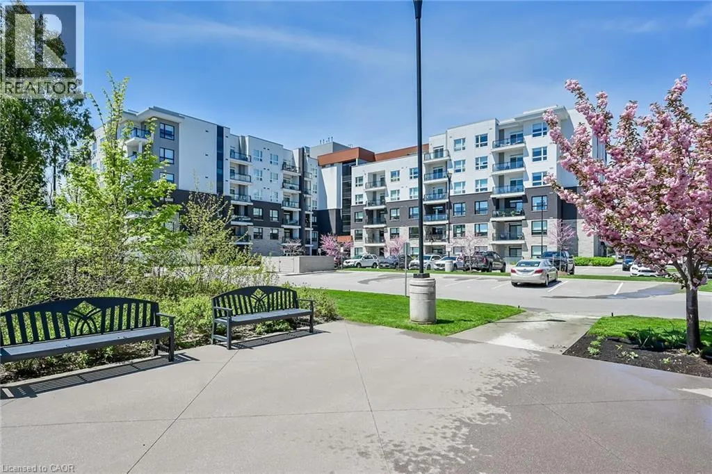 QEW to Plains Rd E in between King Road and Waterdown Rd, 5 minutes from Mapleview Mall and GO train Step into Affinity by RosehavenâAldershotâs stylish spot where convenience, comfort, and modern vibes live their best lives. Perfect for first-time buyers, downsizers, or anyone who's over the whole âcutting grass and shoveling snowâ thing. This 2-bed, 2-bath charmer serves up 900 sq. ft. of open-concept goodness, complete with a custom kitchen, Corian countertops, stainless steel appliances, and enough prep space to convince everyone you're absolutely starring in your own cooking show. Commuter? Youâll love the GO Station just minutes away. Foodie? Steps to restaurants. Shopaholic? Your walletâs trembling already. This building is not shy about amenitiesâthink gym, yoga studio, rooftop terrace with BBQs & fireplace, billiards, and a slick party room. Plus: elevator, same-floor locker, pet-friendly neighbors who will show you dog pics before you even ask. Whether youâre starting fresh or simplifying life, this condo wraps it all in one stylish, low-maintenance package. Your only job? Move in, kick back, and enjoy the vibes. (id:27476)