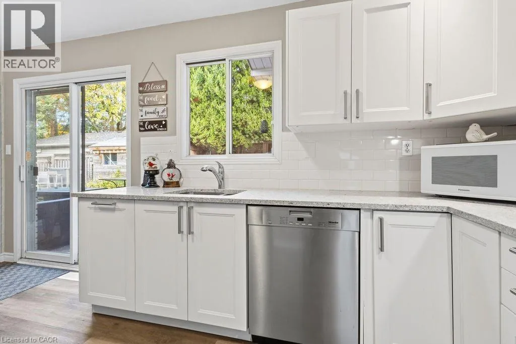 Lakeshore Road to Appleby Line to Spruce Avenue to Meadowhill Road to Cherryhill Crescent Multigenerational home for 2 families in South East Burlington, over 3,500 sq. ft. Separate entrances, 2 kitchens, privacy for 2 families, perfect for parents, adult children, togetherness. INLAW SUITE above ground 2 story townhouse. Total 6 bedrooms and 4.5 bathrooms. Backing onto private garden oasis and ravine with on ground pool. Lot 60 ft x 140 ft. A 4 level side split built in 1967, with 4 bedrooms and 2.5 bathrooms and crawl space. Kitchen has been refaced in 2024 with quartz counter, sink, taps and lighting. Kitchen has door and deck to the backyard with access to barbeque and concrete deck. Primary bedroom has huge closet with rare 4 piece en-suite bathroom. The other bedrooms can access the gorgeous renovated main bathroom with a floating soaker tub and separate glassed in shower. Family room in basement has 2 piece bathroom a workshop with bench and access to backyard walk up. The INLAW suite is attached to the back with 2 exit doors. The in-law suite is a 2 level townhouse style built in 1995, with large 2 bedrooms, 2 full bathrooms with windows looking over the trees. The kitchen is huge with white cabinets(2022) quartz counters, and complete newer laminate plank floors. Access door to insulated garage and mudroom with storage and washer dryer shared to both houses. A sliding glass door to gorgeous backyard and pool (liner 2025), patio with decks 2020, roof 2017. Hot tub is as is condition. There are 3 fireplaces, wood, gas and electric. Ideal for home business or in-law set up. Your dream has come true, looking for a two family home. You have found it! (id:27476)