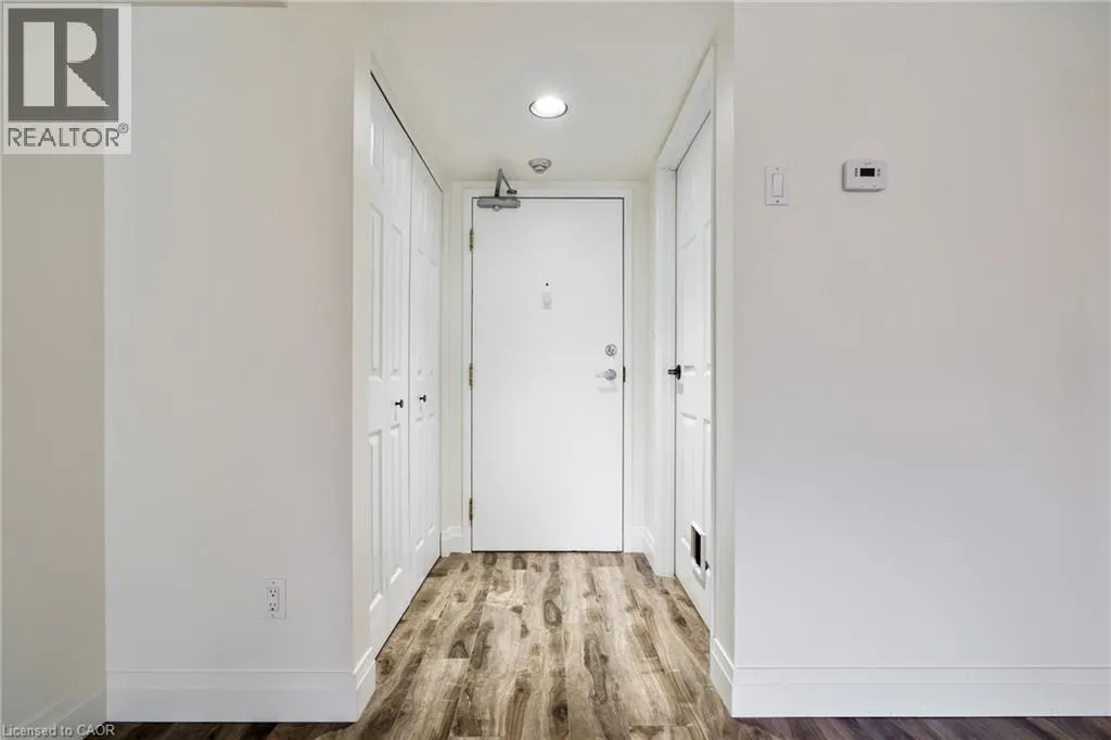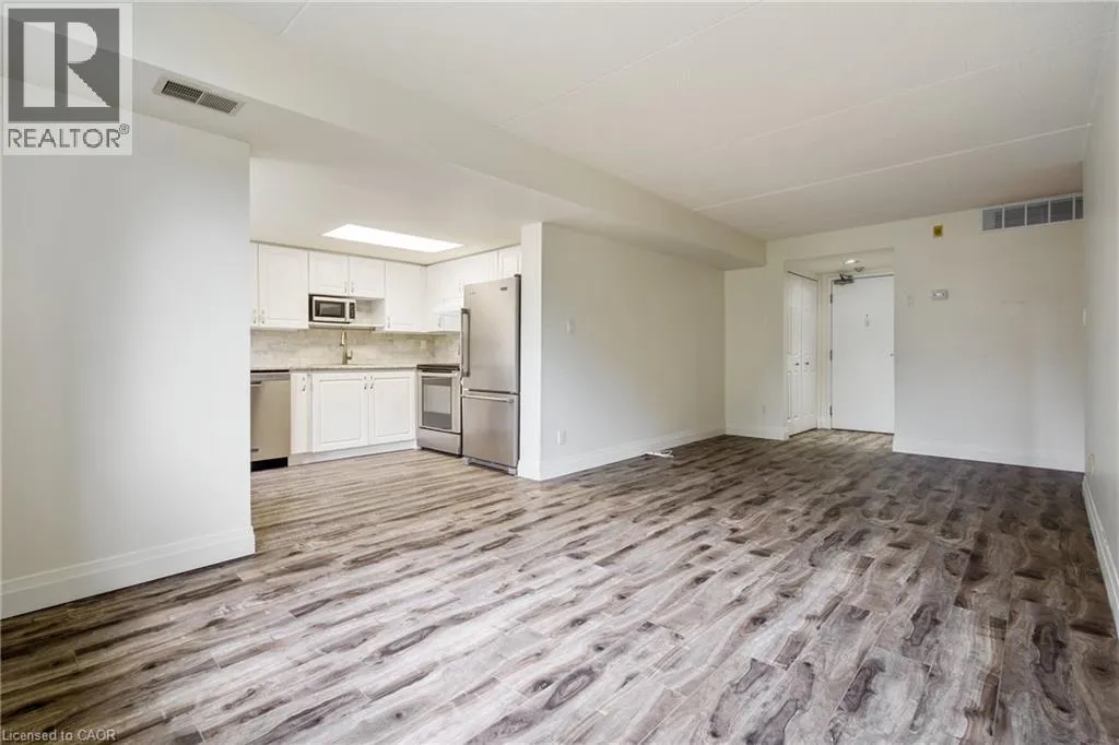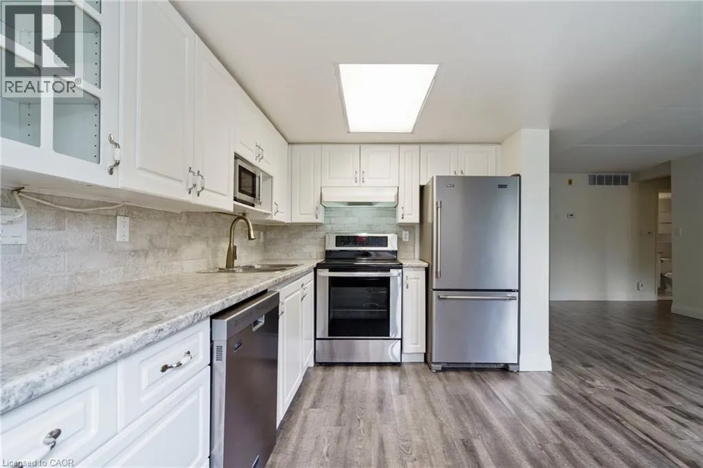 From Walkers Line turn West onto Upper Middle Rd *** NO CONDO FEES FOR SIX MONTHS ... Vendor offering maintenance fees paid up front .*** An excellent opportunity to own in the well-established Walker's Square community, this beautifully maintained 1-bedroom, 1-bath condo offers a lifestyle defined by ease, comfort, and convenience. Sun-filled and thoughtfully laid out, the open-concept design features a generous living area alongside a functional eat-in kitchen with abundant white cabinetry and stainless-steel appliances. The spacious primary bedroom is paired with a full 4-piece bathroom and the added benefit of in-suite laundry for everyday ease. Enjoy your morning coffee or evening wind-down on the private balcony, overlooking mature trees and meticulously maintained grounds that create a peaceful, park-like atmosphere. Residents benefit from a smoke-free, impeccably managed building that delivers a quiet, worry-free living experience, complete with exclusive underground parking and a locker conveniently located on the same level as the suite. Impressive on-site amenities include a fitness centre, party room, car wash station, and a community patio with BBQ area-perfect for entertaining or connecting with neighbours. With shopping, transit, and daily necessities just steps away, plus quick access to the 403, QEW, and GO Station, this is affordable, low-maintenance living in a location that truly delivers. Some photos have been virtually staged. (id:27476)