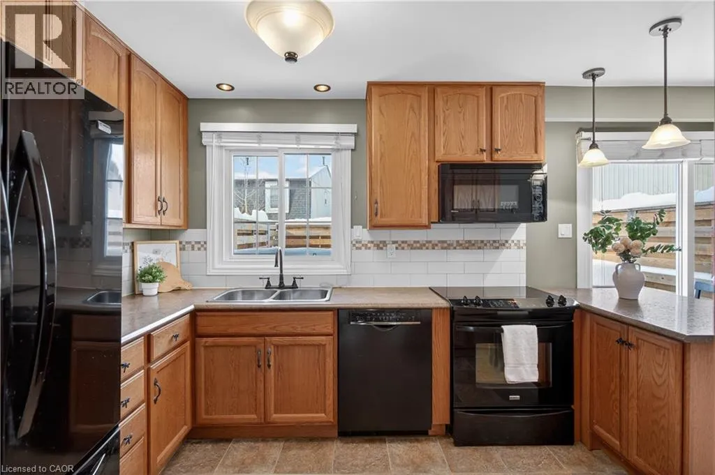 Welcome to a beautifully maintained south-facing condo townhouse in one of Burlingtonâs most convenient and sought-after pockets. Perfectly positioned in a great South-Central location, this home places you moments from Burlington Mall, Roseland Plaza, and just a short drive to Spencer Smith Park and the vibrant downtown waterfront of Spencer Smith Park. Public transit is right at the corner, making commuting effortless. Step inside to a bright, sun-filled living room thanks to the desirable southern exposure. A separate dining room offers an ideal setting for family meals or entertaining. The spacious eat-in kitchen features abundant cabinetry, a breakfast bar, and a walk-out to a newly fenced private yard â perfect for morning coffee or summer BBQs. Upstairs, youâll find three generous bedrooms, including an oversized primary suite complete with a walk-in closet and a convenient 2-piece ensuite. The lower level adds even more versatility with a cozy family room â great as a kidsâ zone, hobby space, or media room. From here, enjoy direct walk-out access to the underground parking garage, where two parking spaces sit right at your basement door. Just steps from your backyard, residents can enjoy a refreshing inground pool. This is truly a canât-miss location offering comfort, convenience, and exceptional value. (id:27476)