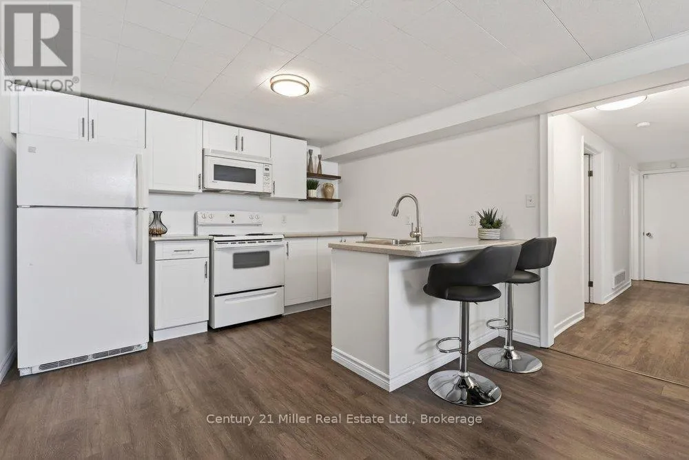 Cross Streets: Brant St & Mt Forest Dr. ** Directions: Brant - Bluefields - Meadowbrook - Jefferson. Well maintained 1 bedroom apartment in sought after Mountainside community close to rec centres with pool, parks & schools. This unit features luxury vinyl flooring throughout (no carpets), large windows allowing for tons of natural light, an open concept living/family room area with kitchen, bedroom, laundry room, 3-piece bath, and a separate entrance at the rear of the house. No smoking, No pets. Utilities and one parking space plus separate laundry are included. (id:27476)