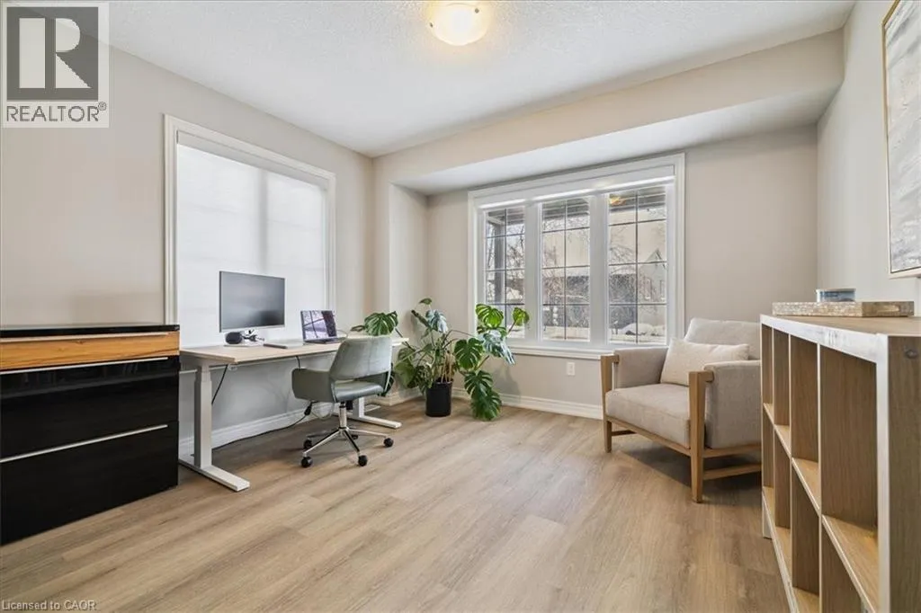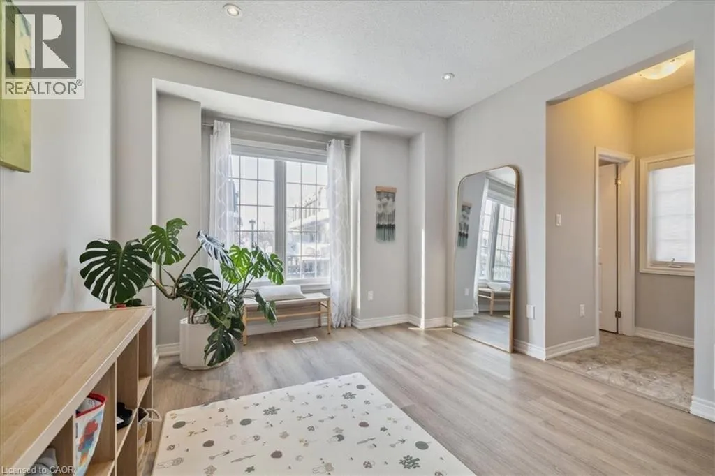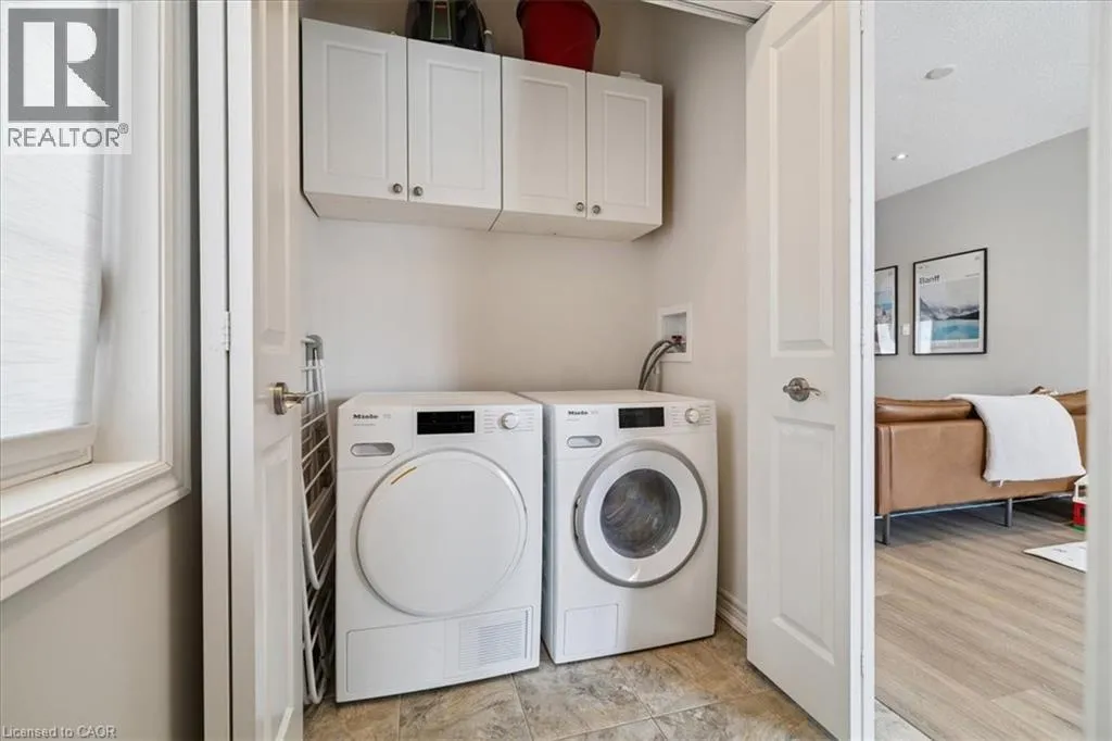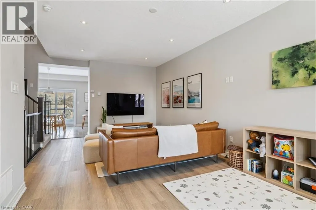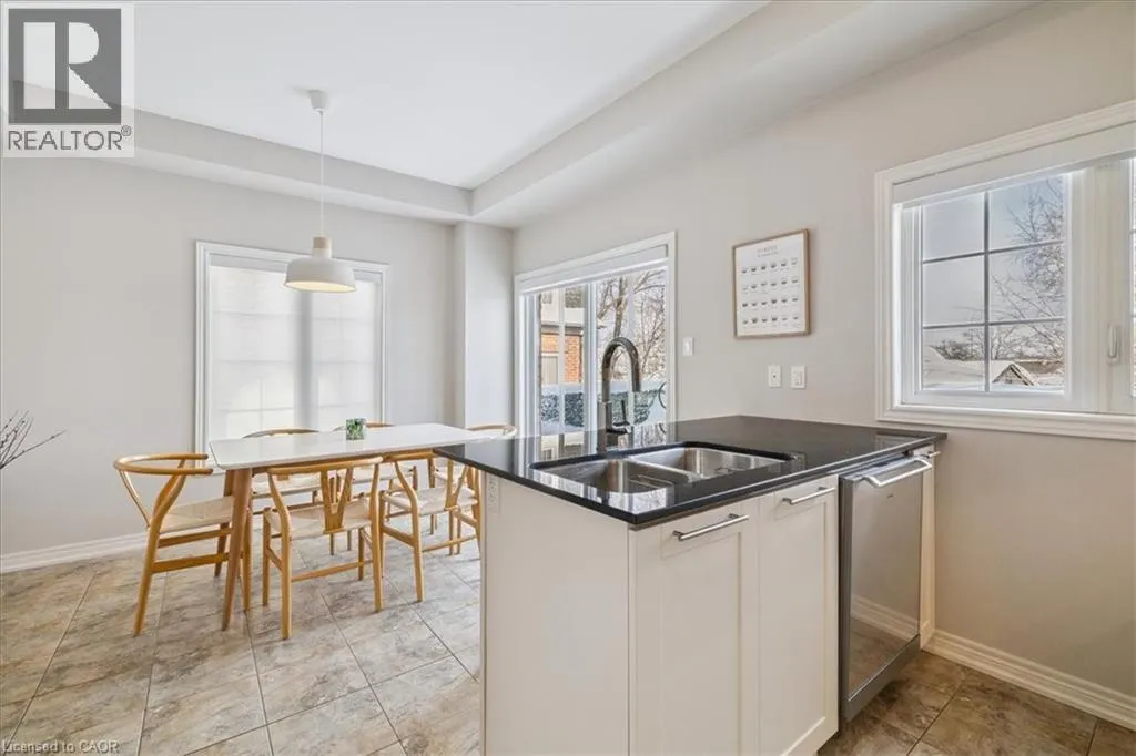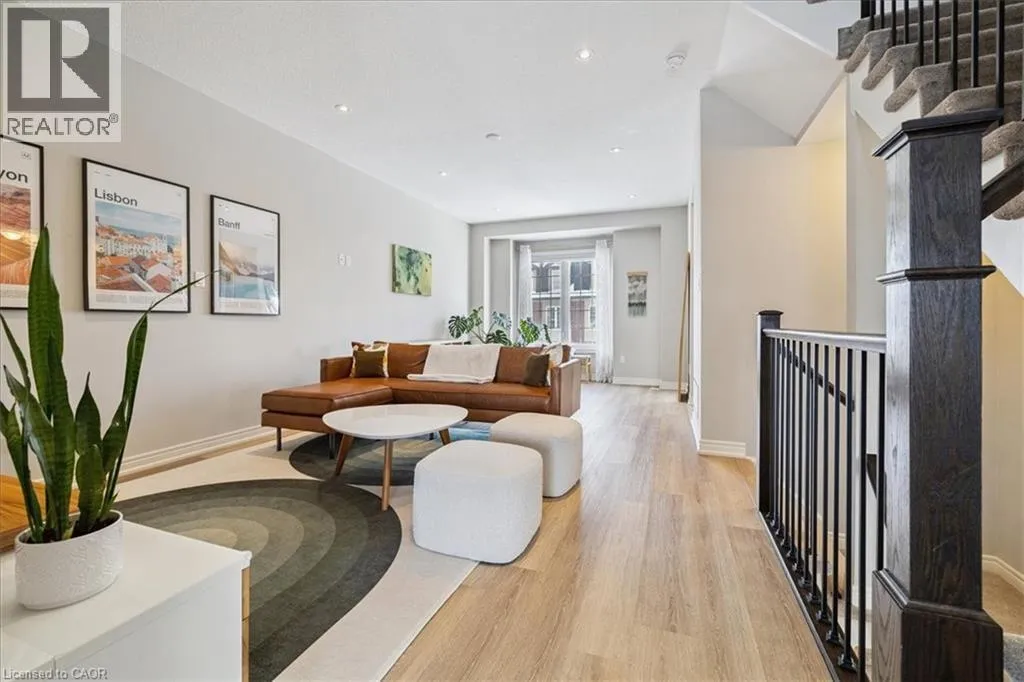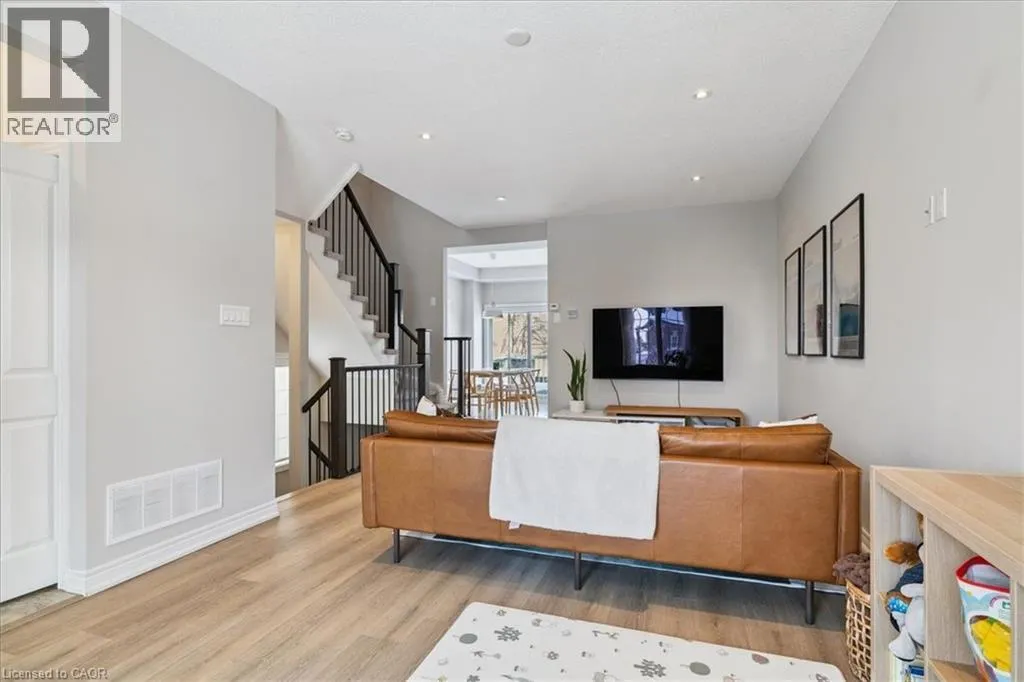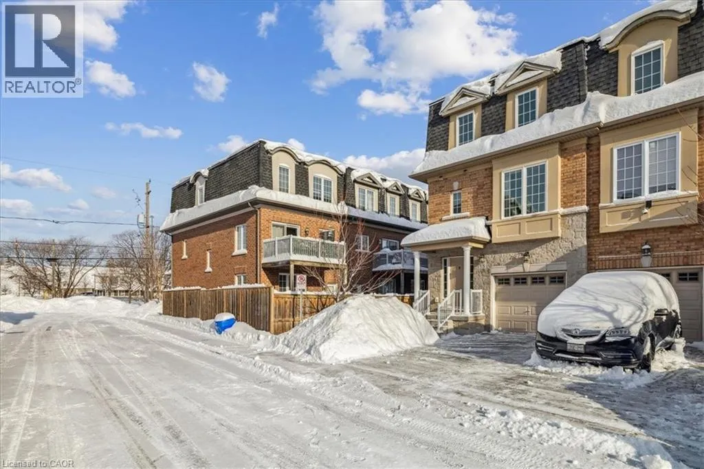 Queensway & Guelph Line Welcome to this stunning 3-bedroom, 3-bath semi-detached townhouse located in one of Burlingtonâs most desirable neighbourhoods. The open-concept main level is highlighted by soaring ceilings and stylish pot lighting, creating a bright and inviting living space. Enjoy the ease of main-floor laundry and a beautifully upgraded kitchen featuring quartz countertops, stainless steel appliances, and a sunny breakfast area with a walk-out to a private balcony overlooking the fully fenced backyard. Condo fee also includes front and back lawn care. The spacious primary bedroom has a 4-piece ensuite and double closet, providing a comfortable retreat. The unfinished basement presents endless possibilities â ideal for storage now or future development into the recreation room youâve always wanted. Upgrades: Custom blinds installed 2022. Miele Washer & Dryer (2022), Frigidaire fridge (2025), Gaggenau Dishwasher (2022) Extras: Ideally situated near schools, parks, shopping, dining, entertainment, grocery stores, and quick access to Hwy 403. Just a 10-minute walk to Burlington GO Station. A must-see home â donât miss your opportunity! (id:27476)