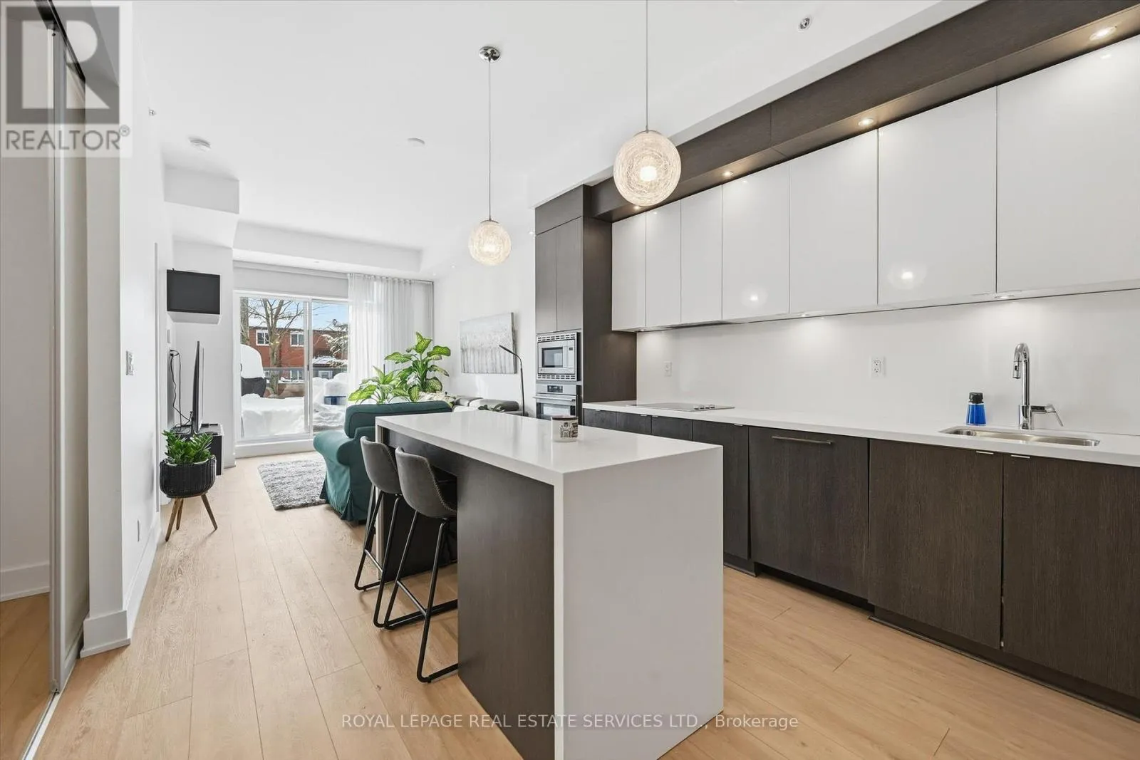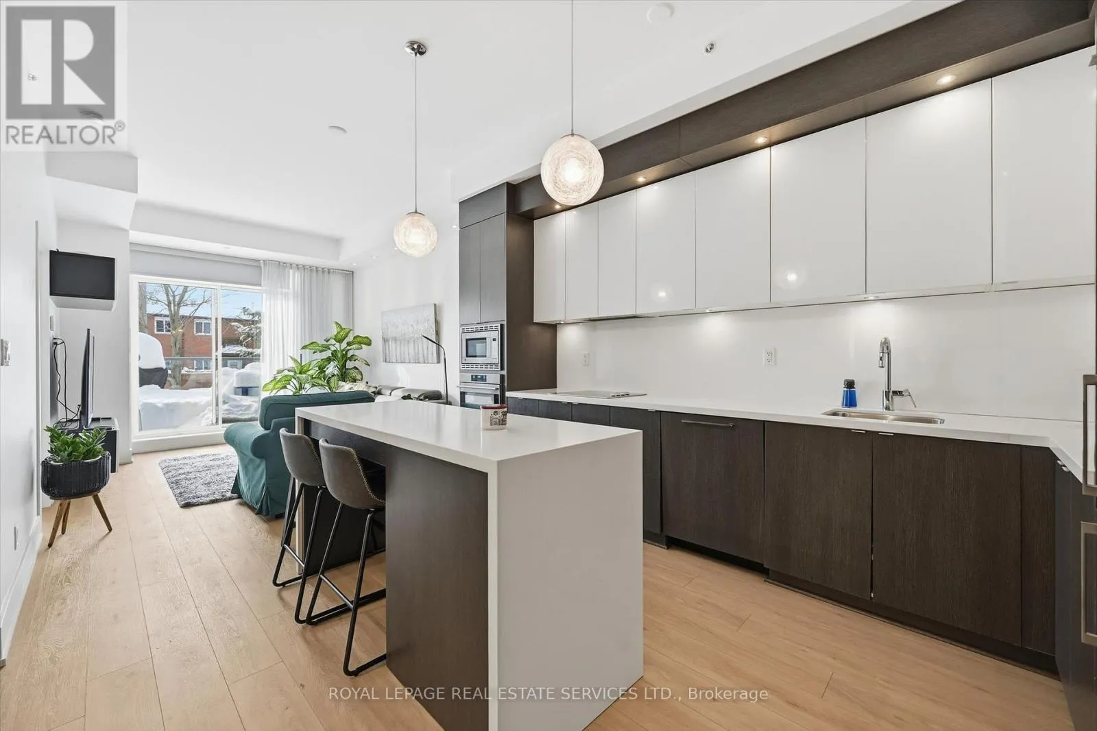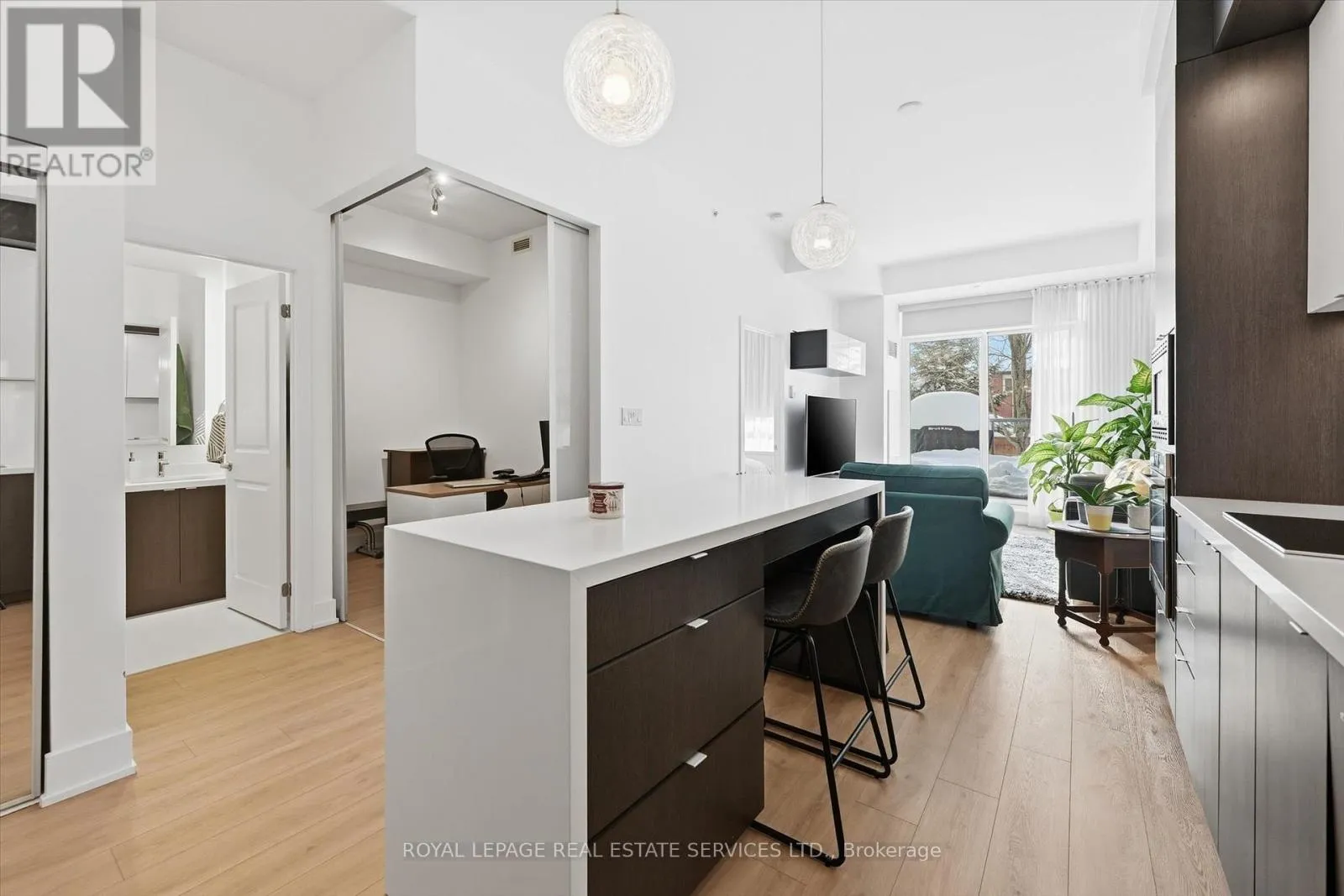 Cross Streets: Guelph Line AND Mainway. ** Directions: West side of Guelph Line - north of Mainway. BOUTIQUE FOUR-STOREY CONDOMINIUM! STYLISH ONE BEDROOM PLUS DEN! Welcome to this beautifully appointed one bedroom plus den suite offering 10' ceilings, wide-plank luxury vinyl flooring, and a thoughtfully designed open concept layout ideal for modern living and entertaining. The living area seamlessly extends to an impressive 21' x 12' private terrace with sleek glass panels creating an exceptional indoor-outdoor lifestyle. The contemporary kitchen is both stylish and functional, featuring granite countertops, an abundance of cabinetry, integrated appliances, and a generous island with seating for four. A spacious primary bedroom, versatile den perfect for a home office or guest space, a spa-inspired four-piece bathroom, and in-suite laundry completes the space. Two side-by-side parking spaces conveniently located near the elevator and a dedicated storage locker are included. The monthly condominium fee of $684.23 covers building insurance, common elements, heat, central air conditioning, water, and parking. Residents of the desirable Mod'rn Condominium enjoy exceptional amenities, including a party room with fireplace and full kitchen, rooftop patio with BBQ's, dining and lounge areas, and visitor parking. Ideally situated close to parks, shopping, restaurants, entertainment, Burlington Centre, and vibrant downtown Burlington. A commuter's dream with easy access to public transit, major highways and the GO Train. An exceptional Burlington location, perfectly positioned for today's urban lifestyle. (id:27476)