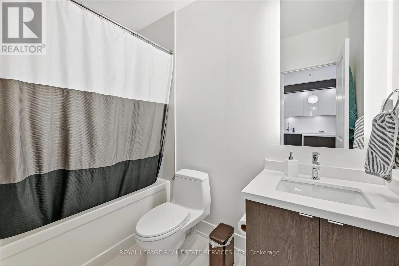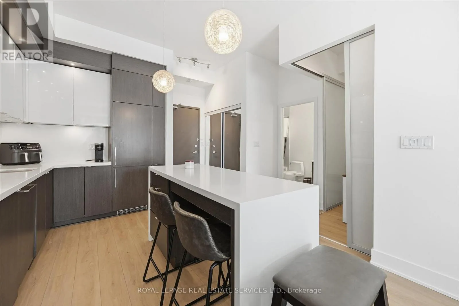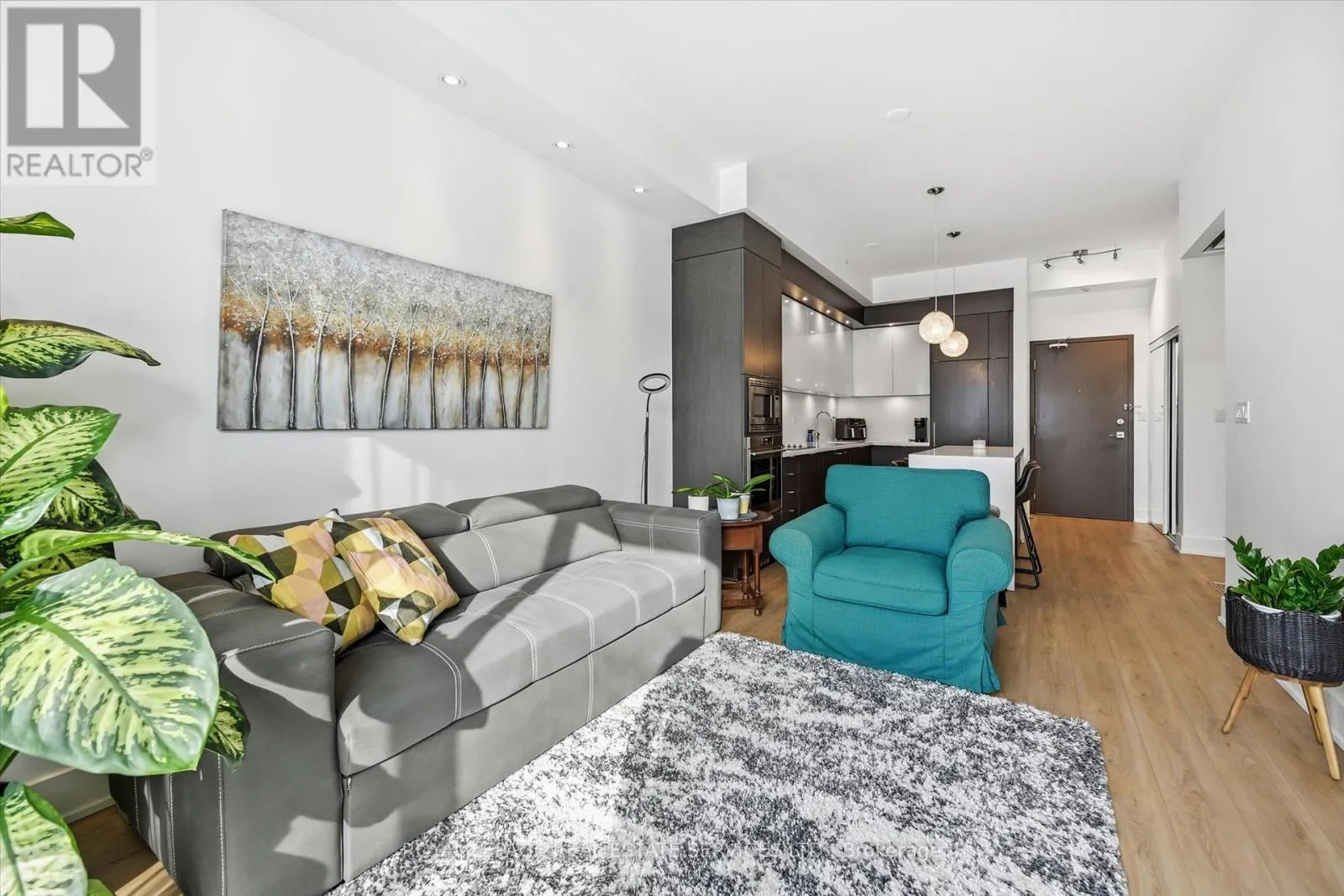 Cross Streets: Guelph Line AND Mainway. ** Directions: West side of Guelph Line - north of Mainway. BOUTIQUE FOUR-STOREY CONDOMINIUM! STYLISH ONE BEDROOM PLUS DEN! Welcome to this beautifully appointed one bedroom plus den suite offering 10' ceilings, wide-plank luxury vinyl flooring, and a thoughtfully designed open concept layout ideal for modern living and entertaining. The living area seamlessly extends to an impressive 21' x 12' private terrace with sleek glass panels creating an exceptional indoor-outdoor lifestyle. The contemporary kitchen is both stylish and functional, featuring granite countertops, an abundance of cabinetry, integrated appliances, and a generous island with seating for four. A spacious primary bedroom, versatile den perfect for a home office or guest space, a spa-inspired four-piece bathroom, and in-suite laundry completes the space. Two side-by-side parking spaces conveniently located near the elevator and a dedicated storage locker are included. The monthly condominium fee of $684.23 covers building insurance, common elements, heat, central air conditioning, water, and parking. Residents of the desirable Mod'rn Condominium enjoy exceptional amenities, including a party room with fireplace and full kitchen, rooftop patio with BBQ's, dining and lounge areas, and visitor parking. Ideally situated close to parks, shopping, restaurants, entertainment, Burlington Centre, and vibrant downtown Burlington. A commuter's dream with easy access to public transit, major highways and the GO Train. An exceptional Burlington location, perfectly positioned for today's urban lifestyle. (id:27476)