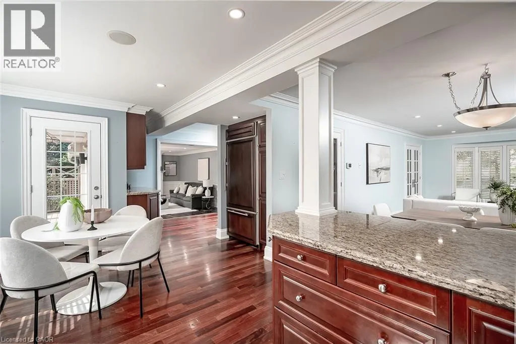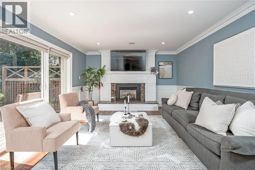 Guelph Line to Lakeshore Rd STEPS FROM THE LAKE WITH INCREDIBLE WATER VIEWS THROUGHOUT! This 4+1 bedroom, 3.5 bath 2 storey home is situated on the south side of Lakeshore Road and is beautifully appointed throughout. The home is approximately 2400 square feet PLUS a finished lower level. The main floor boasts beautiful hardwood flooring, smooth ceilings with pot-lights and crown moulding throughout. The large updated eat-in kitchen includes a large peninsula, quality cabinetry, granite counters, a pantry, wine room and stainless-steel appliances! The kitchen is also open to the oversized family room with a gas fireplace and access to the private backyard with stunning views of the lake. The main floor features a large living / dining room combination with a second gas fireplace, powder room and garage access. The second level of the home includes 3 large bedrooms PLUS an oversized office / den with a private balcony and two full bathrooms. The primary bedroom includes a walk-in closet and a stunning 4-piece ensuite with heated flooring. The lower level has a large rec room, 3-piece bath, bedroom, laundry room and ample storage! The exterior has been professionally landscaped and features a private yard with a large composite deck, great curb appeal and a double driveway with parking for 4 vehicles as well as a double car garage! This home is conveniently located close to all amenities and walking distance to Burlington's core and all it has to offer! Beautiful lake viewing area at the end of the street to enjoy all the spectacular sunsets up close! (id:27476)