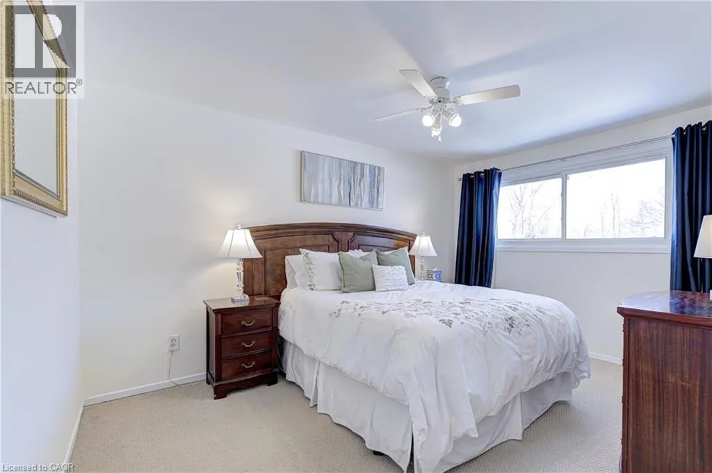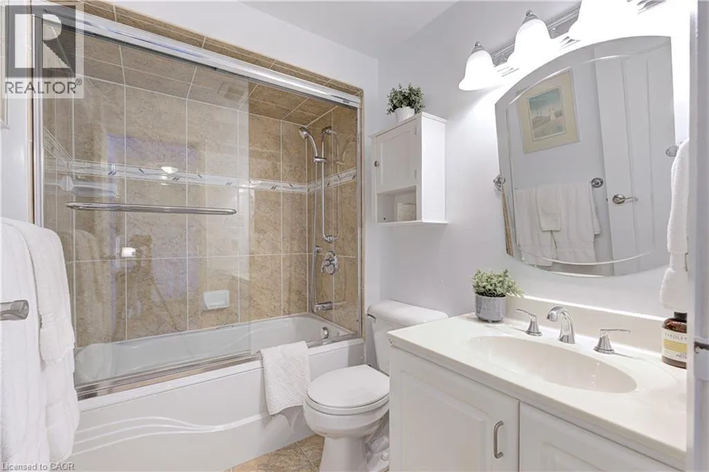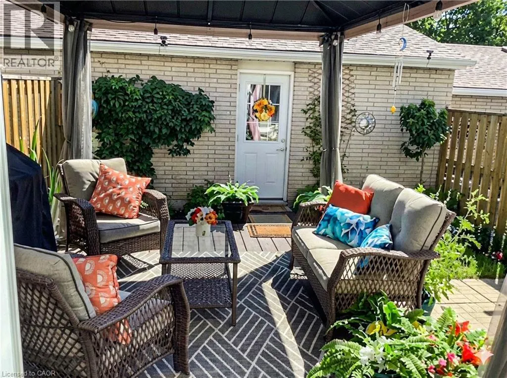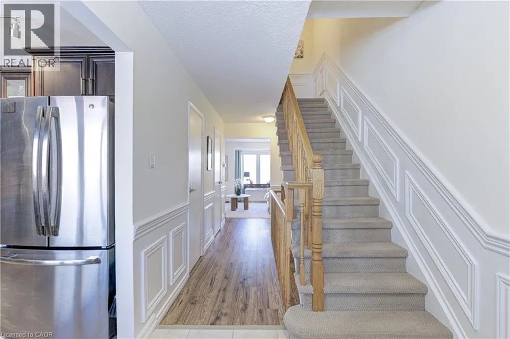 Upper Middle Rd & Brant St Welcome to Forest Heights - a rarely offered townhome with a private double-car garage, quietly tucked into a serene enclave of architecturally distinctive homes in Burlington's sought-after Brant Hills neighbourhood. Ideal for first-time buyers or empty nesters, this home delivers the perfect balance of low-maintenance living and everyday comfort. Step inside to a sun-filled kitchen featuring gleaming counters, a stainless-steel induction stove (2023) and new stainless-steel dishwasher (2025) - a welcoming space for both daily living and entertaining. The adjacent living room invites cozy evenings by the fireplace, complemented by a stylish custom mantel installed in 2024. The dining room offers a seamless walk-out to a newer composite deck complete with gazebo, lighting, and gas BBQ hookup - perfect for relaxed summer dinners and weekend gatherings. Surrounded by garden space, the fully fenced backyard is ideal for gardeners and outdoor enthusiasts alike and provides direct access to your private double garage. Upstairs, you'll find three generously sized bedrooms and two full bathrooms, including a spacious primary retreat with a recently updated ensuite featuring a new vanity and quartz countertops. The lower level adds even more versatility with a large recreation room, and a thoughtfully designed laundry area and a built-in folding table, plus a sizeable finished storage room. Enjoy resort-style living with access to the indoor pool, or host celebrations in the recently updated party room (2023). This is a home that truly offers comfort, convenience, and community - an exceptional opportunity in one of Burlington's most established neighbourhoods. Condo fees include: windows, doors and roof are included in exterior maintenance, water, cable ,common elements, building insurance, parking, snow removal, lawn maintenance. (id:27476)