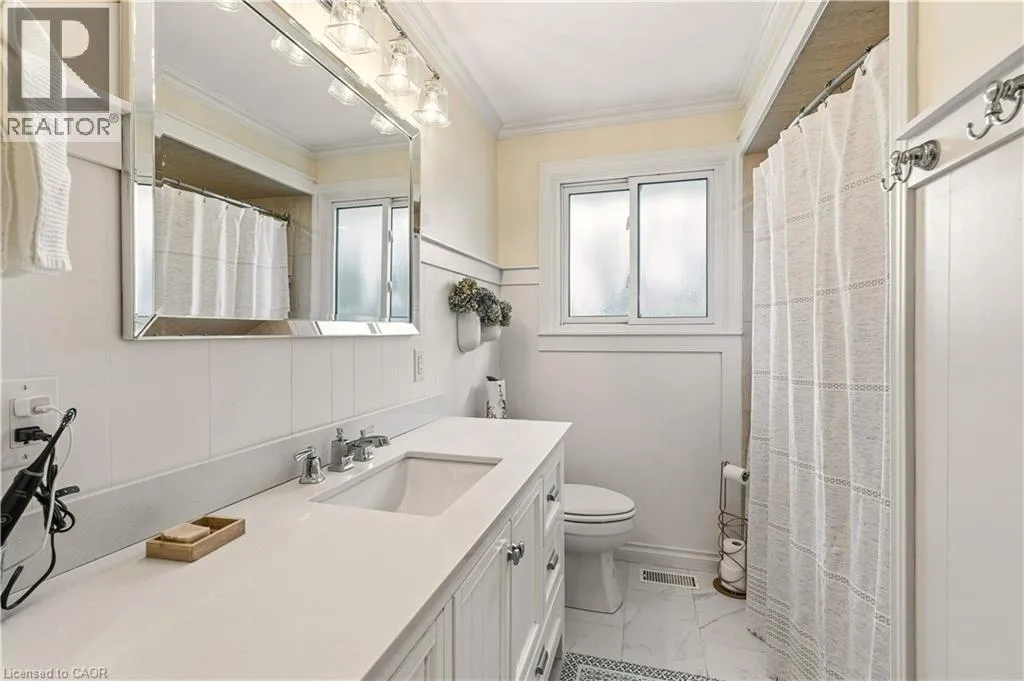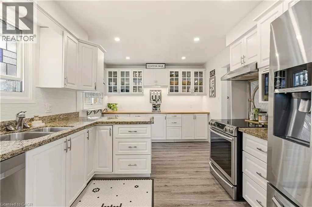 Walkers or Cumberland to Rexway, Letitia to Lani Welcome to this beautifully maintained home in South Burlington situated on a family friendly quiet crescent where properties rarely come up for sale. This well kept raised bungalow features hardwood floors, updated kitchen, three bedrooms, and two bathrooms. The lower level offers a bright family room with gas fireplace and above grade windows, plus a versatile recreation room that could easily serve as a 4th bedroom or home office. The mature yard includes a 15 foot swim spa/hot tub, perfect for summer relaxation and entertaining. Ideally located within walking distance to schools, shopping and just minutes to the Go station. Pride of ownership is evident throughout. Truly a pleasure to view. (id:27476)