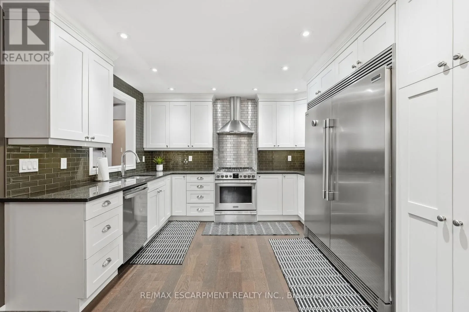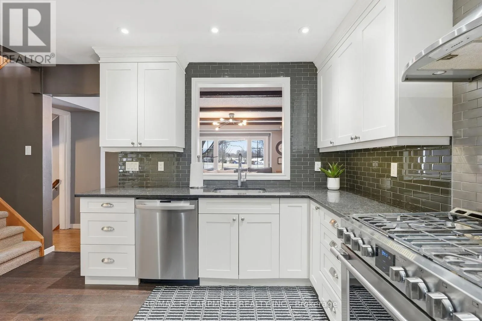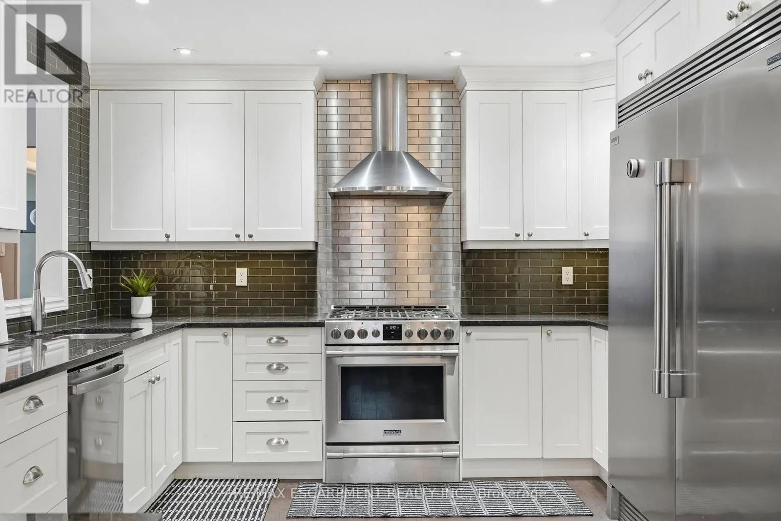 Cross Streets: Mt Forest Dr. ** Directions: Brant St to Mt Forest Dr to Mountainside Dr. Tucked into a sought-after community, this deceptively spacious 1,881 square foot home offers far more than meets the eye, blending thoughtful updates with exceptional indoor & outdoor living. The main level features an updated kitchen with granite countertops & a column fridge & freezer overlooking the living room, along with a separate office, 2 bedrooms & convenient main level laundry. A bright family room addition with a cozy gas fireplace looks out over the impressively deep 136' backyard, which feels like a private, forest-like retreat thanks to its sunken setting, very mature maple trees & no residential neighbours behind. The yard is equipped with front & back irrigation, a gas line for a BBQ & an Arctic Ocean saltwater swim spa controlled from your phone. Upstairs, the primary bedroom offers a walk-in closet & private 2 piece ensuite, complemented by an upper-level great room with vaulted ceilings ideal as a retreat or flexible living space. The walk-out finished basement adds valuable versatility with a rec room, bedroom, 3 piece bathroom & workshop and opens to a covered porch, while the living driveway leads to a detached, climate-controlled garage currently set up for 1 vehicle but easily convertible to 2. Ideally located within walking distance to shopping, restaurants, schools & parks, with public transit nearby, quick highway access & just minutes to the GO station, this home delivers an exceptional combination of space, comfort & lifestyle. RSA. (id:27476)