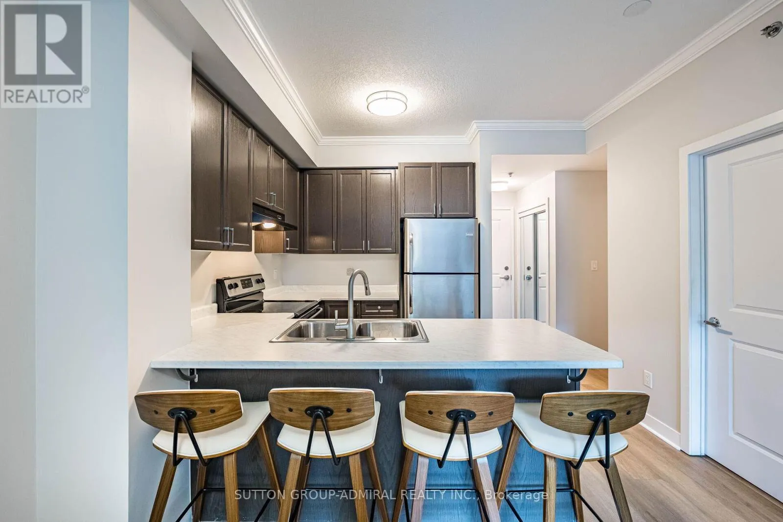 Upper Middle And Appleby Line Welcome to The Haven Your Perfect Ground-Floor Retreat! Step into this beautifully maintained, move-in-ready 1-bedroom + den condo featuring soaring 9-foot ceilings and a walkout to your own private patio. This unit includes parking and a locker for added convenience. Enjoy a modern open-concept kitchen with ample cabinet and counter space ideal for cooking and entertaining. One of the best 1+den layouts in the building, offering a spacious den that can easily function as a home office, dining area, or kids playroom. The primary bedroom is generously sized and features a walk-in closet. Recent upgrades include new flooring throughout, and the ensuite laundry has been thoughtfully recessed to create extra in-unit storage. Plus, your locker unit is conveniently located on the same floor, just down the hallway. Situated just steps from Bronte Creek Provincial Park, you'll have access to scenic trails and green spaces. Commuters will love the easy access to QEW, Appleby GO Station, and Highway 407. (id:27476)