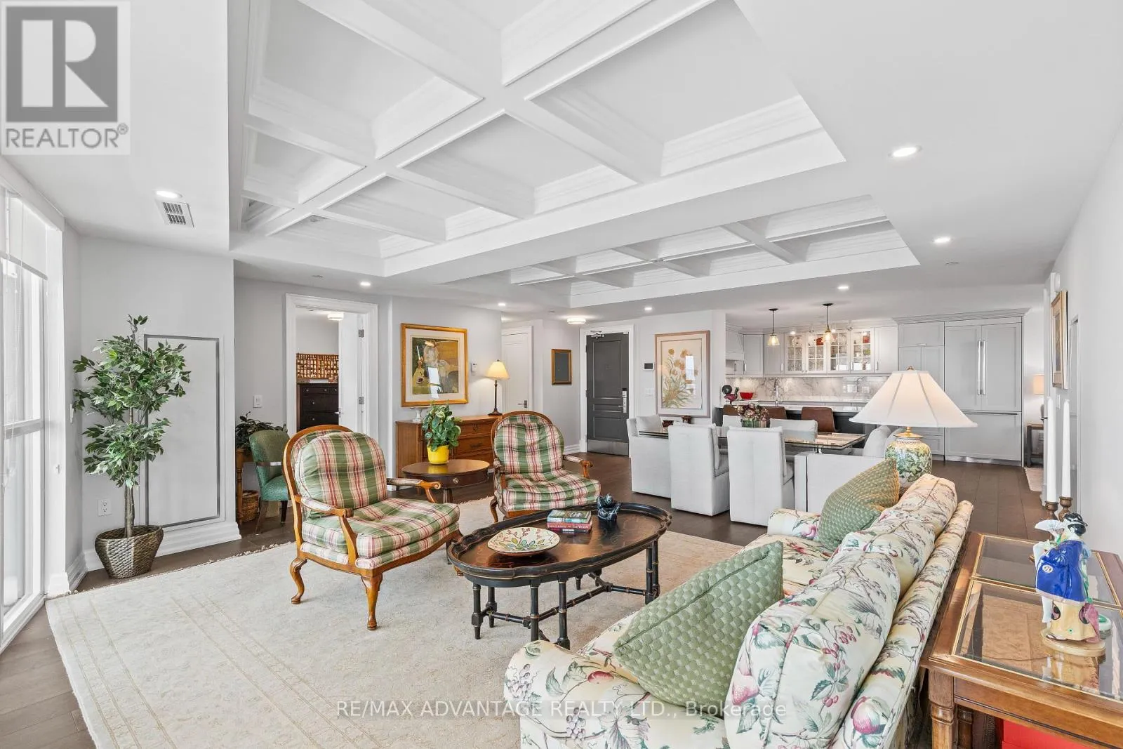 Pearl Street Enjoy luxury living at Bridgewater Private Residences on the lake in downtown Burlington. This 1571 square foot, 2 bedroom plus den corner suite has two private balconies, one with a gas line for a barbecue. The spacious living room and dining room feature a custom coffered ceiling and floor to ceiling windows overlooking sweeping views of Lake Ontario and the Burlington-Toronto skyline. The kitchen is equipped with Thermidor appliances, a large island and upgraded cabinetry, countertops and backsplash. The master bedroom offers a walk-in-closet and a spacious bathroom with heated floors. The comfortable den, the second bedroom and bathroom, a spacious utility cupboard, and in suite laundry facility complete the unit. Also included are 2 parking spaces and a storage locker. Residents enjoy many amenities including a large 8th floor terrace with barbecues, two fitness centres, an indoor pool and spa, bike storage, valet visitor parking, a large party room with billiards and a piano, monthly social events, and direct access to the Pearle Hotel, Isabelle restaurant, and Pearle Café. Bridgewater Private Residences offers downtown living on the lake, combined with convenient access to highways and Burlington GO facilities, the perfect blend of elegance and convenience. (id:27476)