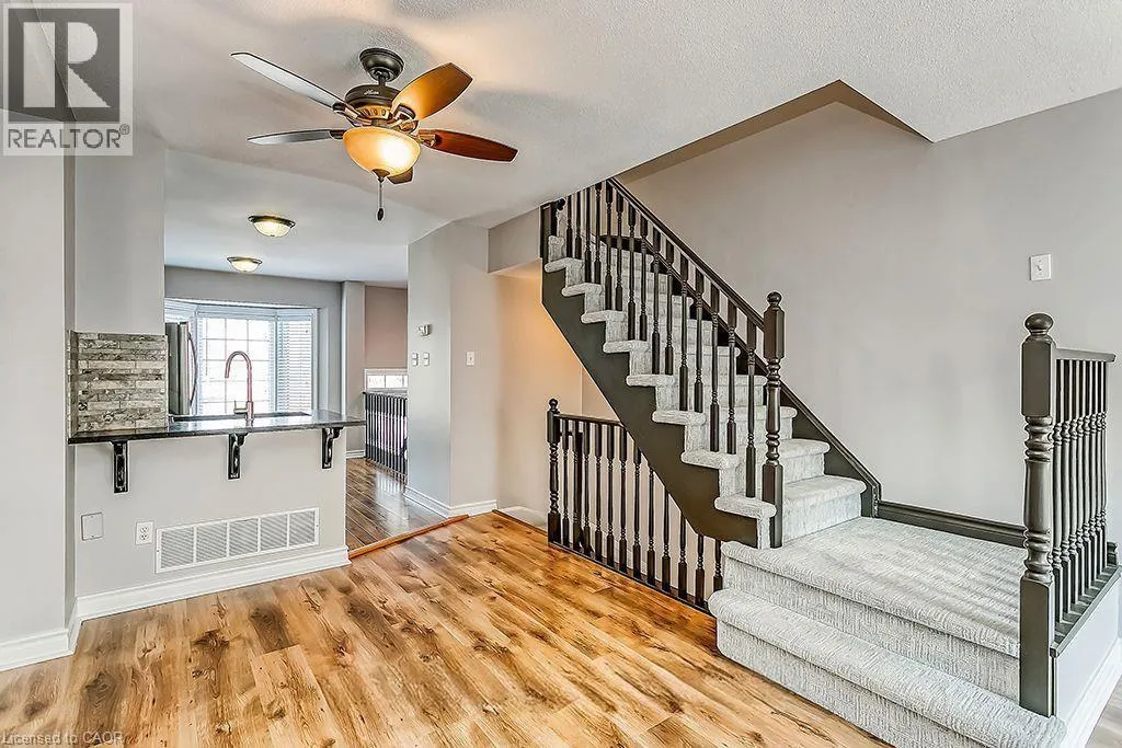 Walkers Line to Upper Middle Road Beautiful 3 Bedroom, 1.5 bath End Unit in sought after Headon Forest. Open Concept layout featuring a spacious living/dining room with laminate floors and a walk out to the balcony. A stunning Eat in kitchen featuring granite countertops, stainless steel appliances, breakfast bar + ample cupboard space. 3rd floor features a primary bedroom with 2 double door closets + 2 additional great sized bedrooms with a 4pc main bath. Finished lower level- perfect for a family room or kids play room, with a separate laundry room + walk out to backyard. This unit is in impeccable shape and in walking distance to Grocery stores, public transit, restaurants and has easy access to major highways. Book your appointment today, this beautiful home won't last long. (id:27476)