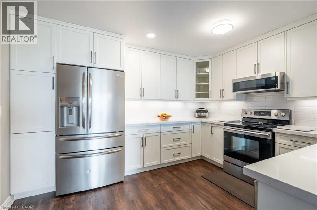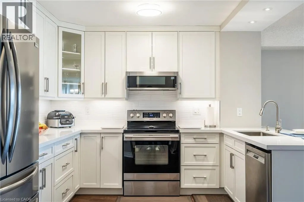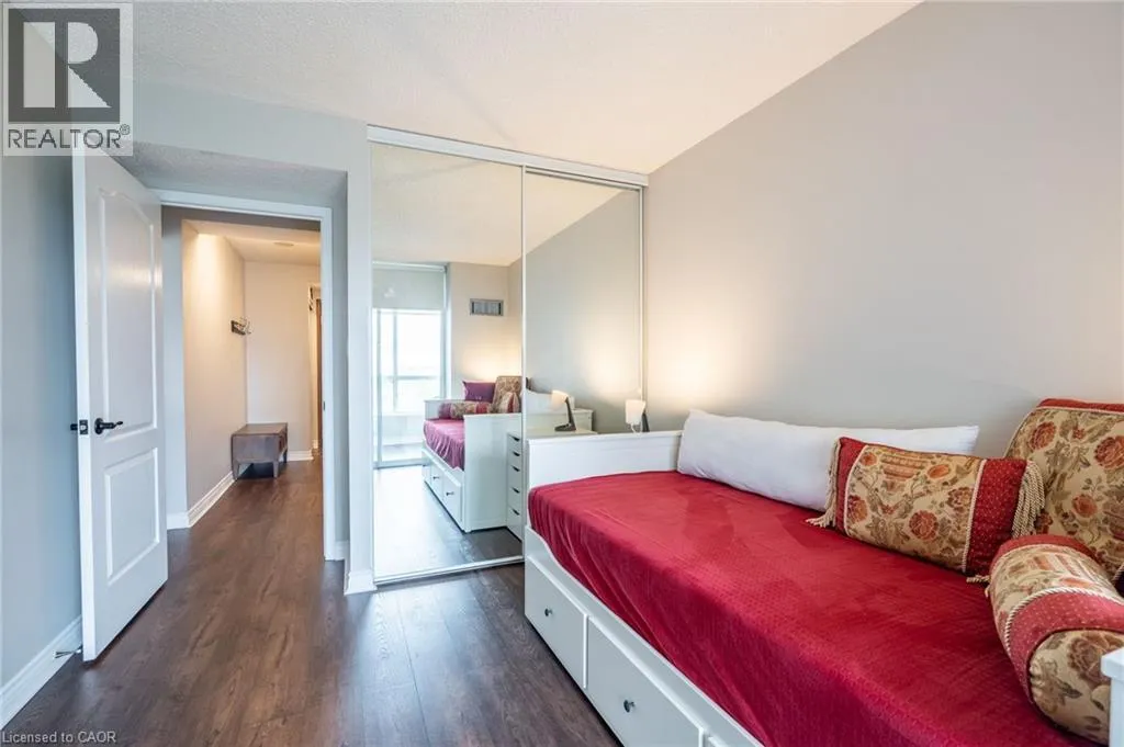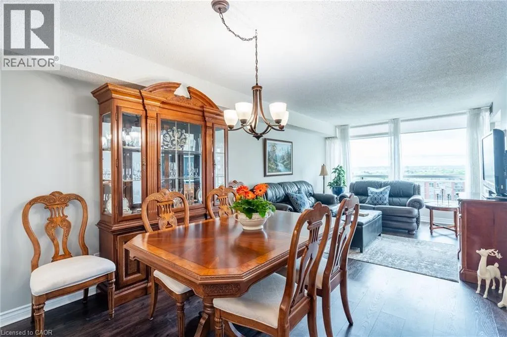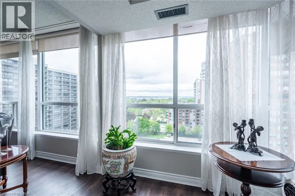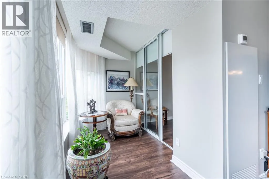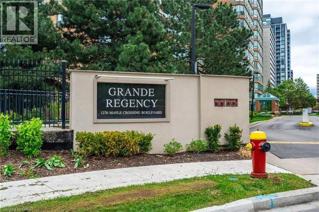 Maple Ave to Maple Crossing Blvd, at the corner on its own private road, building Grand Regency Welcome to an exceptional opportunity to own a beautifully appointed two-bedroom + den, two-bathroom suite in one of Burlingtonâs most prestigious addresses. Set in Burlingtonâs vibrant south core, residents enjoy unparalleled access to the lakefront, scenic parks, fine dining, boutique shopping and top-tier healthcare at nearby Joseph Brant Hospital â all just minutes from your door. Spanning approximately 1,130 square feet, this thoughtfully designed residence offers refined living with a seamless blend of comfort and sophistication. The spacious primary suite features a private four-piece ensuite, while the expansive open-concept living and dining areas provide an ideal setting for entertaining. The stylish eat-in kitchen is enhanced by granite countertops and a charming dinette â ideal for enjoying your morning coffee with panoramic views. Freshly painted and finished with engineered wood flooring throughout, the suite is bathed in natural light and showcases breathtaking views of the Bay and the Escarpment, creating a truly exceptional, elevated living experience. The Grande Regency is an meticulously maintained, smoke-free and pet-free building known for its discreet luxury and first-class amenities, including: 24-hour concierge and security, outdoor pool and sun deck, tennis and racquetball courts, state-of-the-art fitness Centre, sauna and private library, rooftop terrace with BBQ lounge and stylish party room and well-appointed guest suites. All-inclusive condo fees cover utilities, high-speed internet, cable and one underground parking space â delivering effortless convenience in a building celebrated for its exceptional service and lifestyle. Donât be TOO LATE*! *REG TM. RSA. (id:27476)