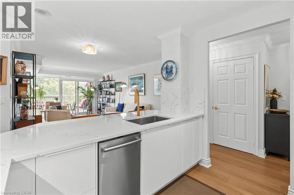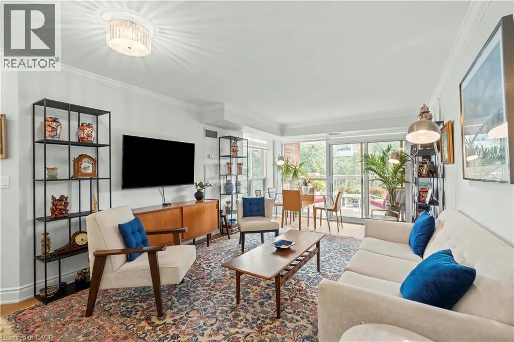 Welcome to refined condo living in the heart of downtown Burlington. This spacious 2-bedroom, 2-bathroom suite offers over 1,000 sq. ft. of beautifully updated living space, ideal for downsizers seeking comfort, convenience, and a lock-and-leave lifestyle. Enjoy a newly renovated kitchen and updated flooring in a bright, open-concept layout perfect for both entertaining and everyday living. Literally steps away from the waterfront, this condo is located directly across from Joseph Brant Hospital and just minutes to downtown Burlingtonâs shops, restaurants, cafes, grocery stores, and the waterfront, with highway access seconds away for effortless commuting. This well-managed building stands out with premium inclusions, including concierge and security on duty daily from 8:00 AM to 10:00 PM, as well as high-speed internet and Bell cable included in the maintenance fees at no extra cost. Residents also enjoy an indoor pool, hot tub, sauna gym, and entertainment/party room, along with one underground parking space and a locker. An exceptional opportunity to downsize without compromise in one of Burlingtonâs most sought-after locations. (id:27476)