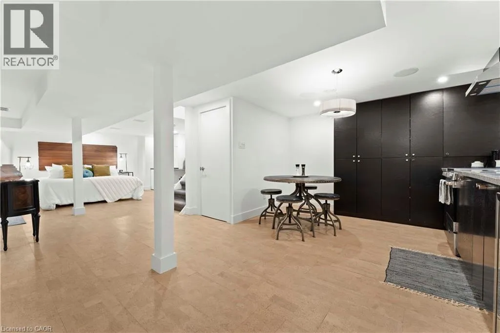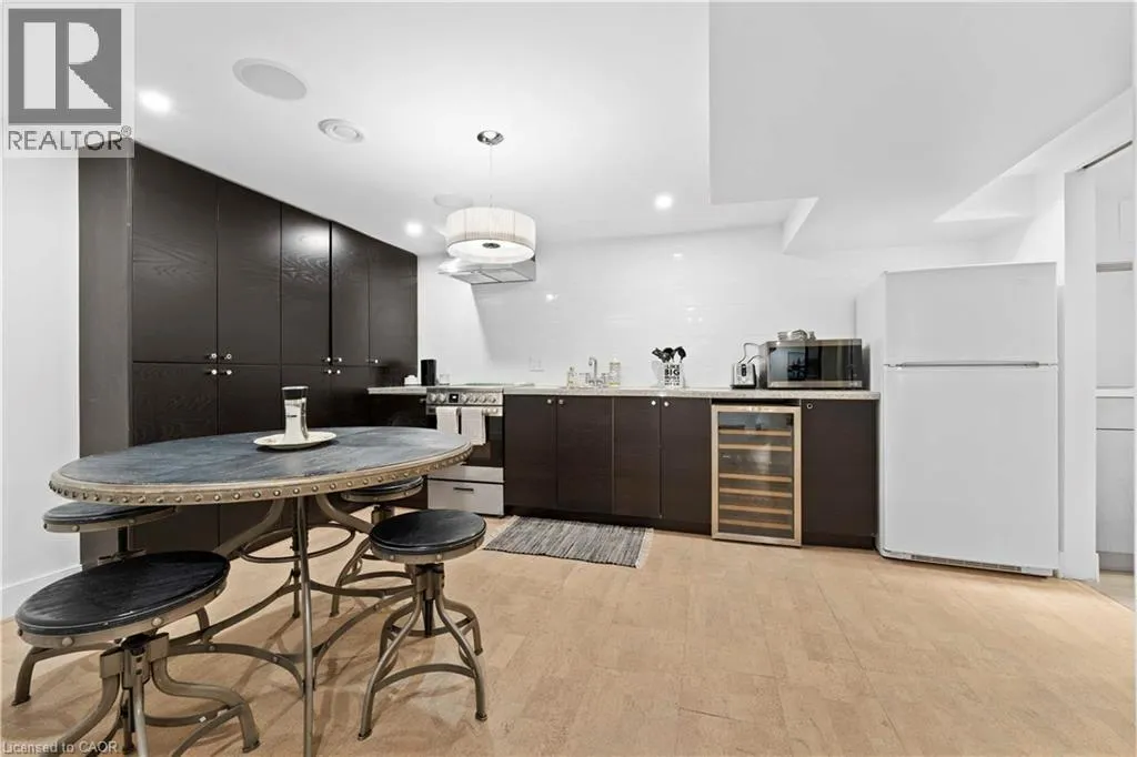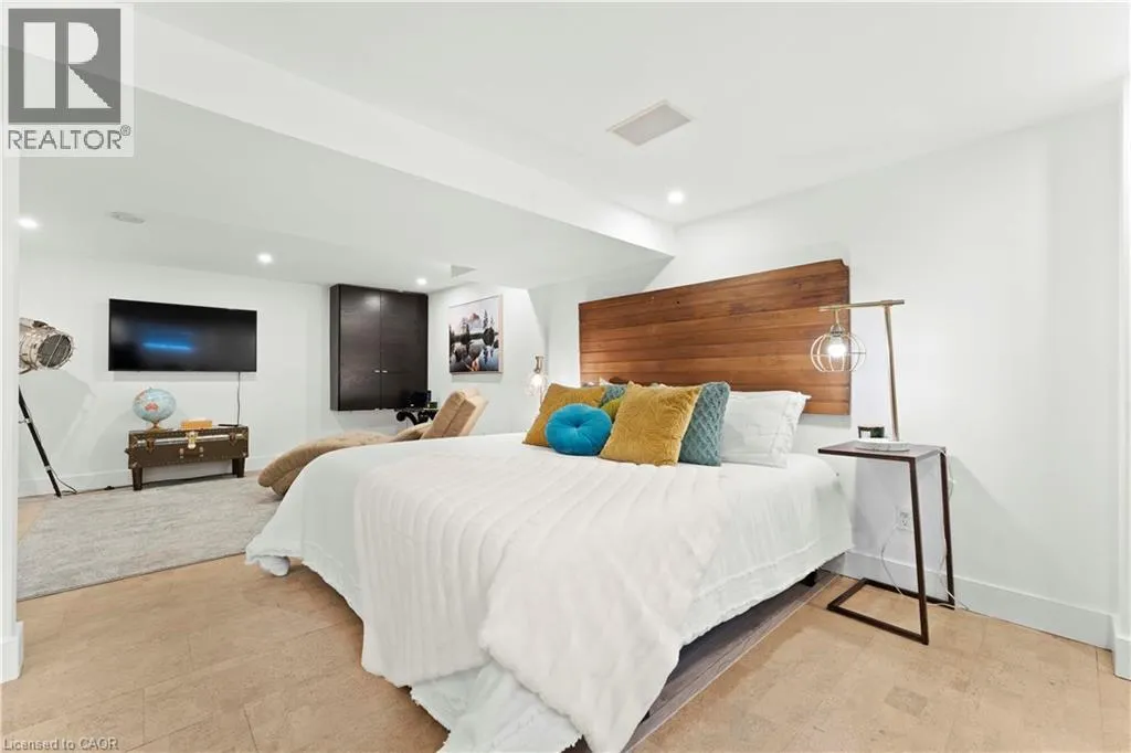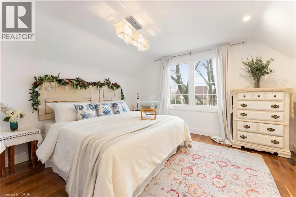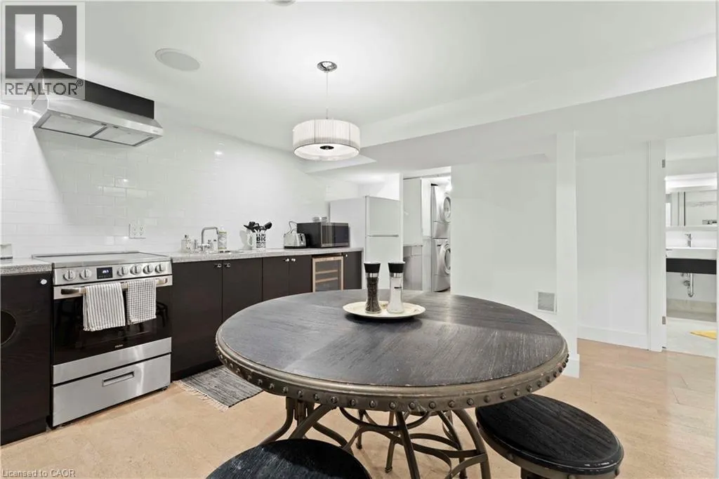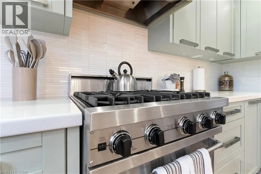 Maple Ave to Lockhart Rd to Regina Dr Walk to downtown and the lake from this beautifully renovated home on a quiet cul-de-sac. Set on an oversized 150-ft deep private lot, the property features mature perennial gardens and an interlock walkway leading to the front entrance. The open-concept main floor offers large windows, a gas fireplace, and a custom kitchen equipped with premium Viking appliances, including a gas range, dual-door refrigerator, panelled dishwasher, and built-in microwave. Patio doors off the dining area open to a private backyard with a custom wood deck and generous lawn surrounded by mature trees. Upstairs are two spacious bedrooms and a fully renovated 4-piece bathroom. The finished basement includes a separate entrance, kitchen space, open layout, and laundry, offering excellent flexibility. Ideally located within walking distance to Spencer Smith Park and Brant Street's shops and restaurants, with quick access to the QEW, Mapleview Mall, and daily amenities. (id:27476)