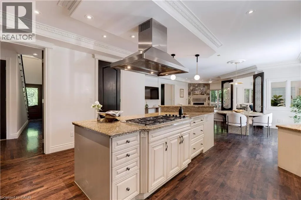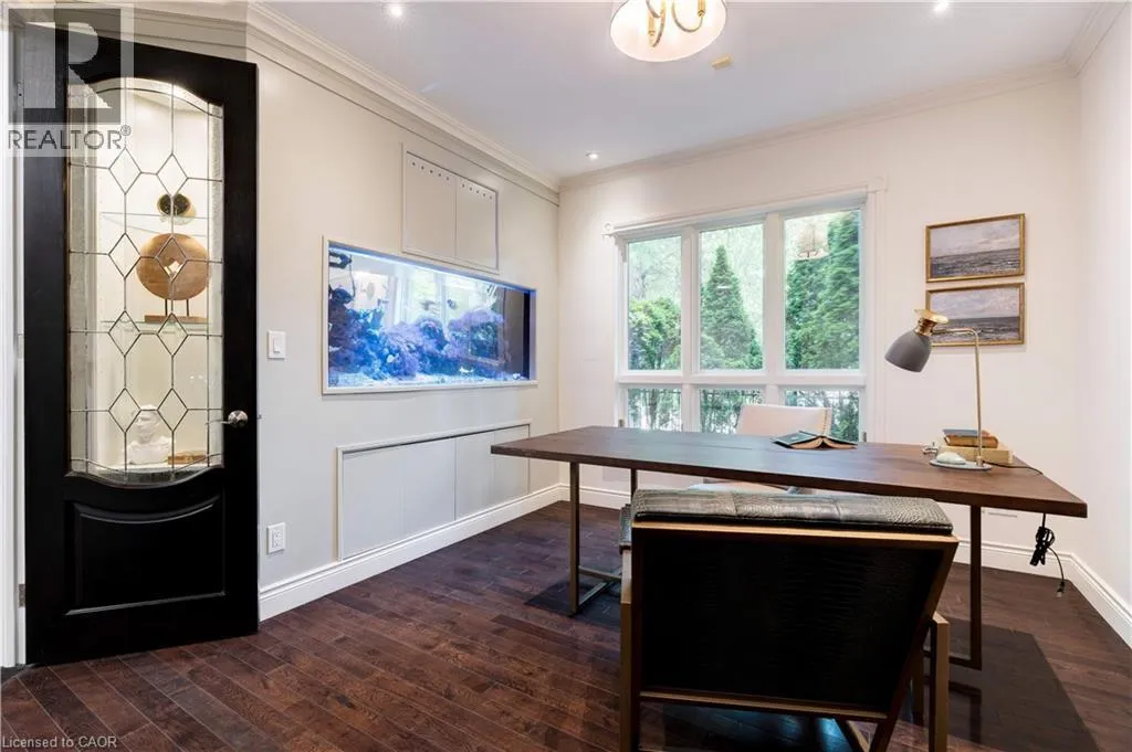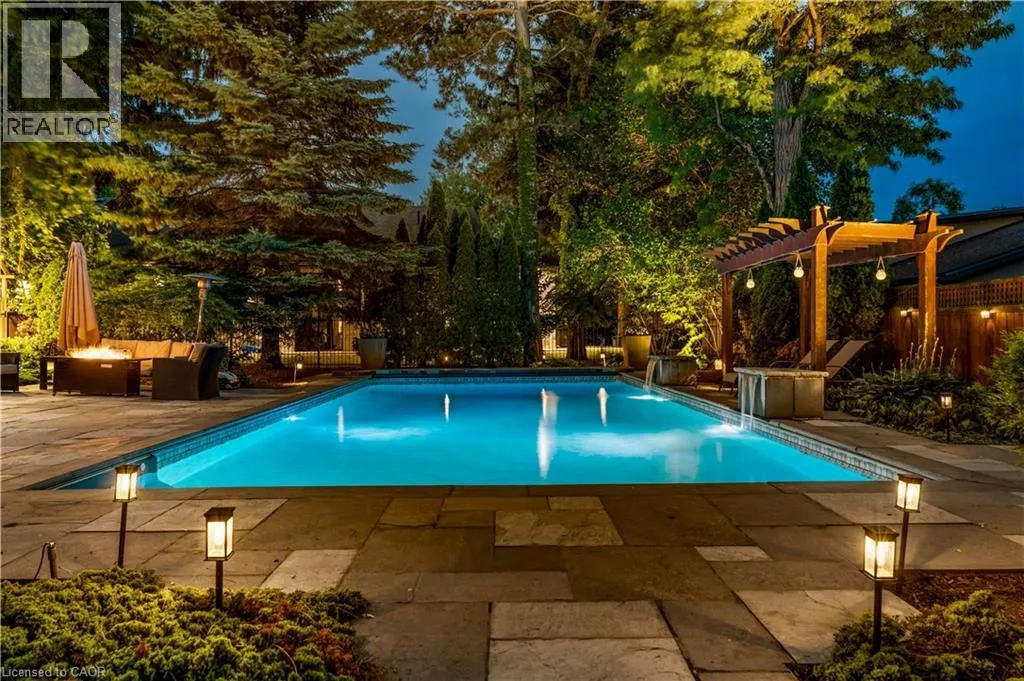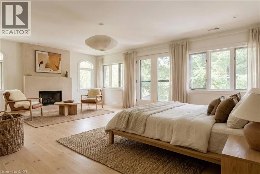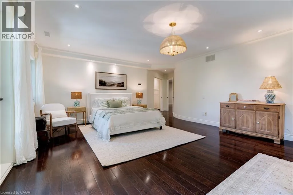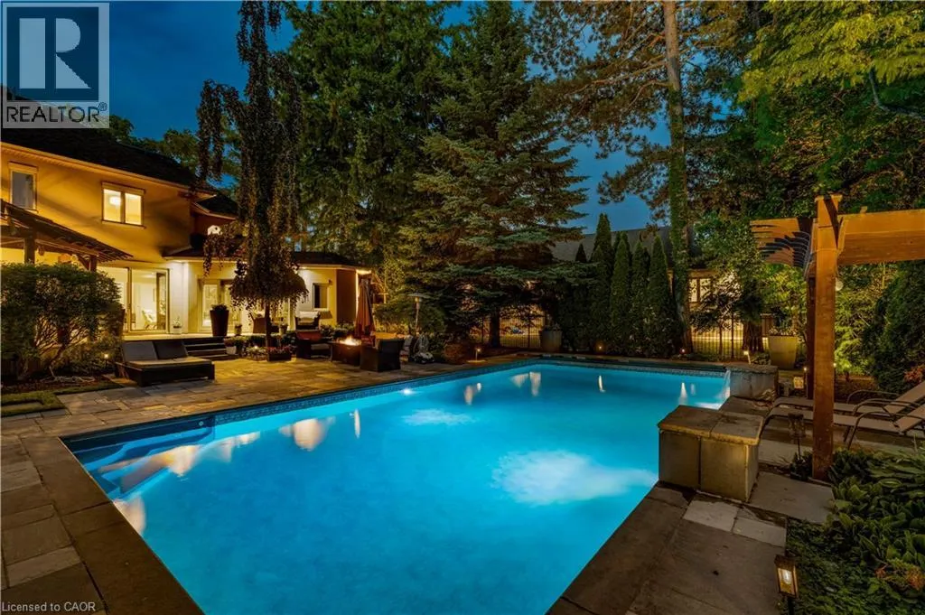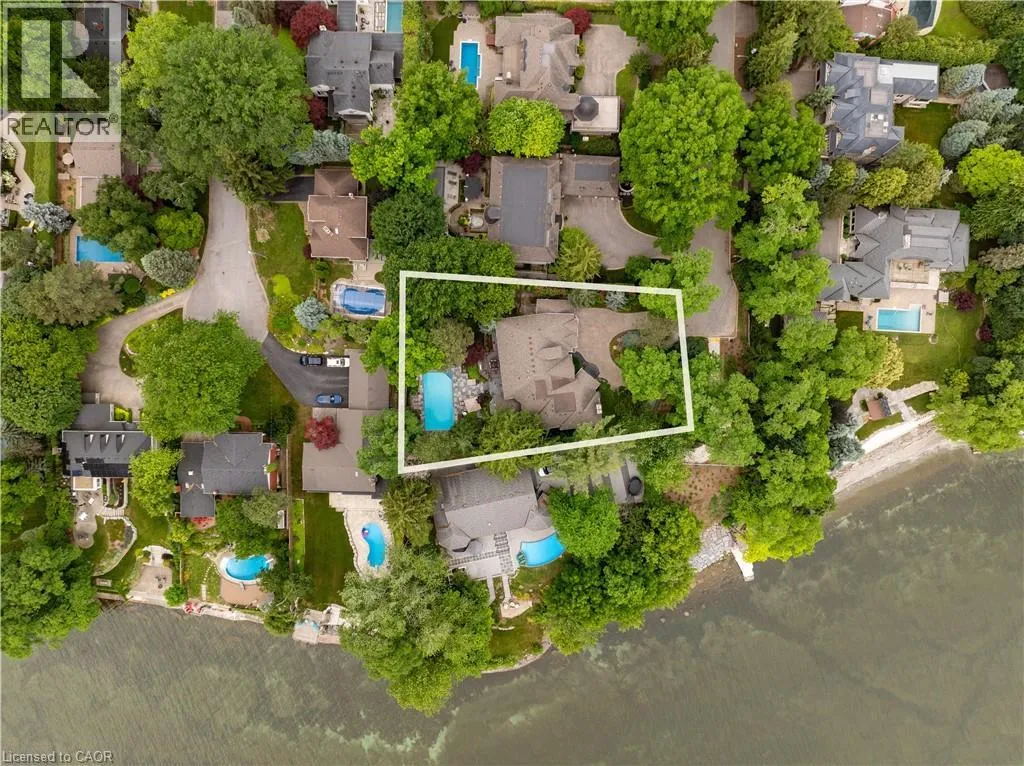 Lakeshore south on Appleby Place Attractive VTB available for up to 2 years for qualified buyers. Welcome to this exceptional luxury estate in Shoreacres, steps from the lake - offering over 9,000 sqft of beautifully designed living space. Custom built with impressive curb appeal and meticulous attention to detail. Stunning home features 6 spacious bedrooms, each with its own ensuite, 7 full bathrooms, plus a main floor powder room. Rich hardwood flooring throughout the entire home, including the full upper level in-law suite with private entrance, laundry, and living area. The main floor offers a formal living room, dining room, and a warm family room. A sun-soaked kitchen opens into a bright sunroom and walkout to the backyard- ideal for morning coffee or hosting poolside gatherings. The chefâs kitchen includes a large eat-at island, gas cooktop, double wall ovens, oversized fridge, and a built-in bar area with sink. The south-facing primary suite has lake views, gas fireplace, a spa-like ensuite, and grand walk-in closet. The nearly 3,200 sqft finished basement includes a bedroom with ensuite, bar, wine cellar, theatre room, gym, and ample space for entertaining. The professionally landscaped backyard is a private resort, with a saltwater pool, waterfall, cabana, built-in BBQ, and multiple lounge areas. Elegant, timeless, and serene - this is a rare opportunity to live steps from the lake in one of Burlingtonâs most coveted neighbourhoods. (id:27476)