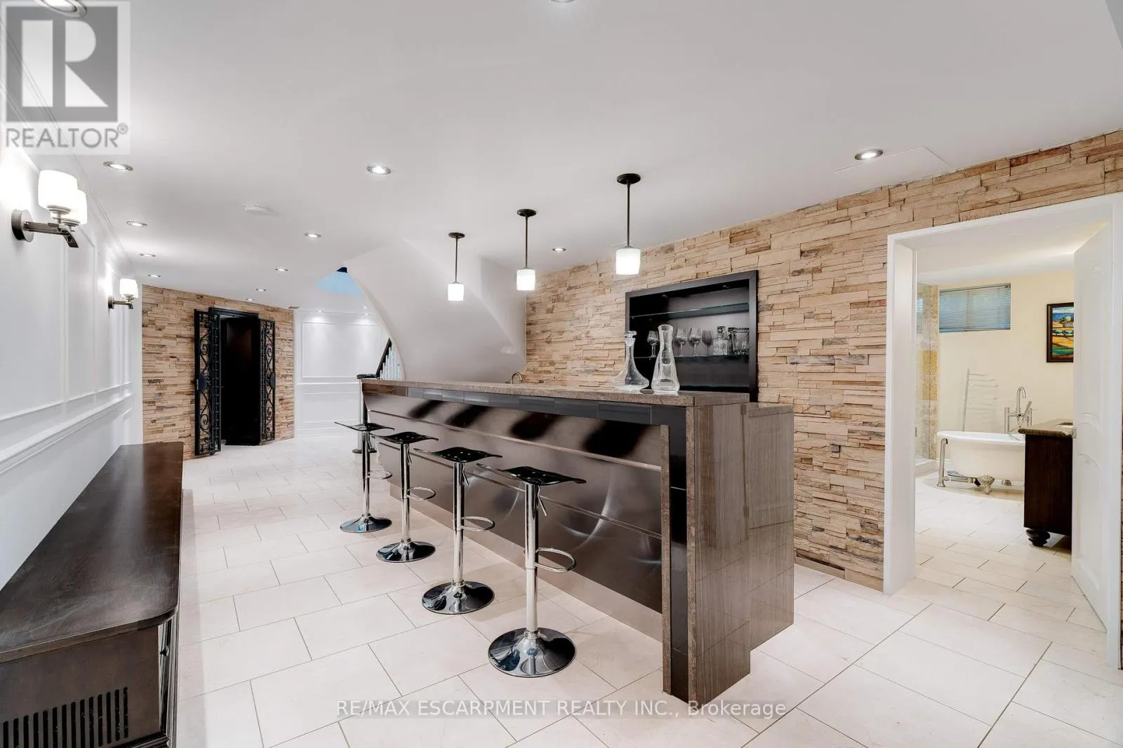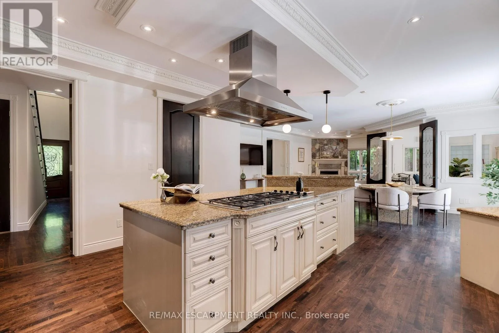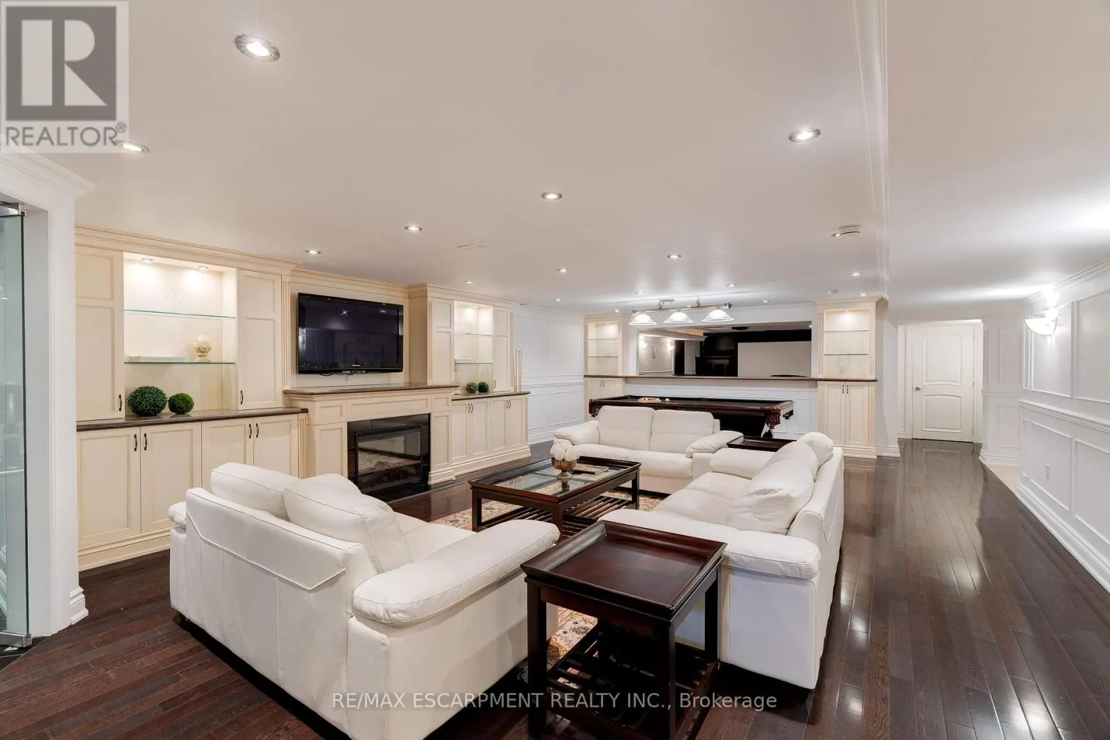 Cross Streets: Appleby/Lakeshore. ** Directions: Appleby & Lakeshore. Attractive VTB available for up to 2 years for qualified buyers. Welcome to this exceptional luxury estate in Shoreacres, steps from the lake - offering over 9,000 sqft of beautifully designed living space. Custom built with impressive curb appeal and meticulous attention to detail. this stunning home features 6 spacious bedrooms, each with its own ensuite, 7 full bathrooms, plus a main floor powder room. Rich hardwood flooring runs throughout the entire home, including the full in-law suite with a private entrance, laundry, and living area. The main floor offers a formal living room, dining room, and a warm family room with two gas fireplaces. A sun-soaked kitchen opens into a bright sunroom and walkout to the backyard- ideal for morning coffee or hosting poolside gatherings. The chef's kitchen includes a large eat-at island, gas cooktop, double wall ovens, oversized fridge, and a built-in bar area with sink. The south-facing primary suite has lake views, gas fireplace, a spa-like ensuite, and grand walk-in closet. The nearly 3,200 sqft finished basement includes a bedroom with ensuite, bar, wine cellar, theatre room, gym, and ample space for entertaining. The professionally landscaped backyard is a private resort, with a saltwater pool, waterfall, cabana, built-in BBQ, and multiple lounge areas. Elegant, timeless, and serene-this is a rare opportunity to live steps from the lake in one of Burlington's most coveted neighbourhoods. Luxury Certified. (id:27476)
