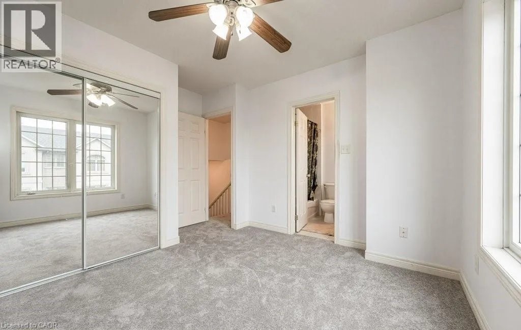 Available April 1, 2026, this well-kept multi-level townhome in Burlington features a practical and inviting layout. The ground floor offers a private entrance, den with walkout to a patio, and a powder room. The main living area includes a kitchen and dining space with sliding doors to a deck, alongside a comfortable living room. Upstairs, you'll find three bedrooms, including a primary bedroom with a four-piece ensuite, plus a three-piece main bathroom. A single garage and driveway provide parking for two vehicles. Centrally located near schools, everyday amenities, and with easy access to the 407 and QEW. (id:27476)