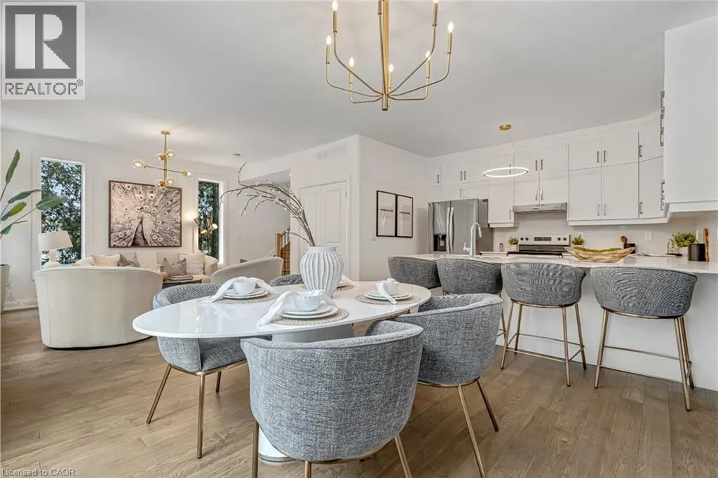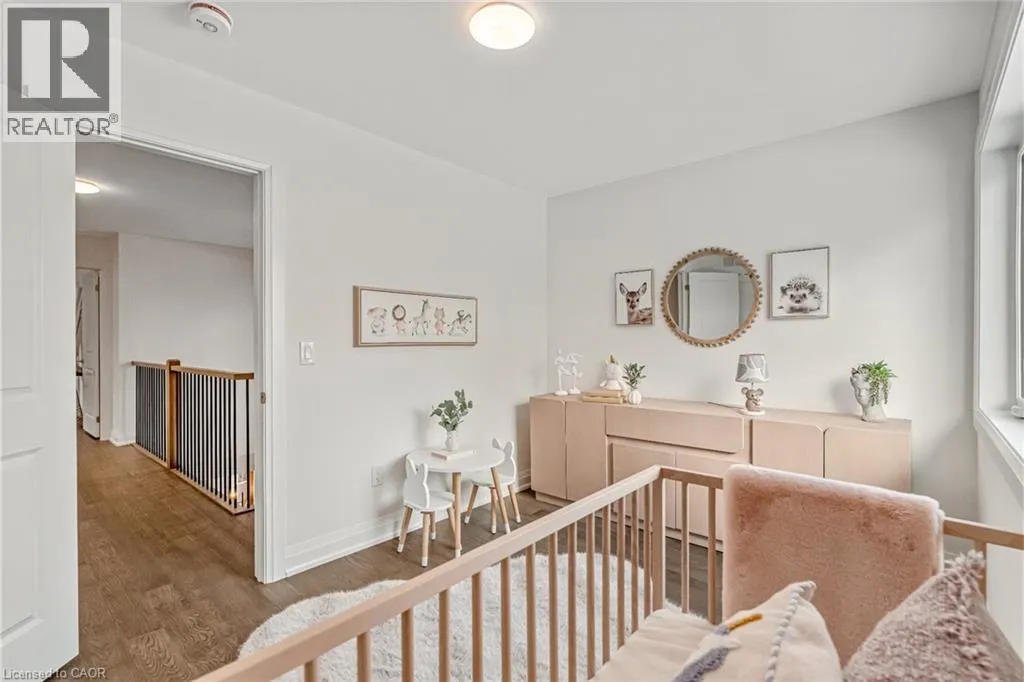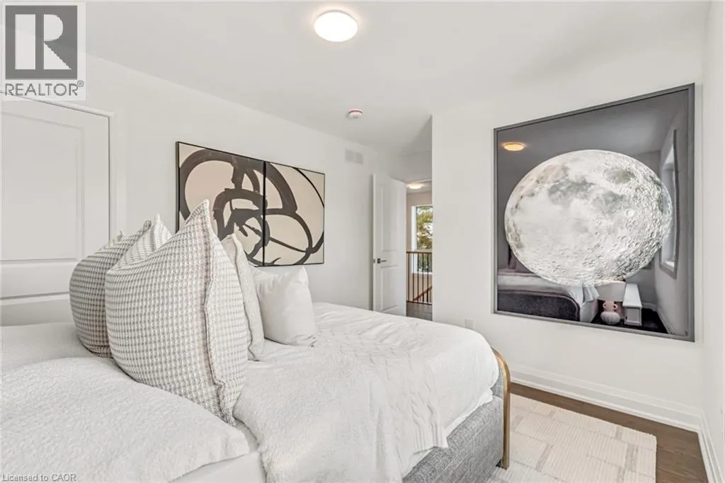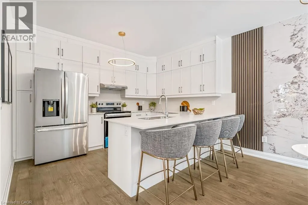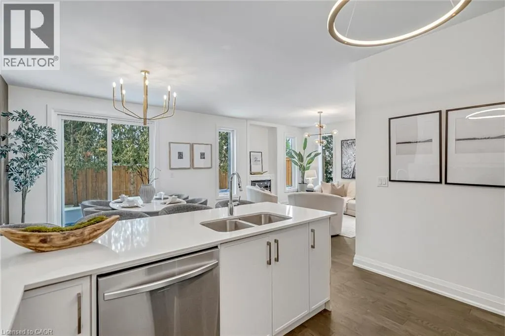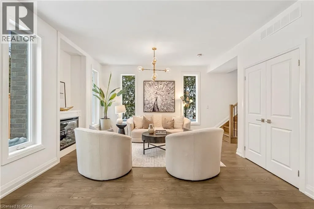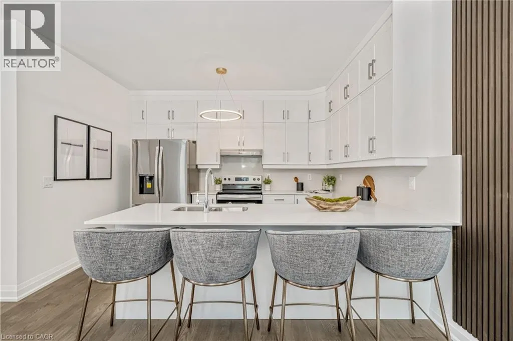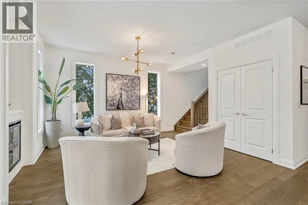 NORTH ON WALKERS LINE PAST UPPER MIDDLE ON THE WEST SIDE Brand-new executive town home never lived in! This stunning 1,799 sq. ft. home is situated in an exclusive enclave of just nine units, offering privacy and modern luxury. Its sleek West Coast-inspired exterior features a stylish blend of stone, brick, and aluminum faux wood. Enjoy the convenience of a double-car garage plus space for two additional vehicles in the driveway. Inside, 9-foot ceilings and engineered hardwood floors enhance the open-concept main floor, bathed in natural light from large windows and sliding glass doors leading to a private, fenced backyard perfect for entertaining. The designer kitchen is a chefs dream, boasting white shaker-style cabinets with extended uppers, quartz countertops, a stylish backsplash, stainless steel appliances, a large breakfast bar, and a separate pantry. Ideally located just minutes from the QEW, 407, and Burlington GO Station, with shopping, schools, parks, and golf courses nearby. A short drive to Lake Ontario adds to its appeal. Perfect for down sizers, busy executives, or families, this home offers low-maintenance living with a $349.83/month condo fee covering common area upkeep only, including grass cutting and street snow removal. Don't miss this rare opportunity schedule your viewing today! Tarion Warranty! (id:27476)