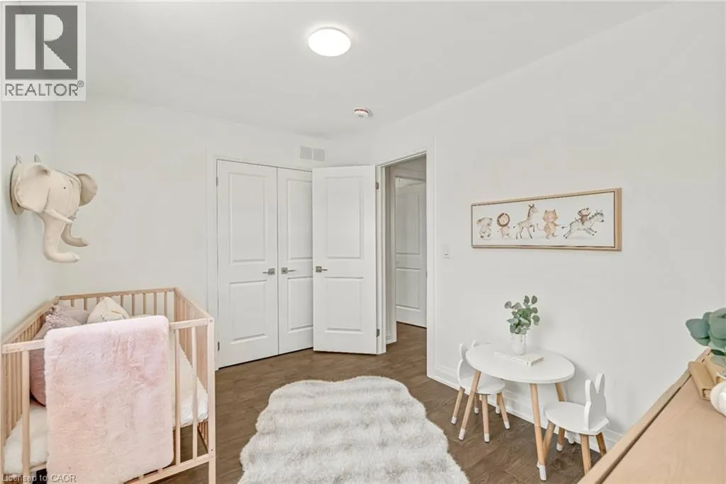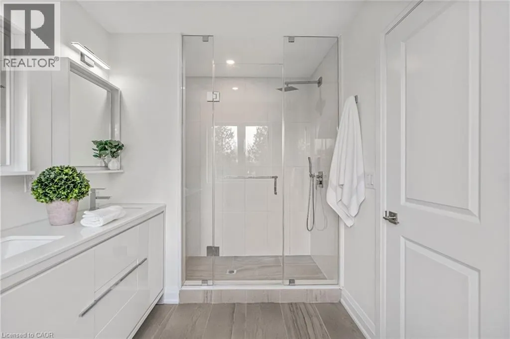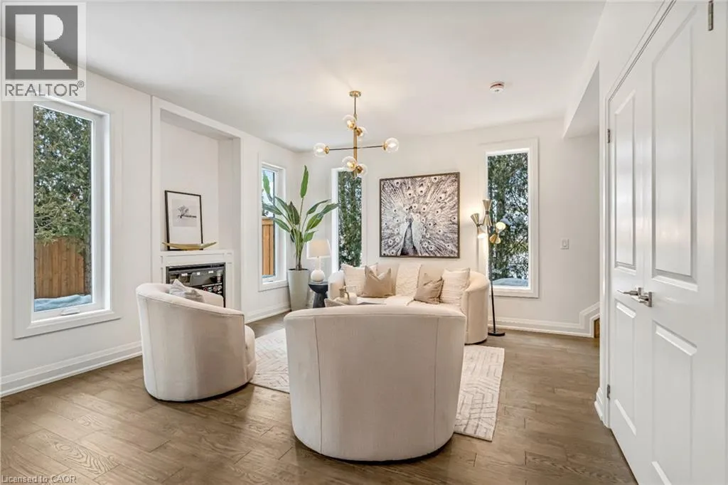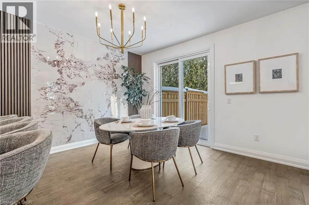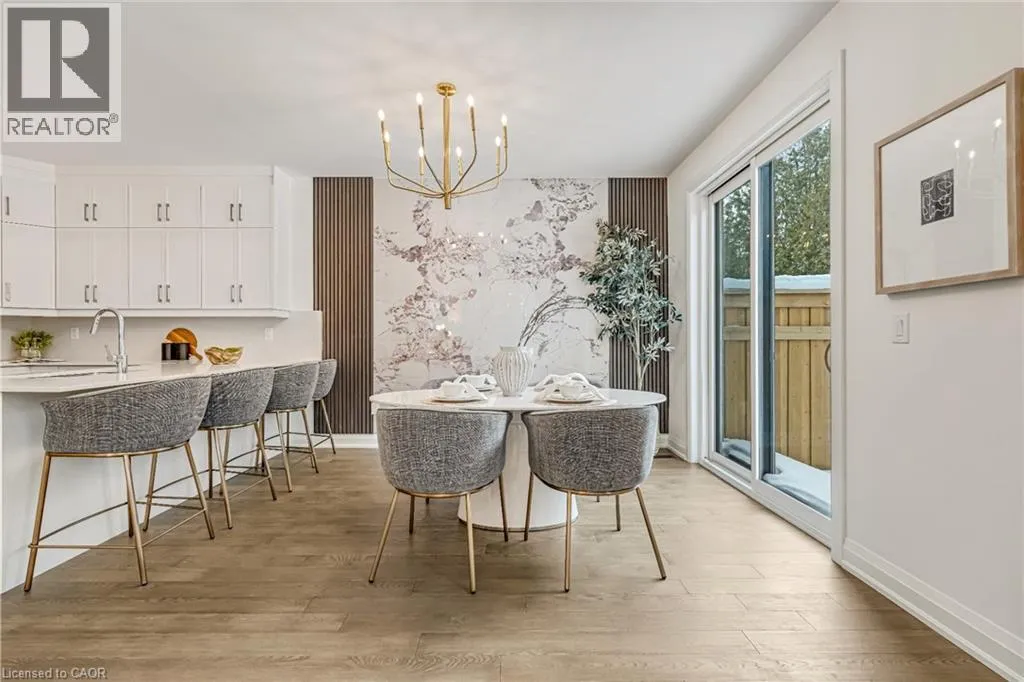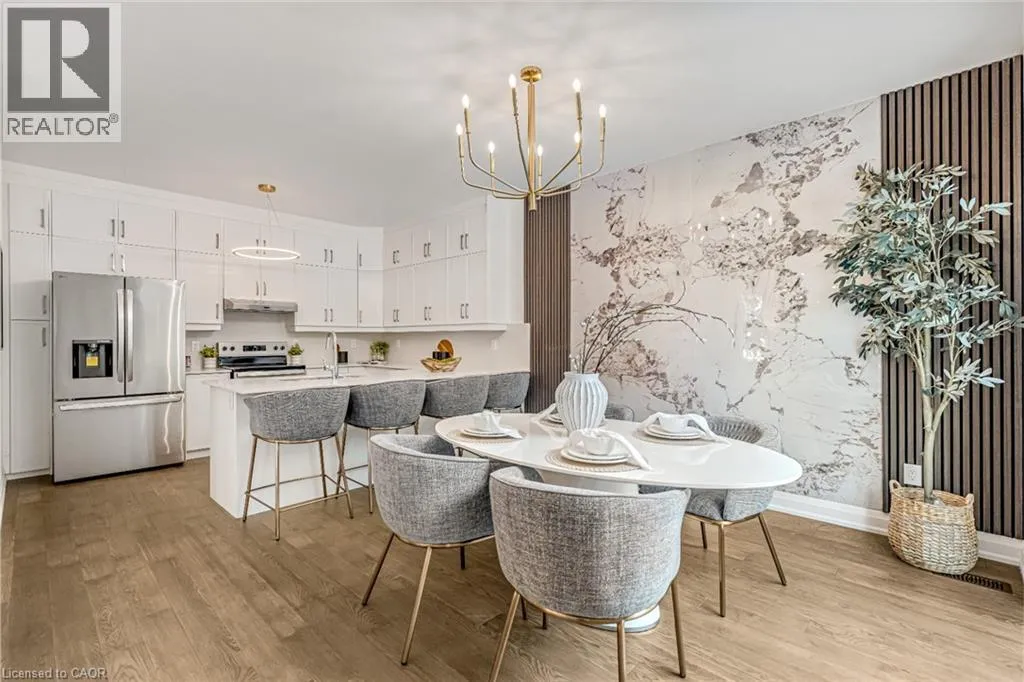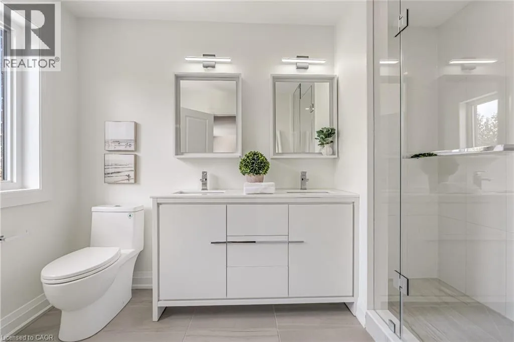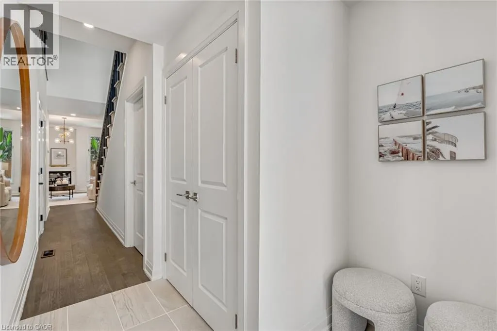 NORTH ON WALKERS LINE PAST UPPER MIDDLE ON THE WEST SIDE Brand-new executive town home never lived in! This stunning 1,799 sq. ft. home is situated in an exclusive enclave of just nine units, offering privacy and modern luxury. Its sleek West Coast-inspired exterior features a stylish blend of stone, brick, and aluminum faux wood. Enjoy the convenience of a double-car garage plus space for two additional vehicles in the driveway. Inside, 9-foot ceilings and engineered hardwood floors enhance the open-concept main floor, bathed in natural light from large windows and sliding glass doors leading to a private, fenced backyard perfect for entertaining. The designer kitchen is a chefs dream, boasting white shaker-style cabinets with extended uppers, quartz countertops, a stylish backsplash, stainless steel appliances, a large breakfast bar, and a separate pantry. Ideally located just minutes from the QEW, 407, and Burlington GO Station, with shopping, schools, parks, and golf courses nearby. A short drive to Lake Ontario adds to its appeal. Perfect for down sizers, busy executives, or families, this home offers low-maintenance living with a $349.83/month condo fee covering common area upkeep only, including grass cutting and street snow removal. Don't miss this rare opportunity schedule your viewing today! Tarion Warranty! (id:27476)